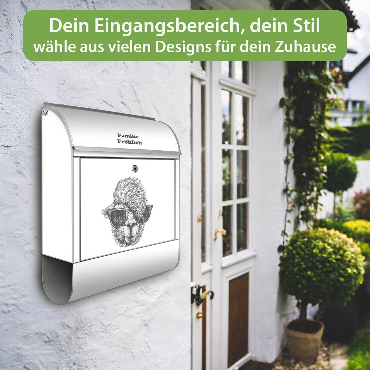 Großer Stahl Briefkasten Motiv Lama 2