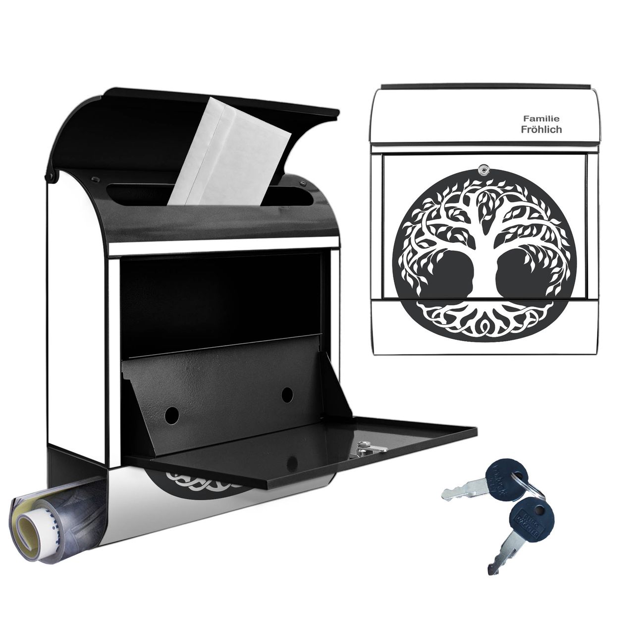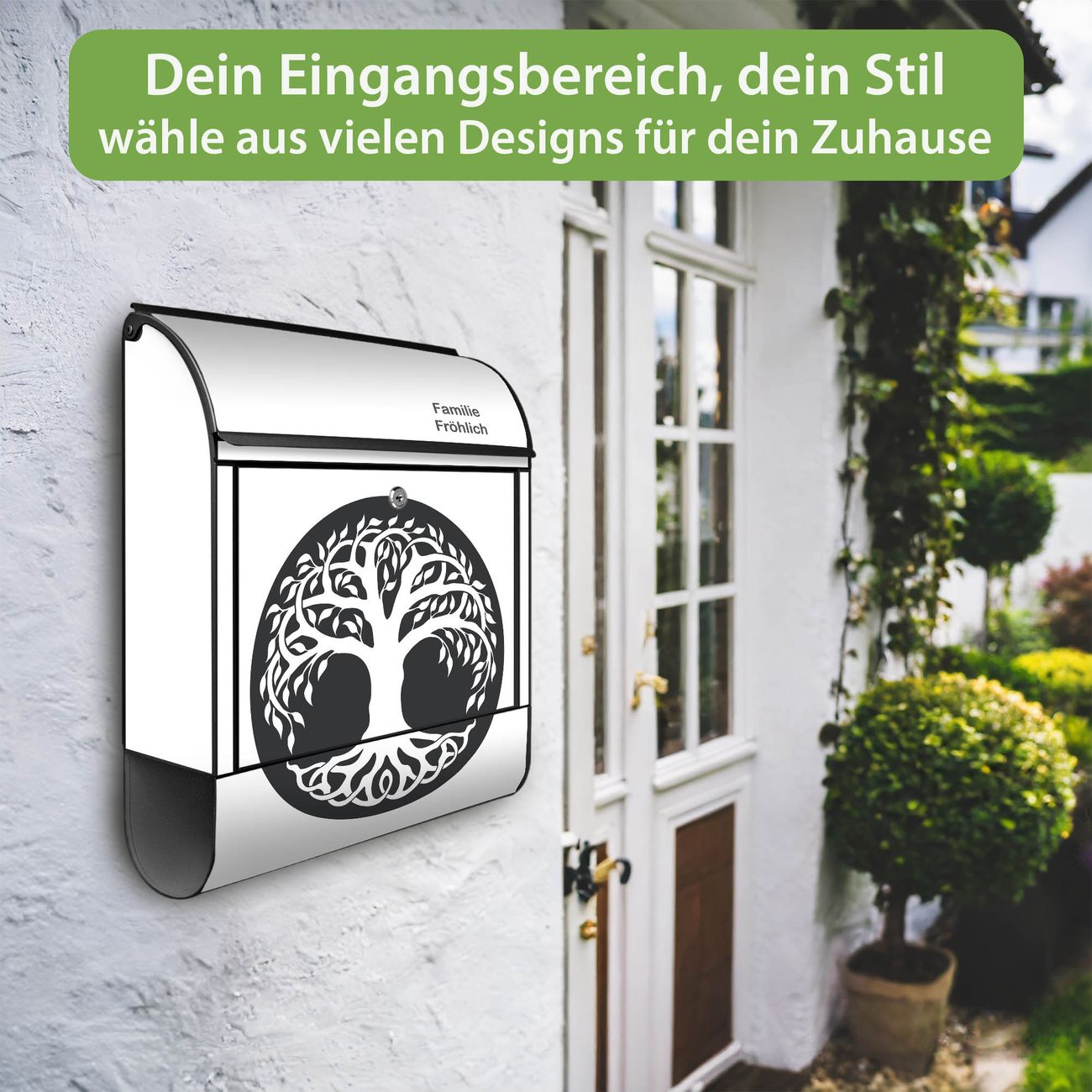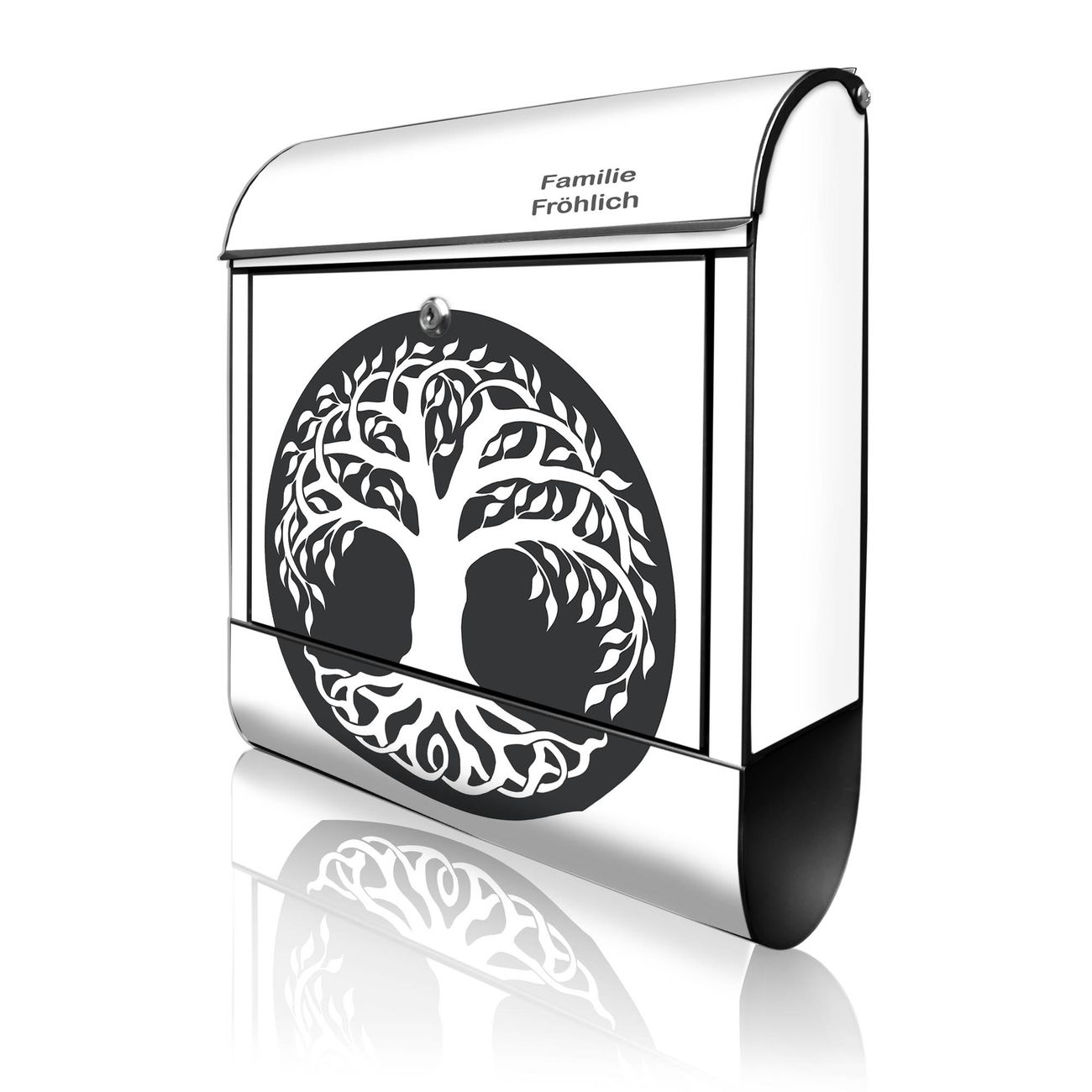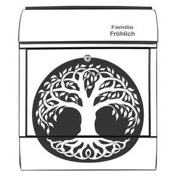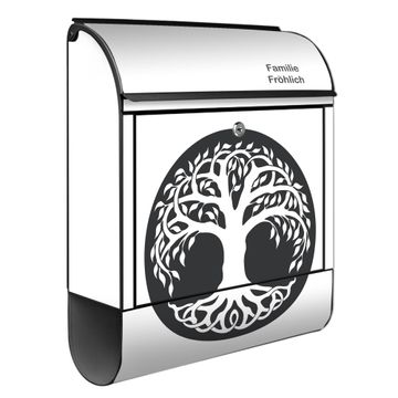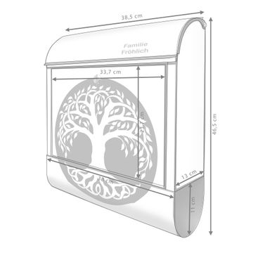 Großer Stahl Briefkasten Motiv Lebensbaum Silhouette