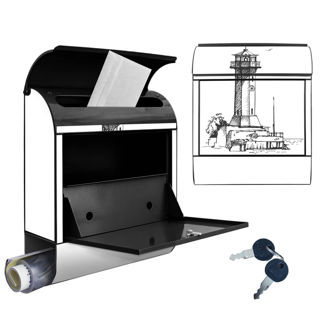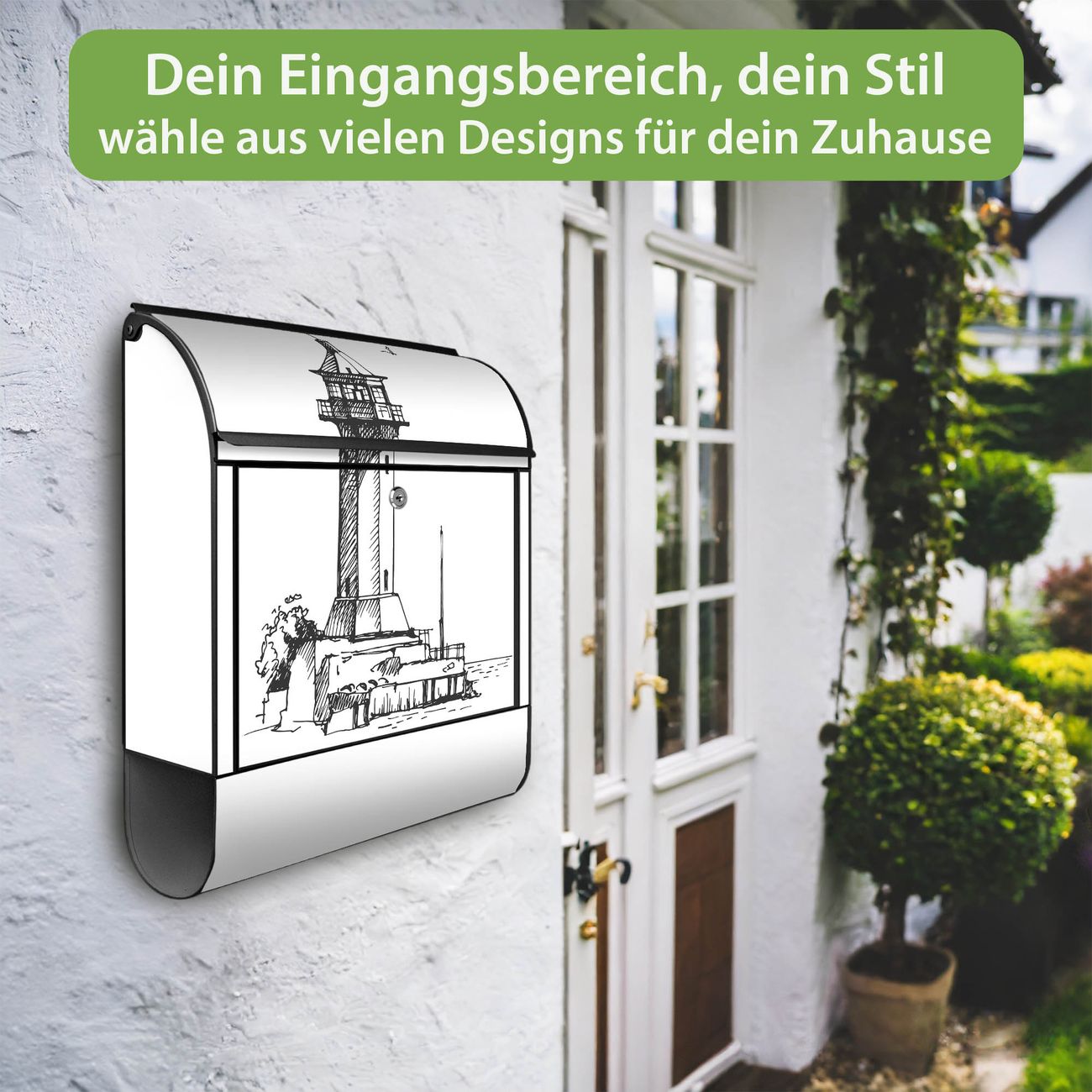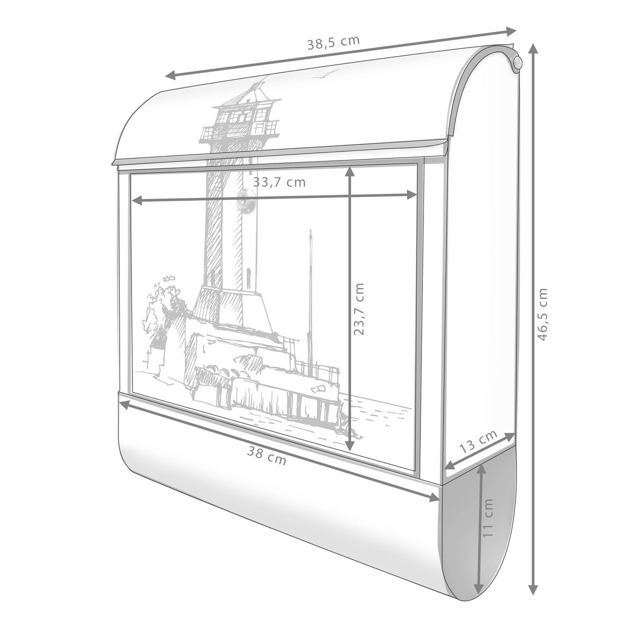 Großer Stahl Briefkasten Motiv Leuchtturm 10