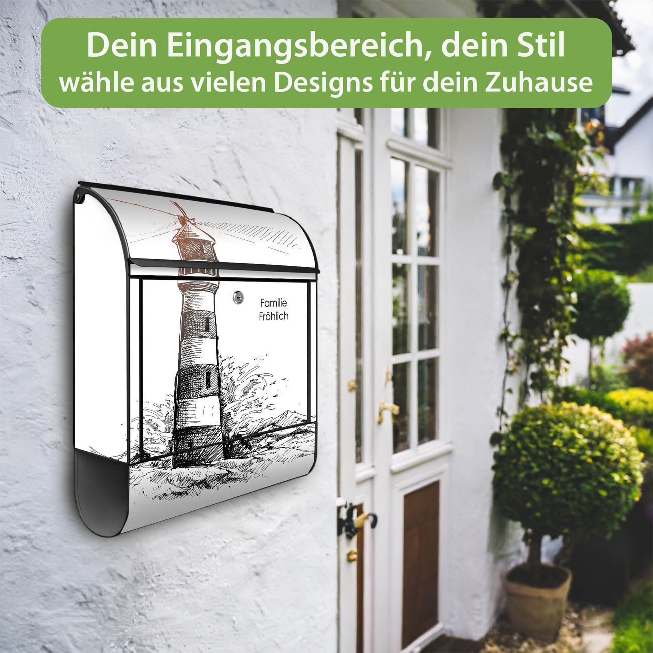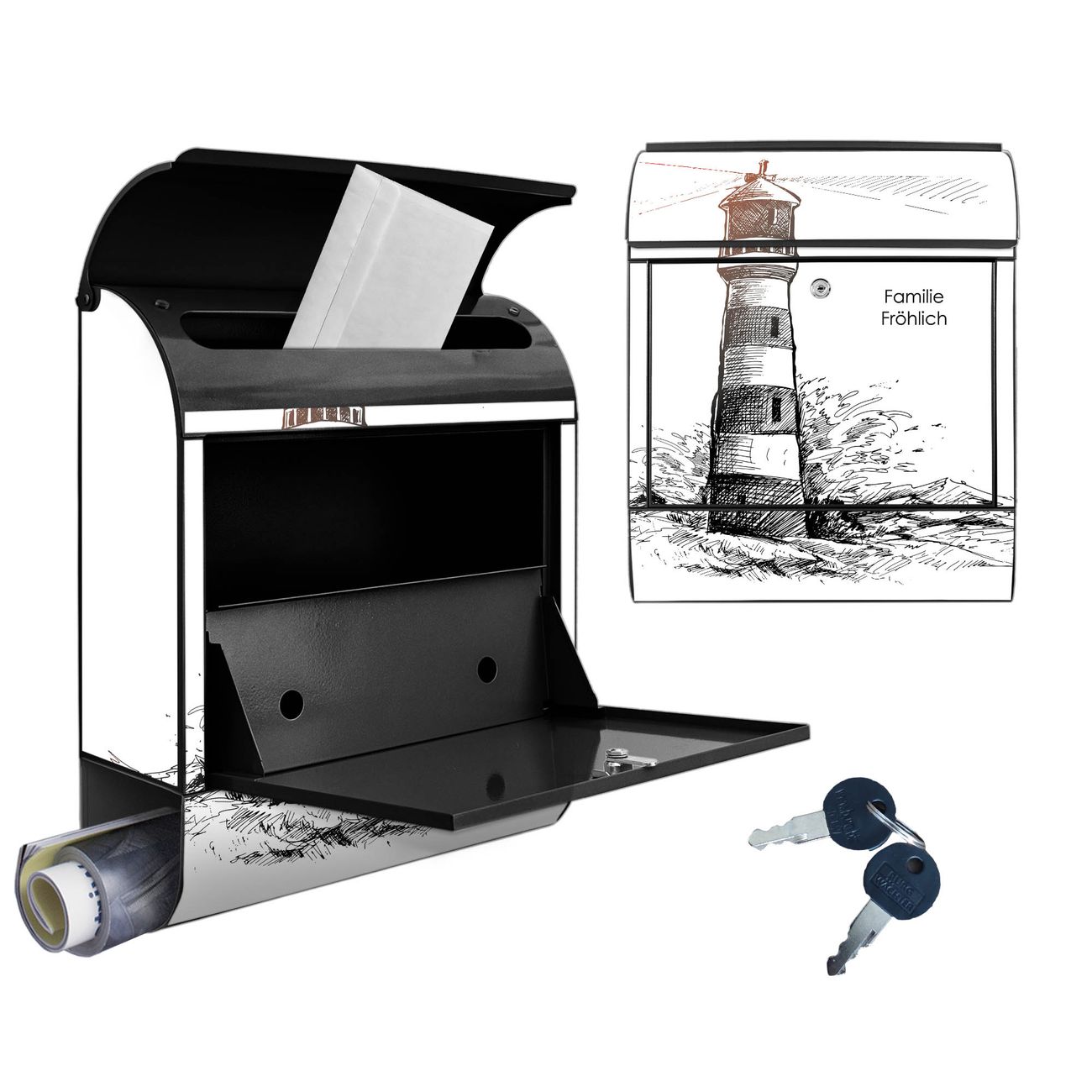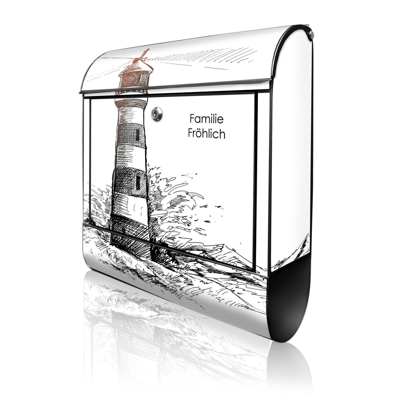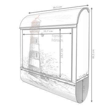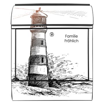 Großer Stahl Briefkasten Motiv Leuchtturm in der Brandung