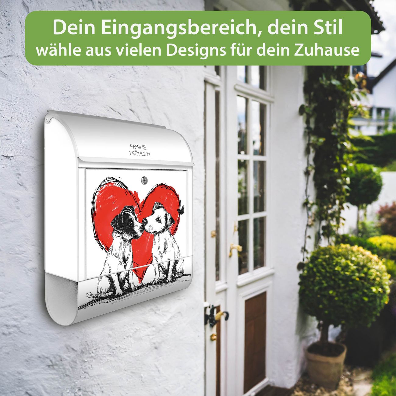 Großer Stahl Briefkasten Motiv Liebende Hunde