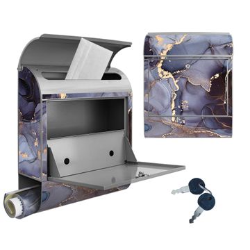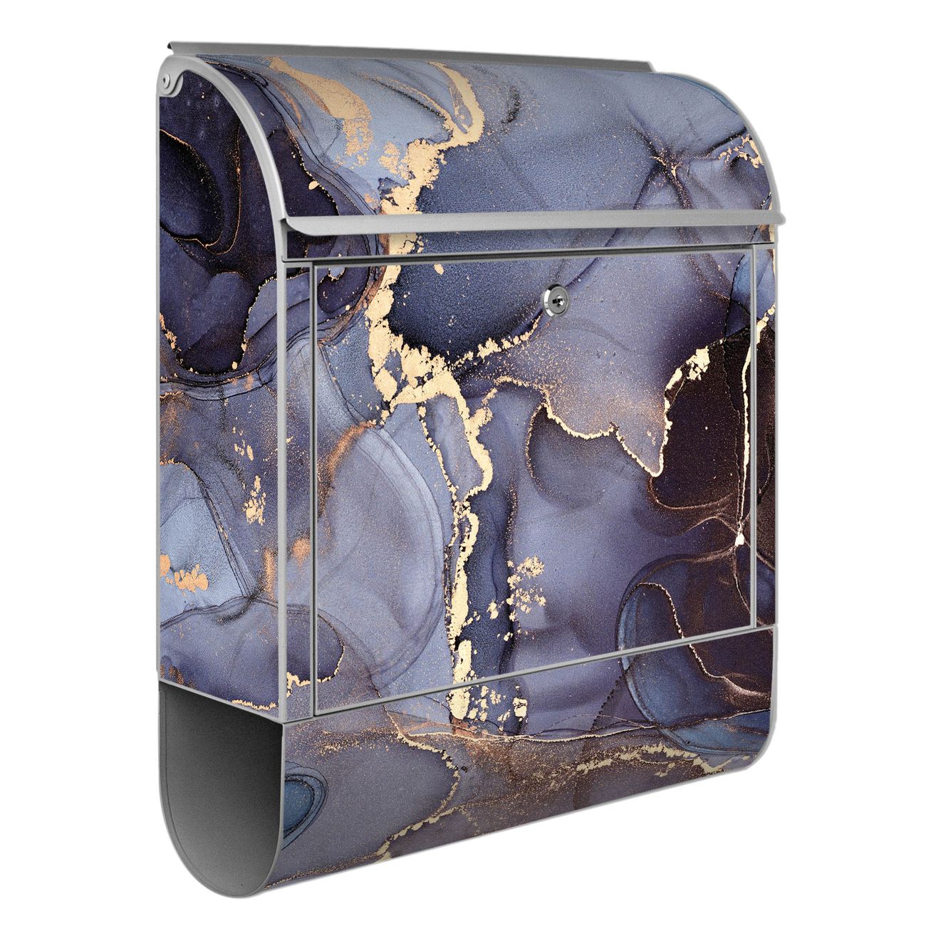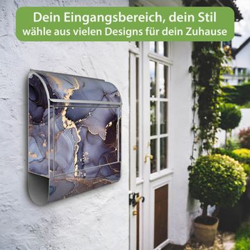 Großer Stahl Briefkasten Motiv Lila Marmor mit Gold 1