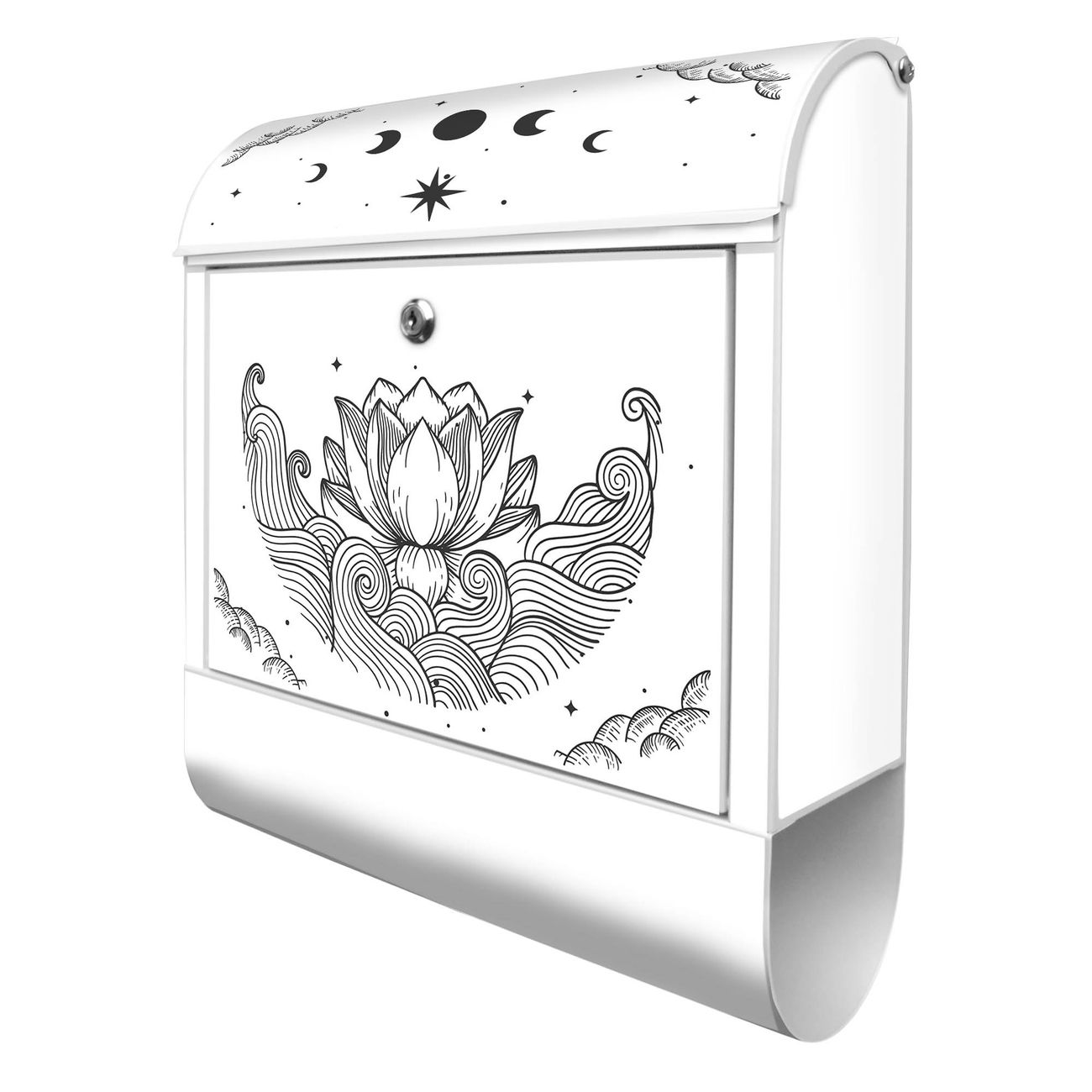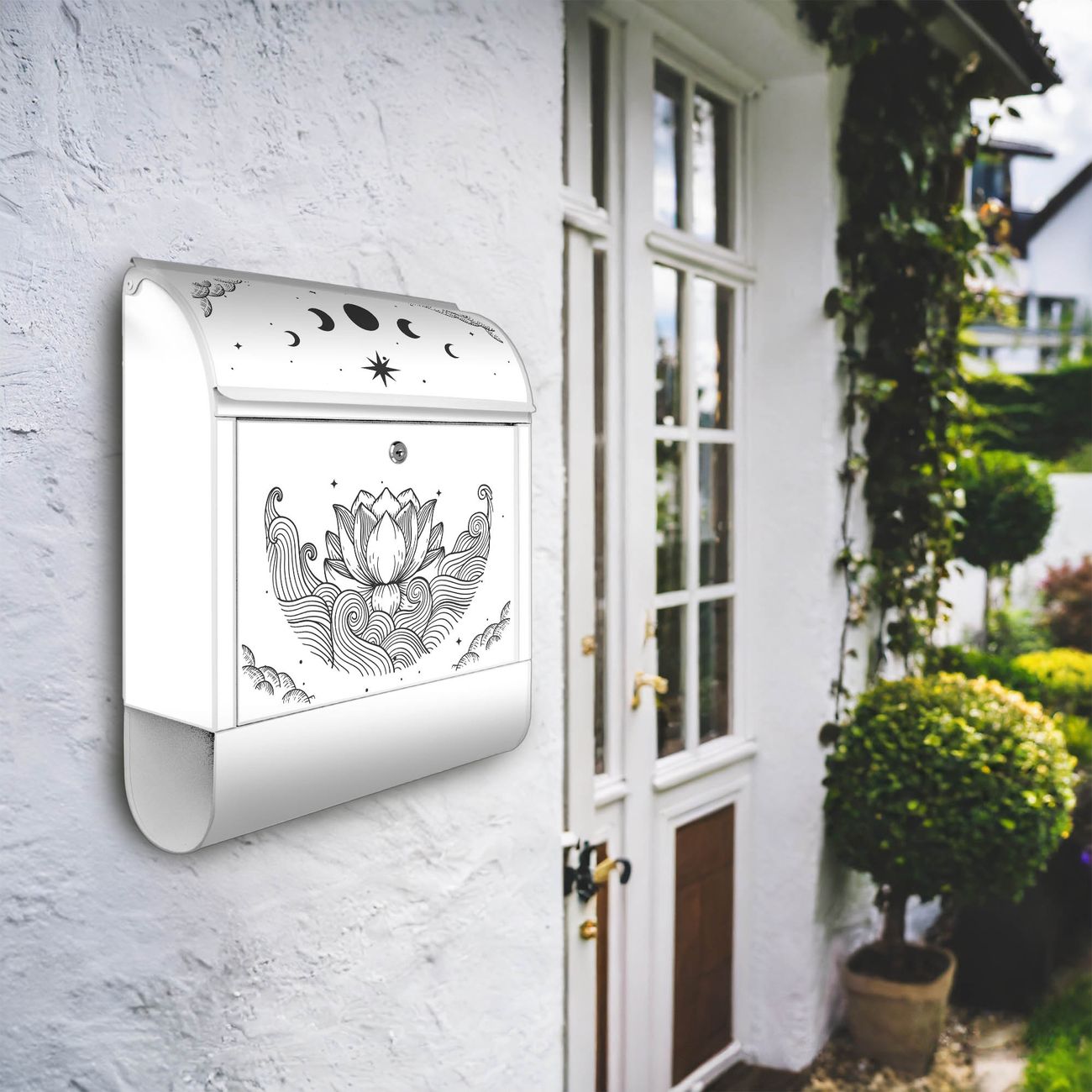 Großer Stahl Briefkasten Motiv Lotus und Mondphasen 2