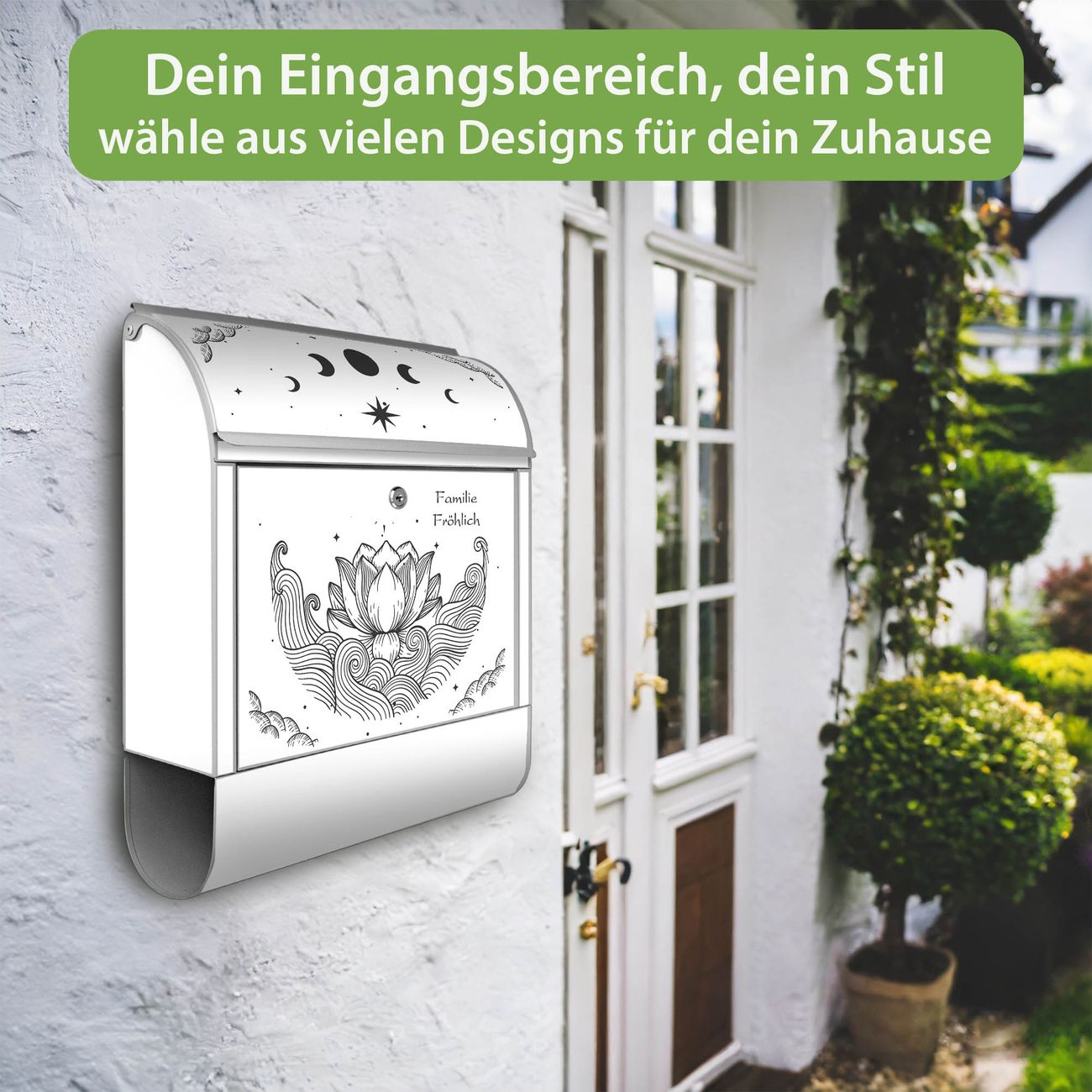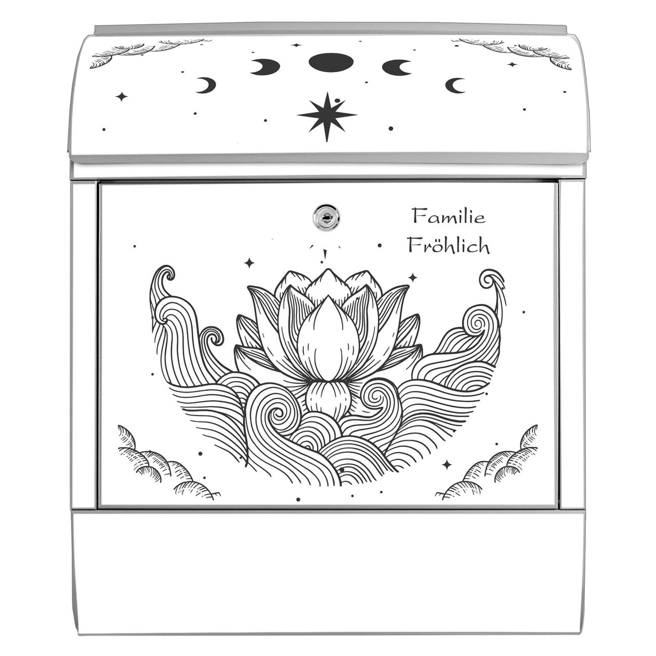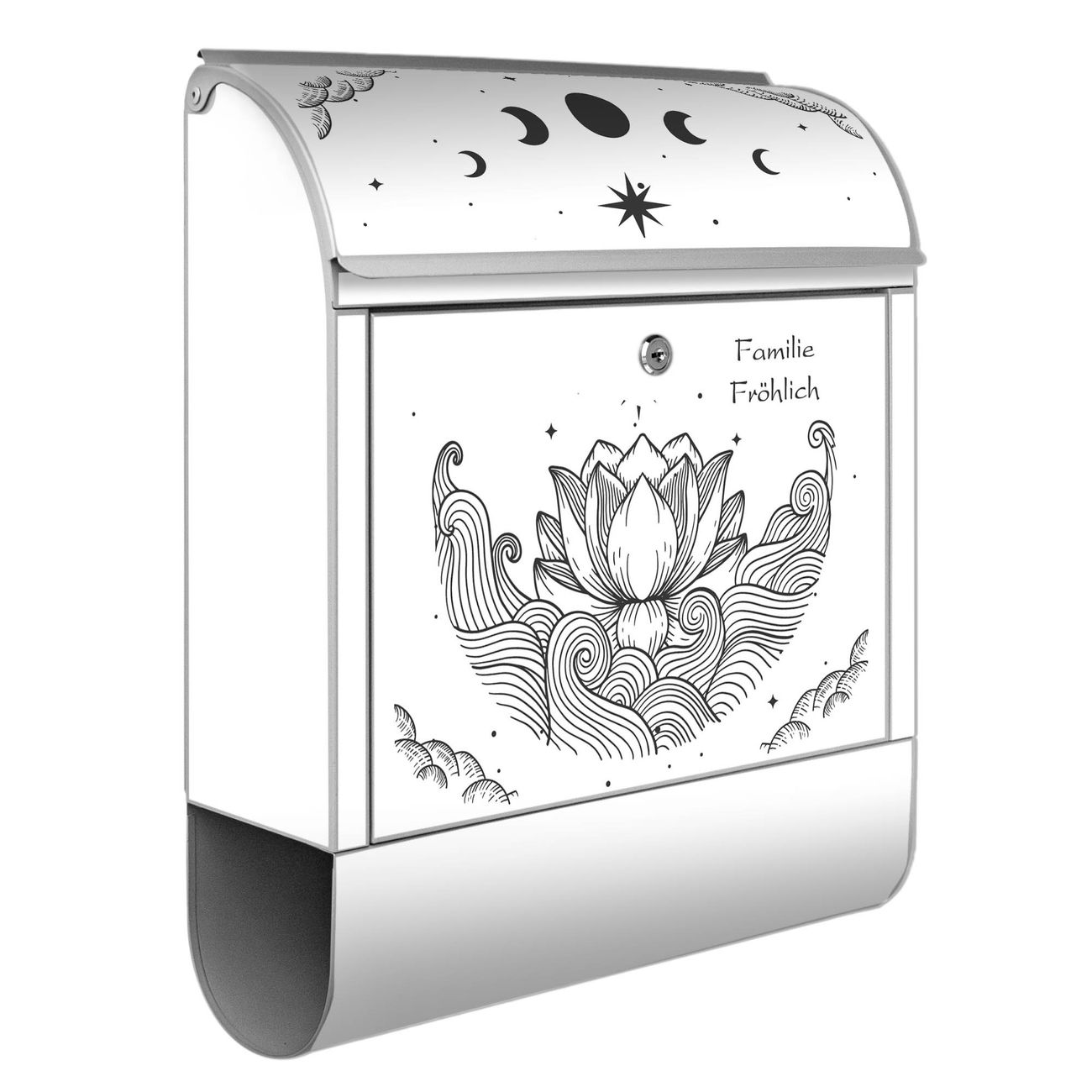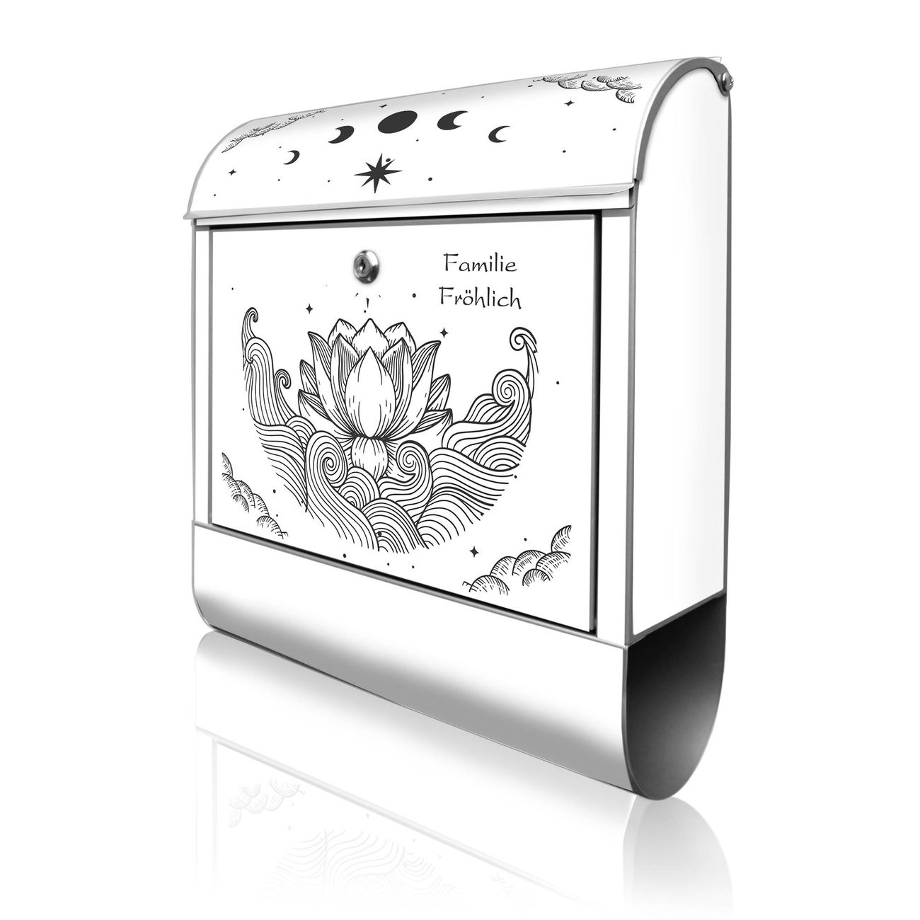 Großer Stahl Briefkasten Motiv Lotus und Mondphasen 2