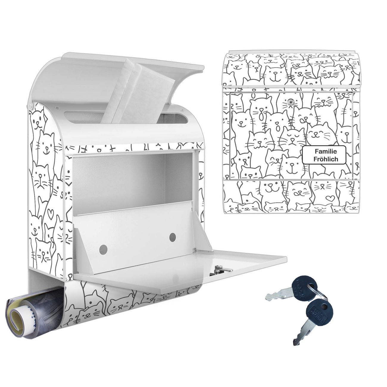 Großer Stahl Briefkasten Motiv Lustiges Katzenmuster