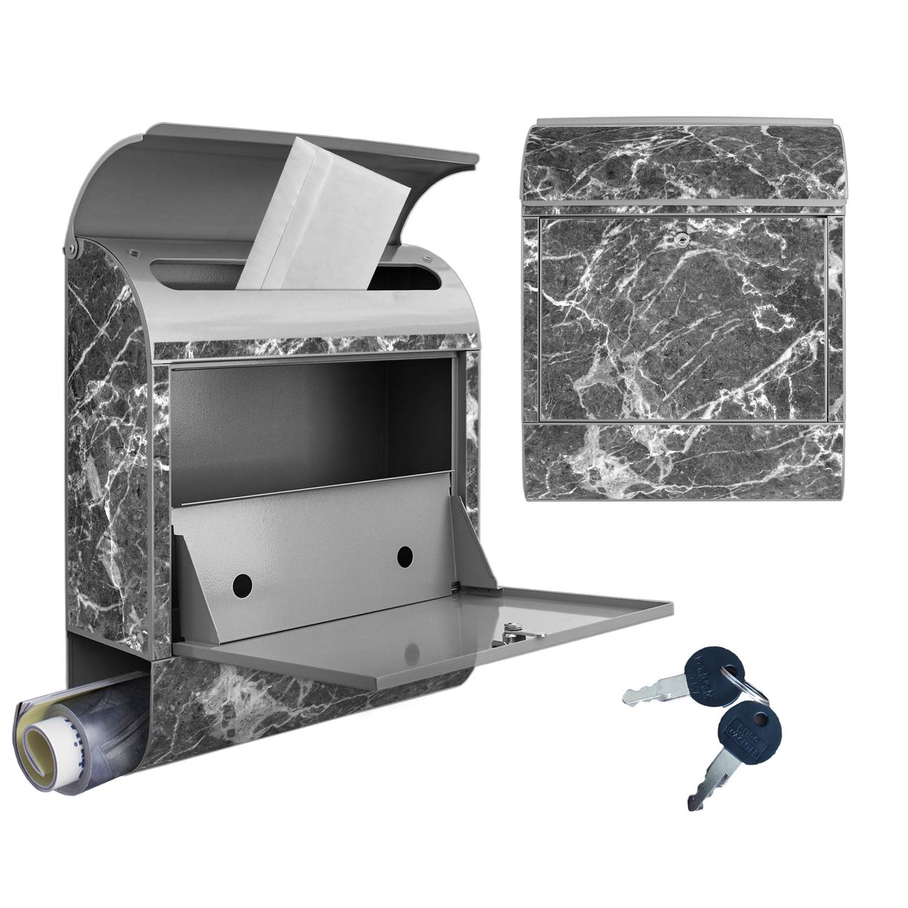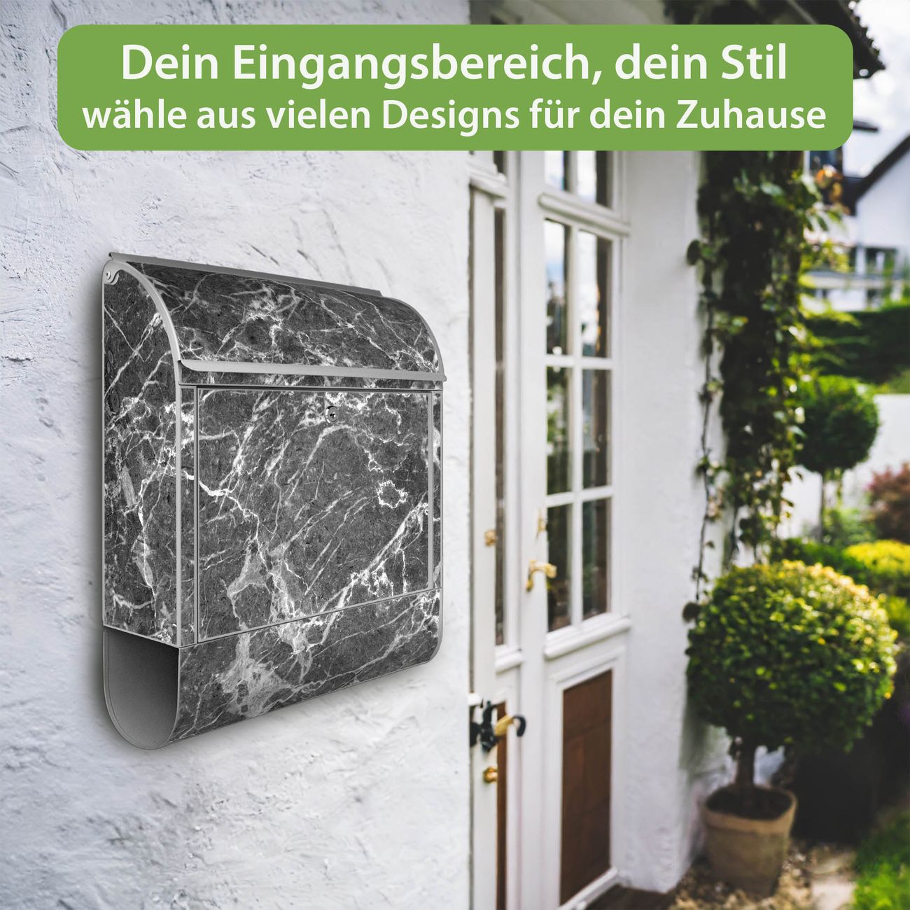 Großer Stahl Briefkasten Motiv Marmorstein