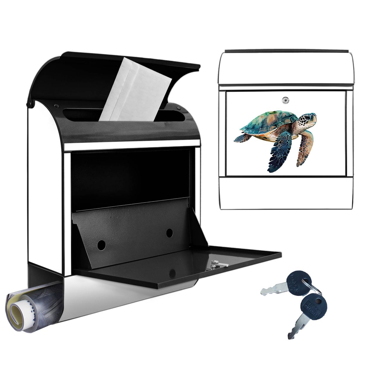 Großer Stahl Briefkasten Motiv Meeresschildkröte Aquarell