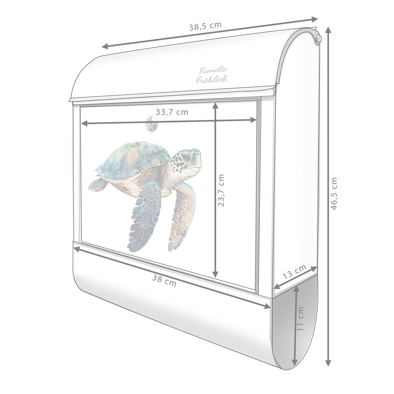 Großer Stahl Briefkasten Motiv Meeresschildkröte Aquarell