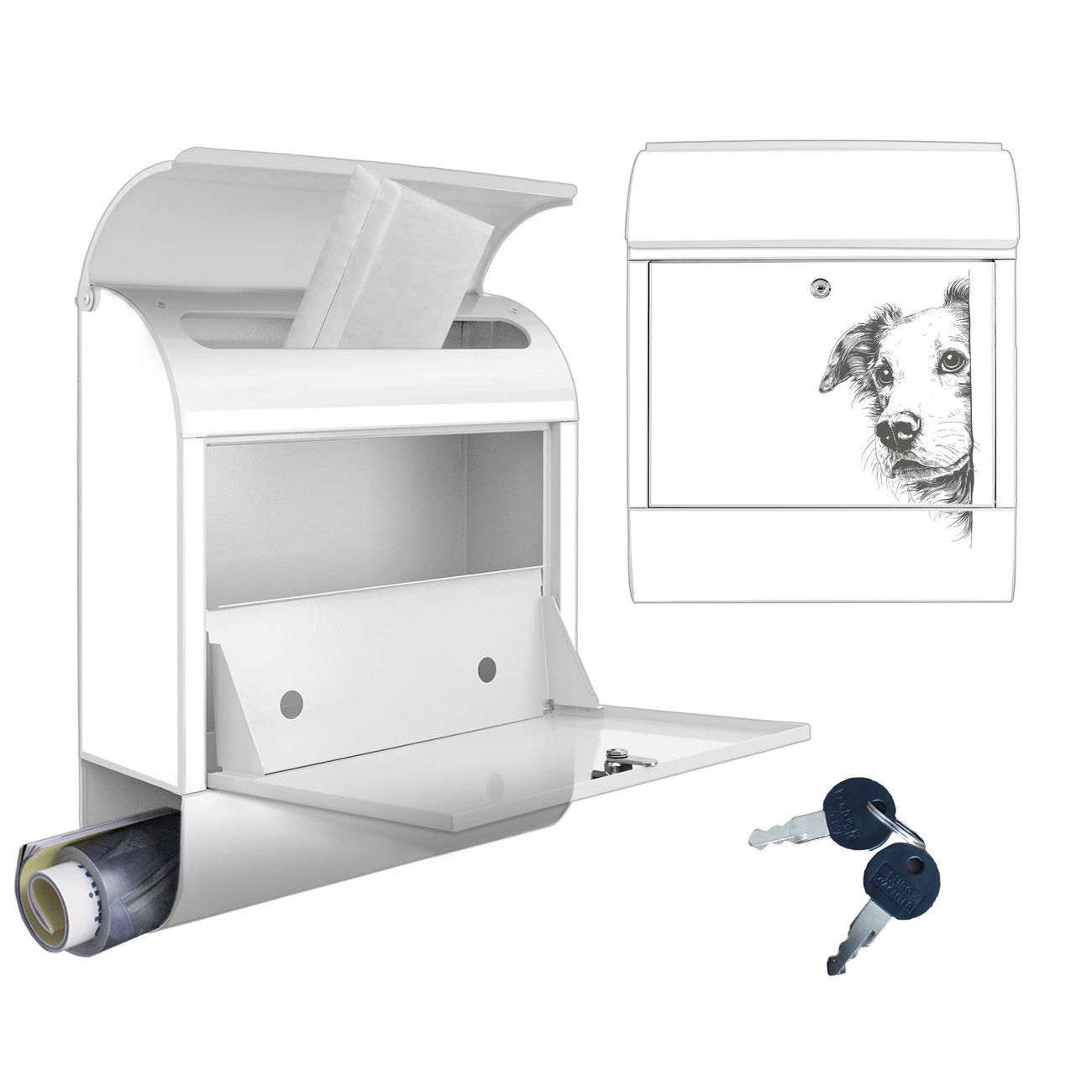 Großer Stahl Briefkasten Motiv Neugieriger Hund