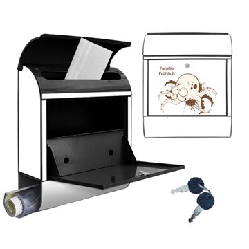 DESIGN: Der Postkasten mit Motiv Motiv Oktopus Comic 2 hat ein sehr ansprechendes und ausgefallenes Design, damit entlocken Sie Ihren Nachbarn und dem Postboten ein Lächeln. Heben Sie Sich von der tristen grauen Masse ab, ohne auf Funktionalität zu verzichten. DETAILS: Der Postkasten besteht aus pulverbeschichtetem Stahl. Er ist 38x46x12,5cm groß. Das Motiv besteht aus einer wetter- und UV-resistenten Folie, die mit einem Schutzlaminat überzogen ist, sodass der Briefkasten zusätzlich vor Kratzern geschützt ist. Der Briefkasten wird mit Montagematerial, zusätzlich zwei Schlüssel sowie einer Bohrschablone geliefert. NUTZEN: Sie können diesen Briefkasten sowohl als Wandbriefkasten montieren oder einen passenden Ständer kaufen und als Standbriefkasten einbetonieren. Die Größe bietet genügend Platz für Sendungen aller Art, der Einwurf fasst auch größere A4 Sendungen. BANJADO: Ihr Briefkasten wird in Sachsen in einer kleinen Manufaktur von Hand veredelt. Die Motivfolie ist lösungsmittelfrei und schutzlaminiert für einen langen Halt. Wir legen großen Wert auf die Verbindung von Funktionalität und Design. Sie erhalten Handarbeit aus Sachsen.