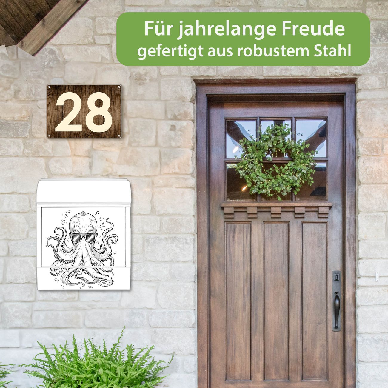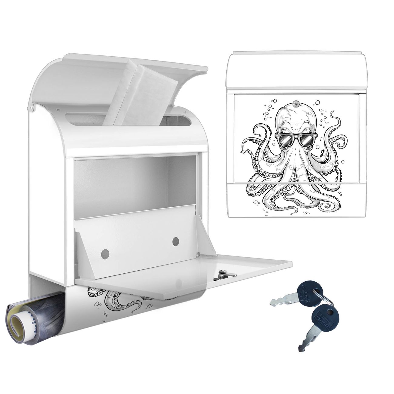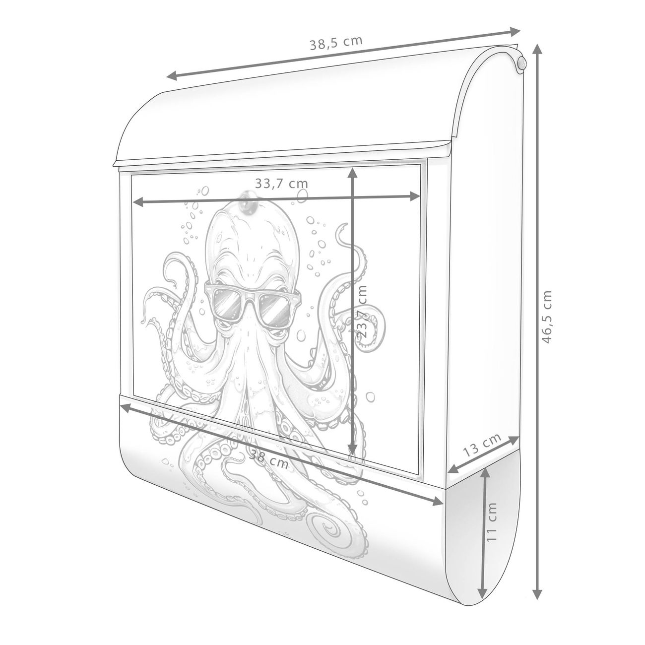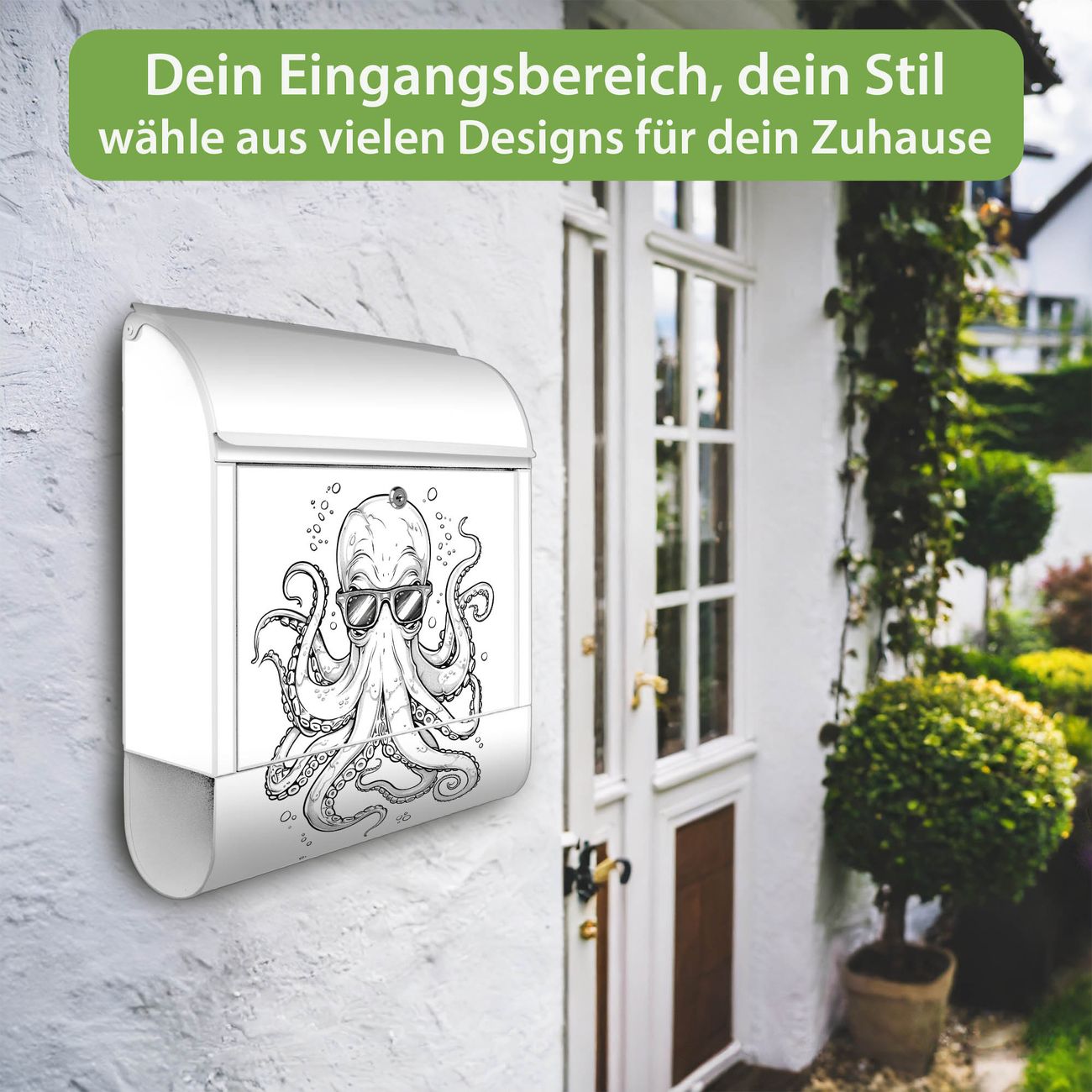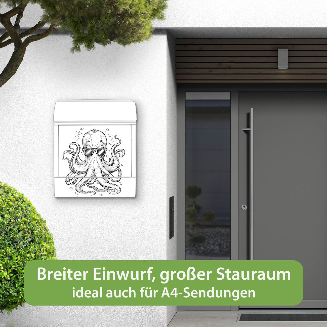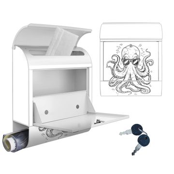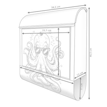 Großer Stahl Briefkasten Motiv Oktopus mit Brille
