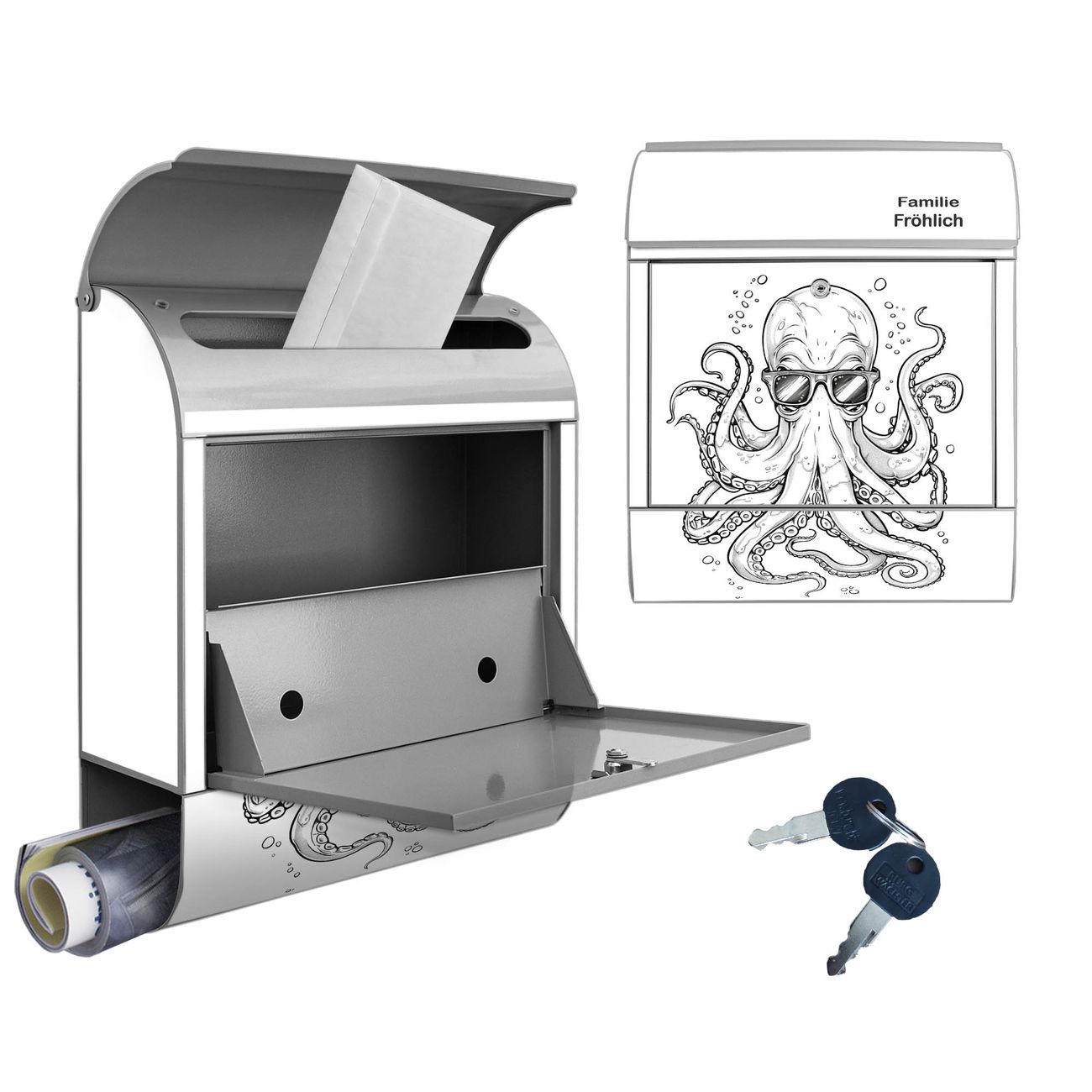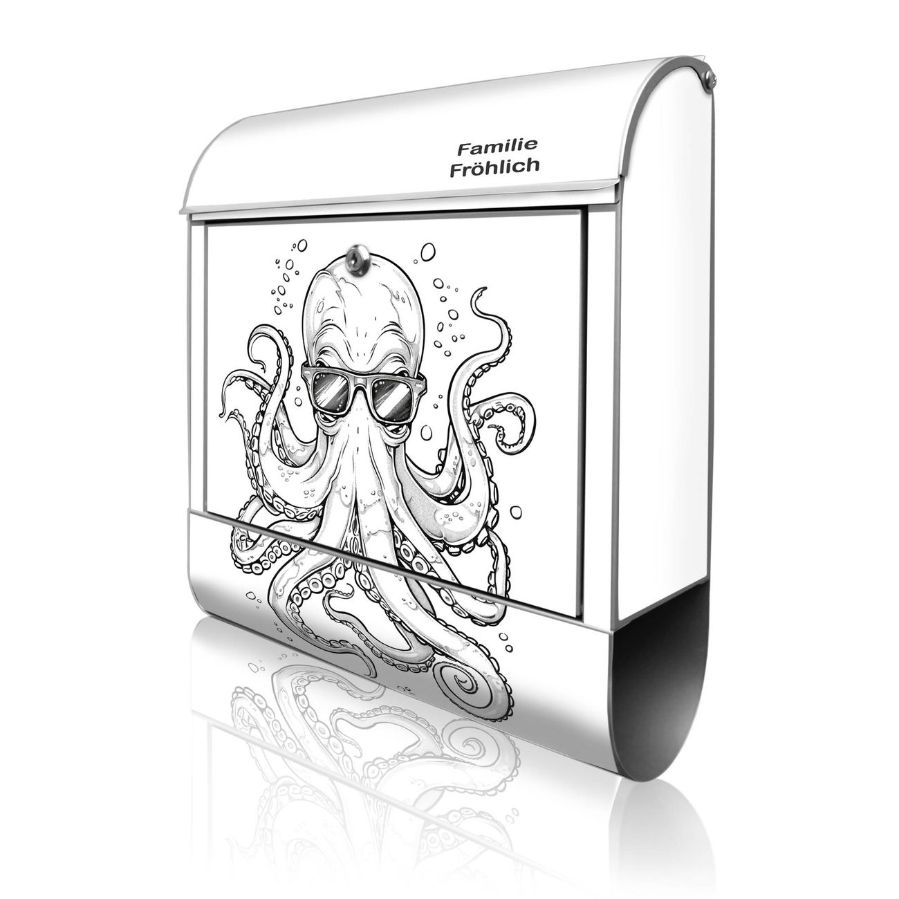Großer Stahl Briefkasten Motiv Oktopus mit Brille