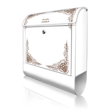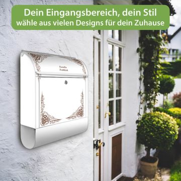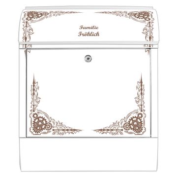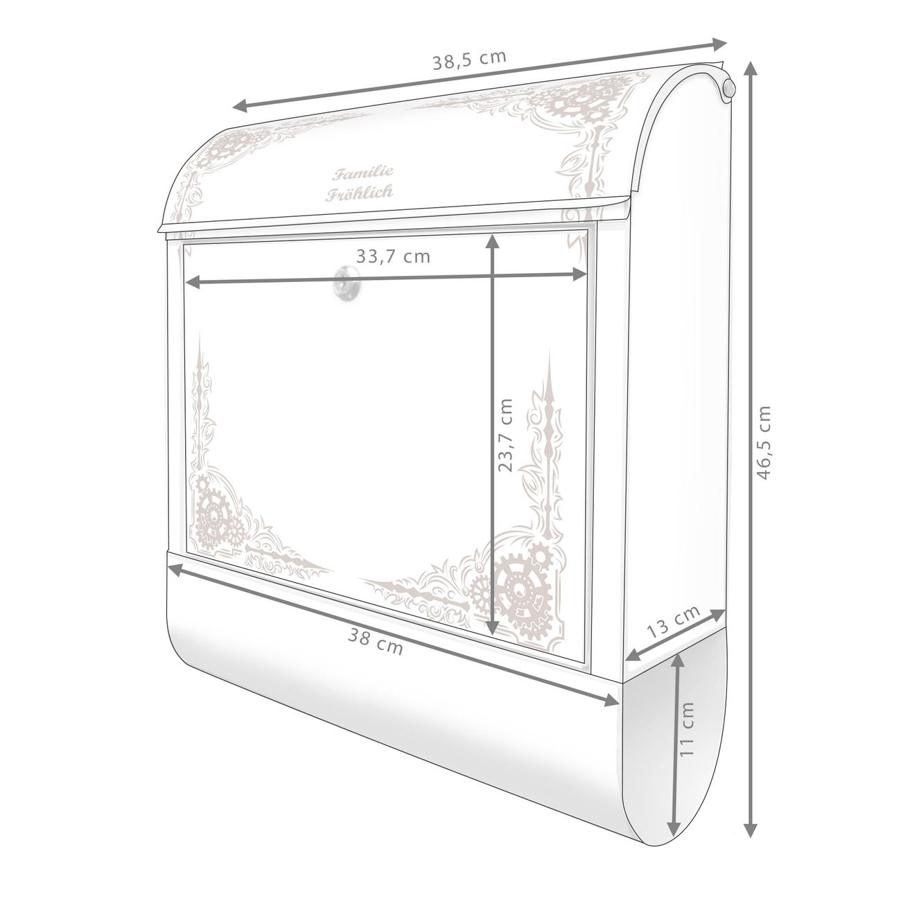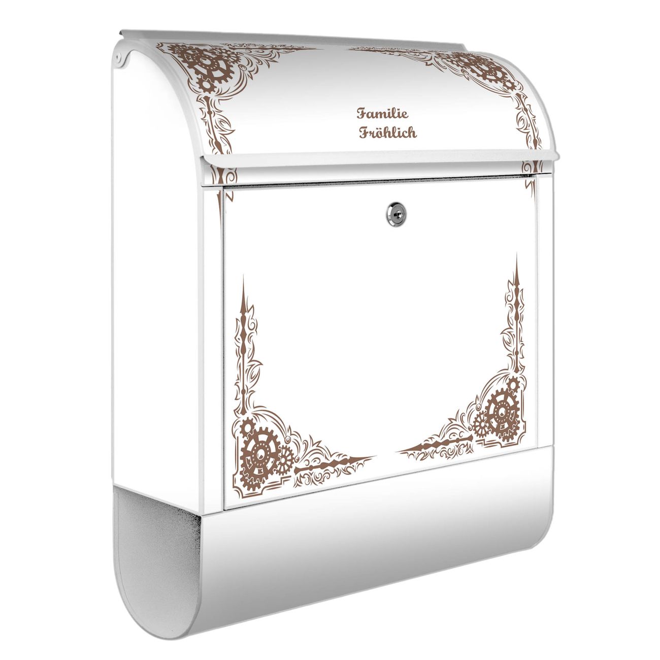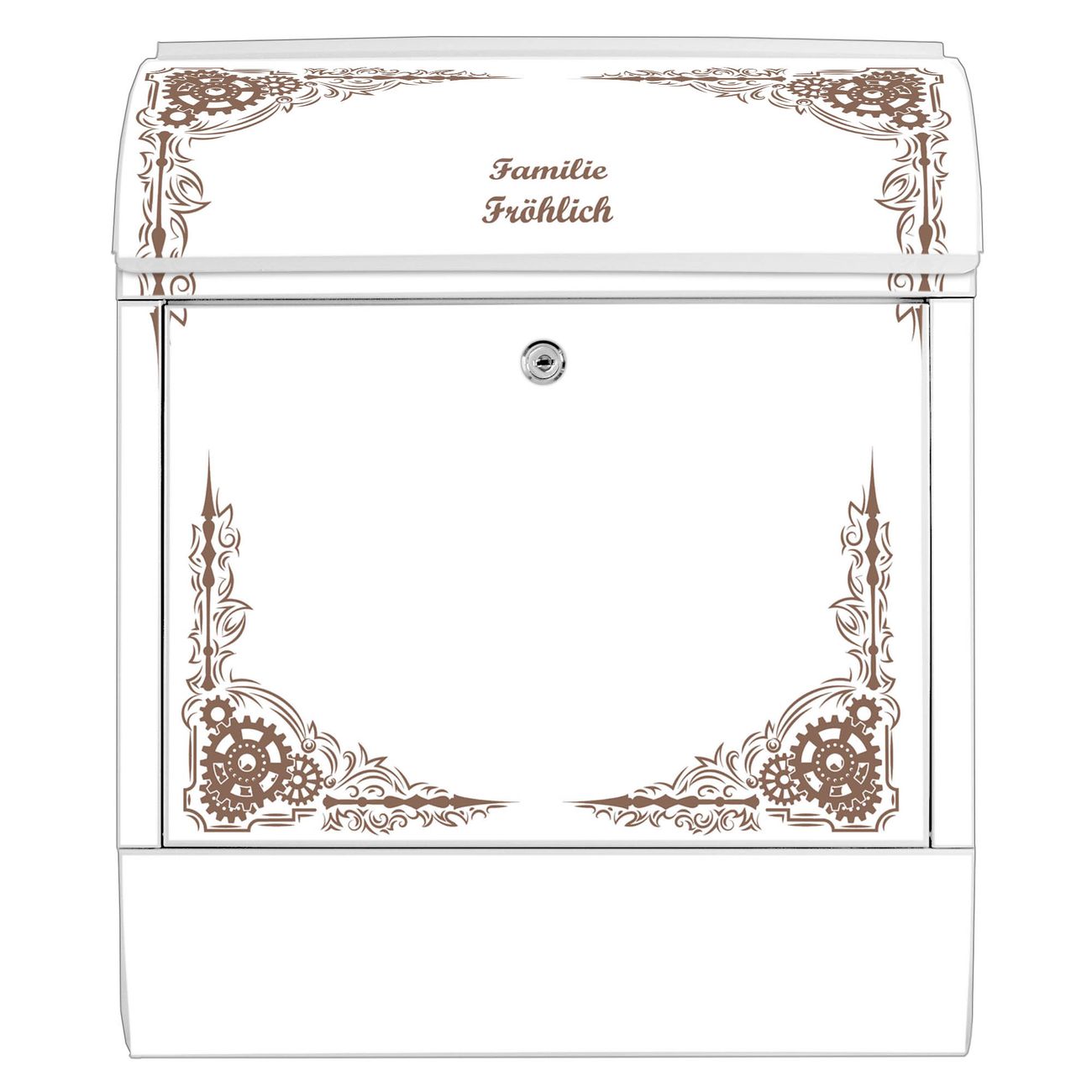 Großer Stahl Briefkasten Motiv Ornamentaler Zahnräderrahmen