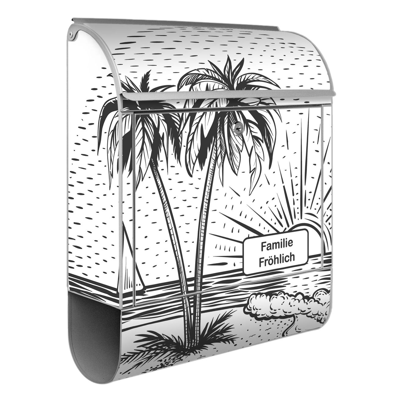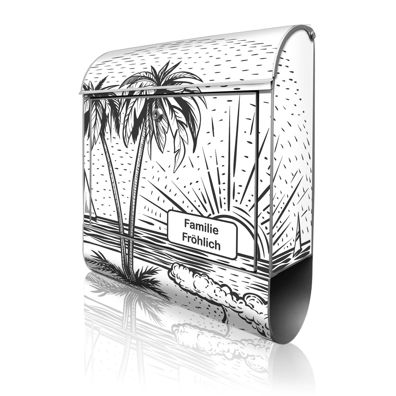 Großer Stahl Briefkasten Motiv Palmenstrand 2