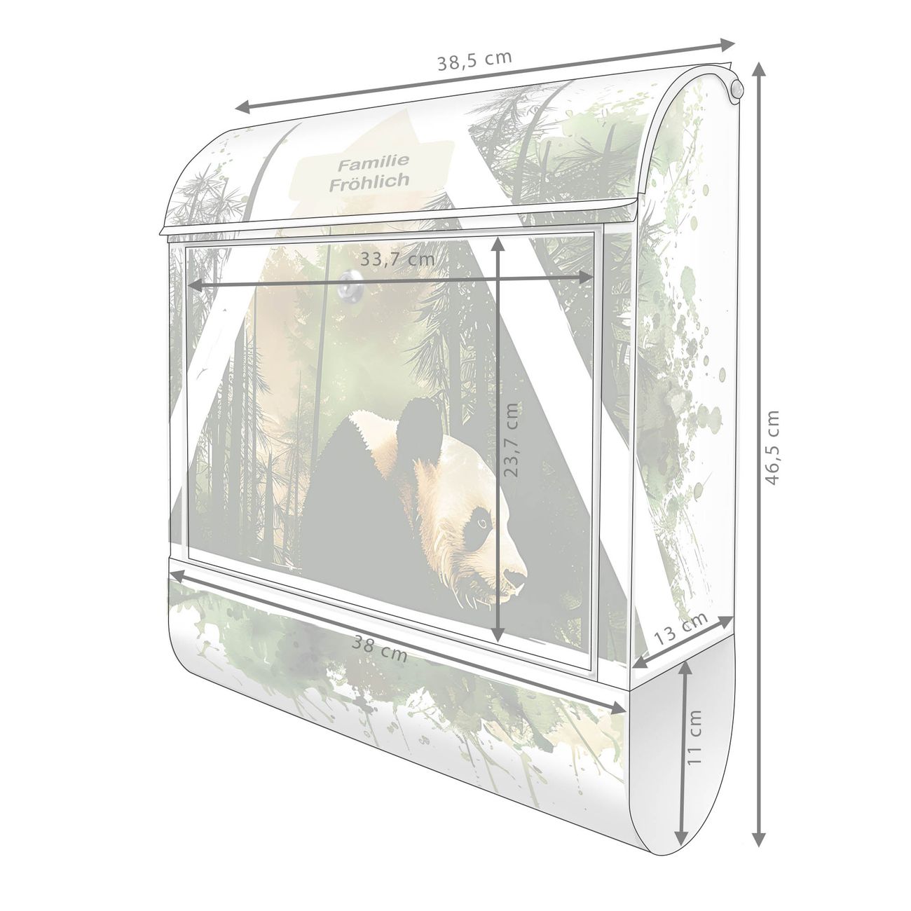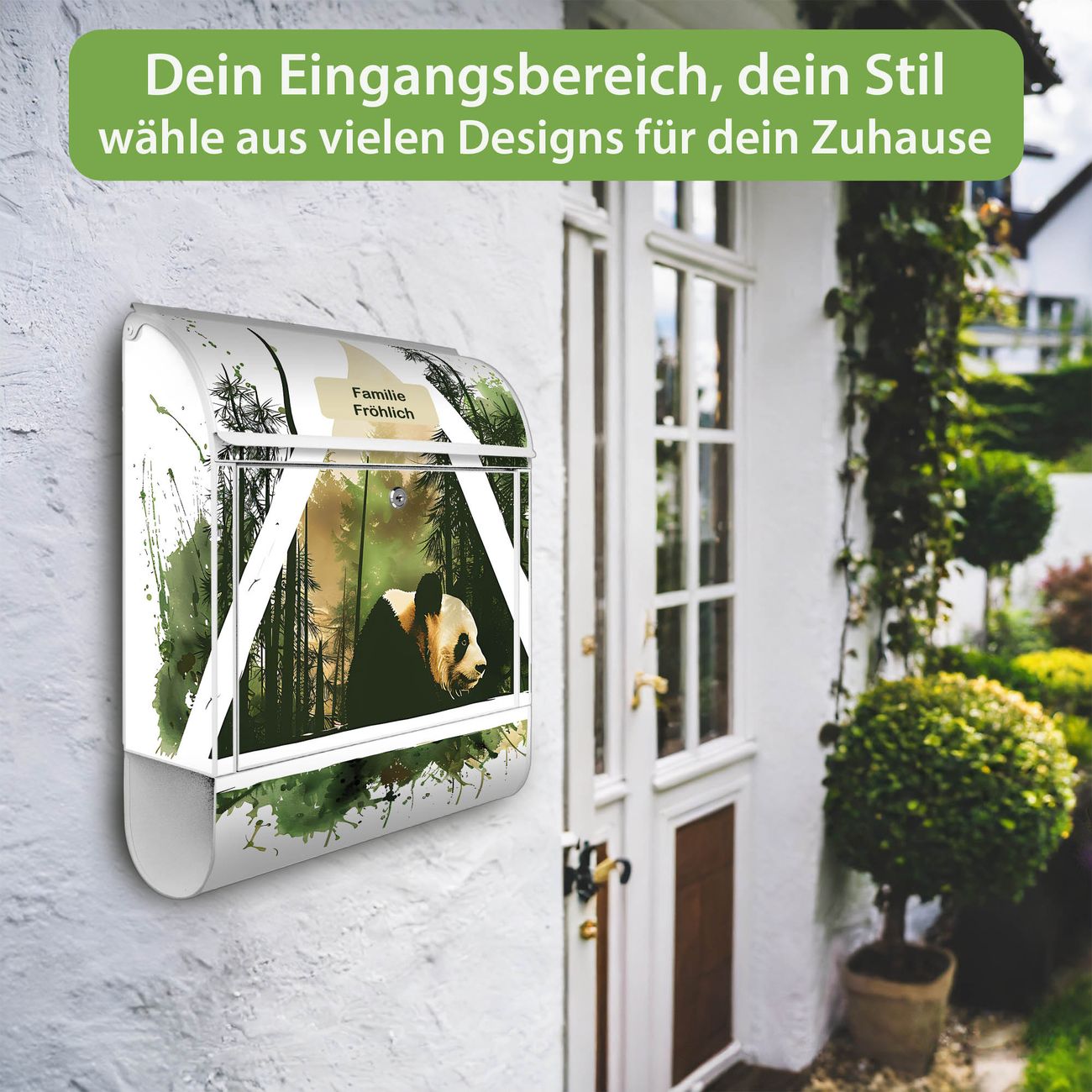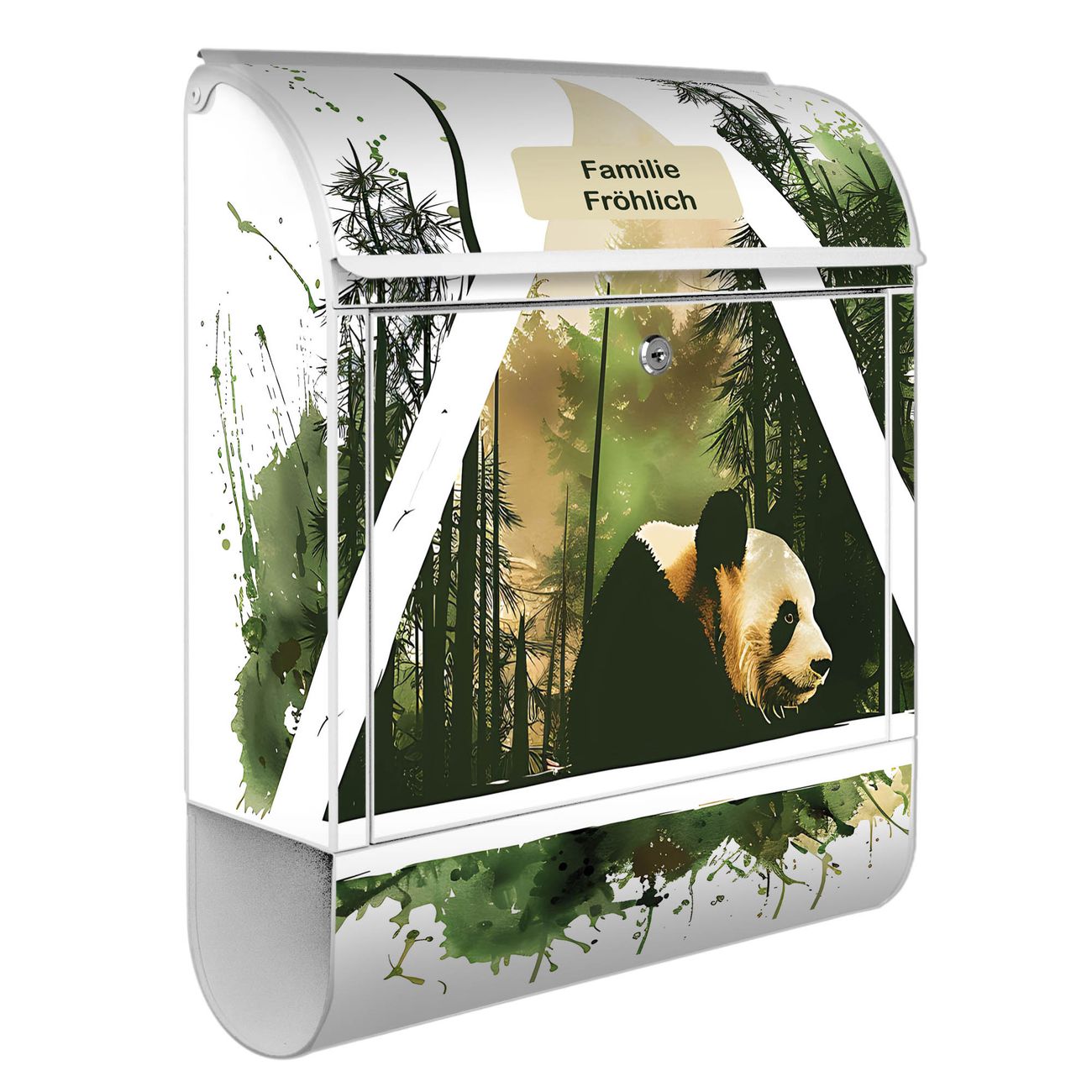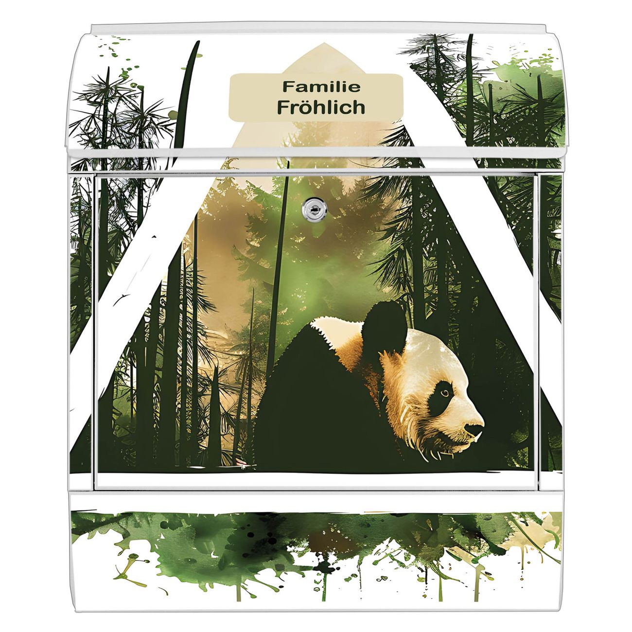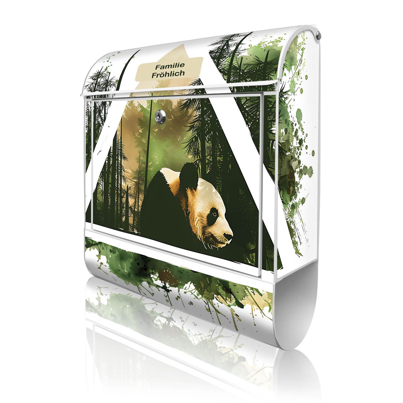 Großer Stahl Briefkasten Motiv Panda im Wald Dreieck