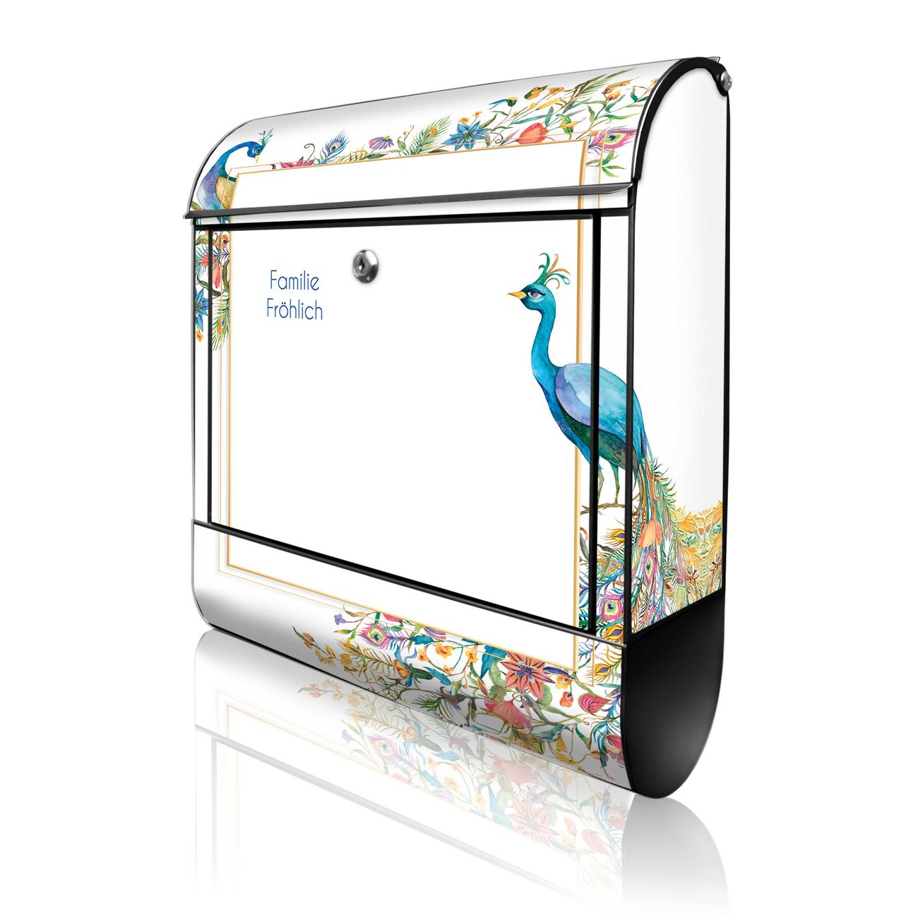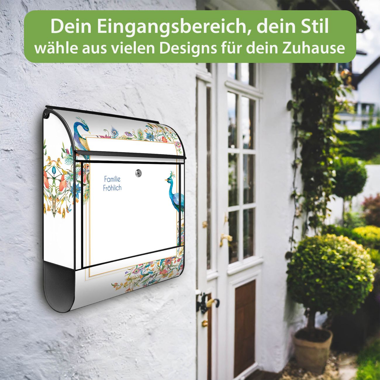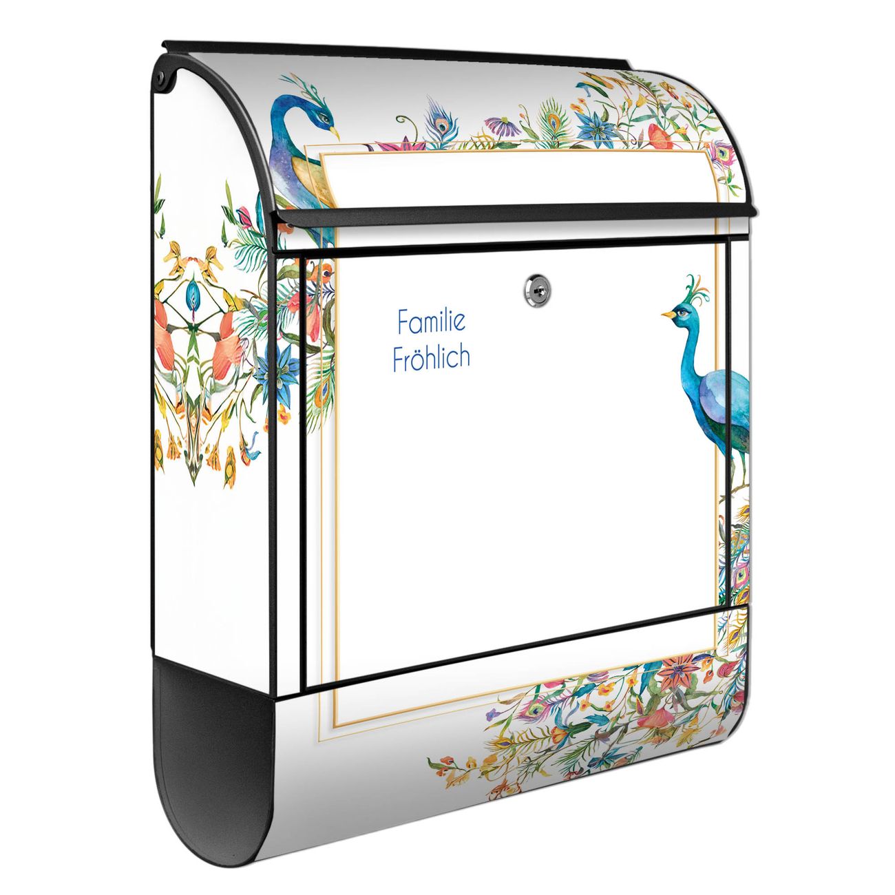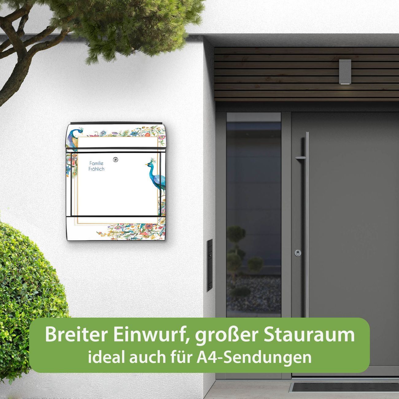 Großer Stahl Briefkasten Motiv Pfauenparadies