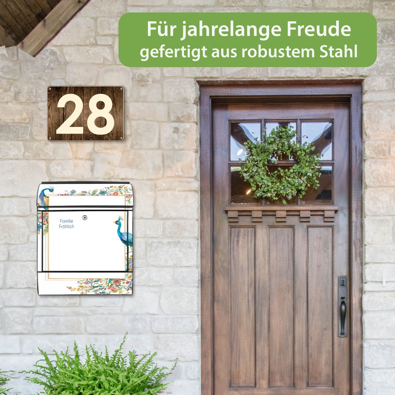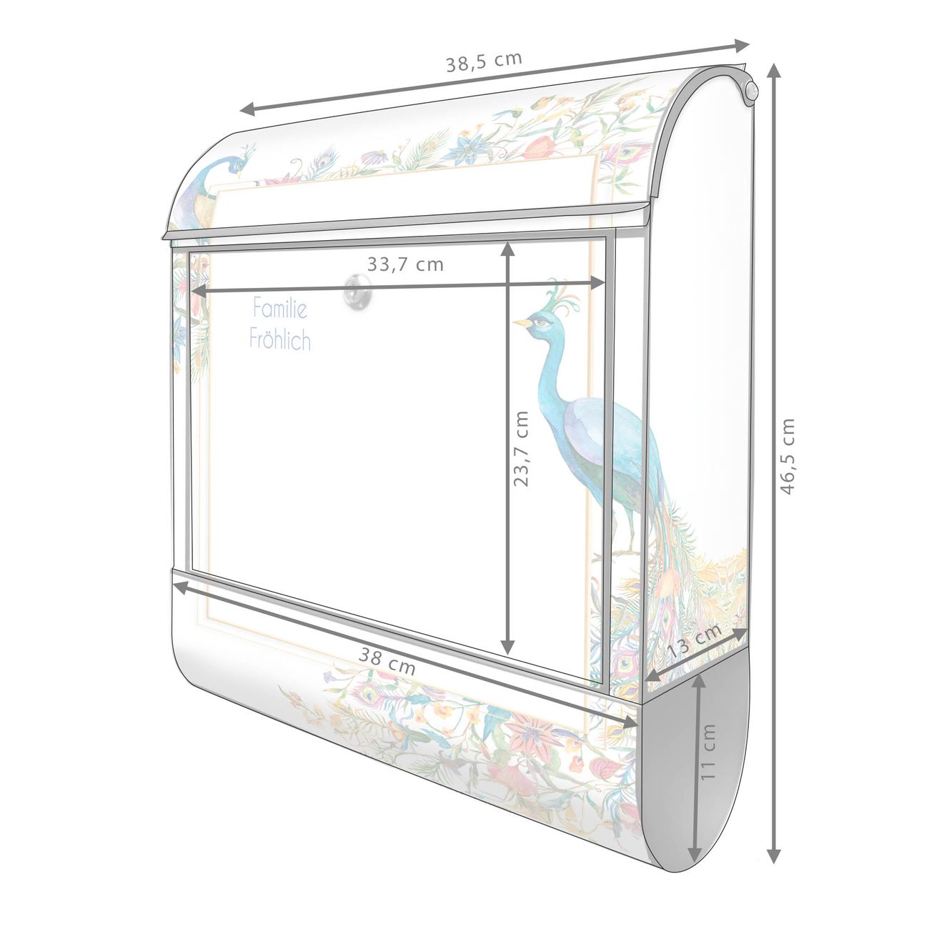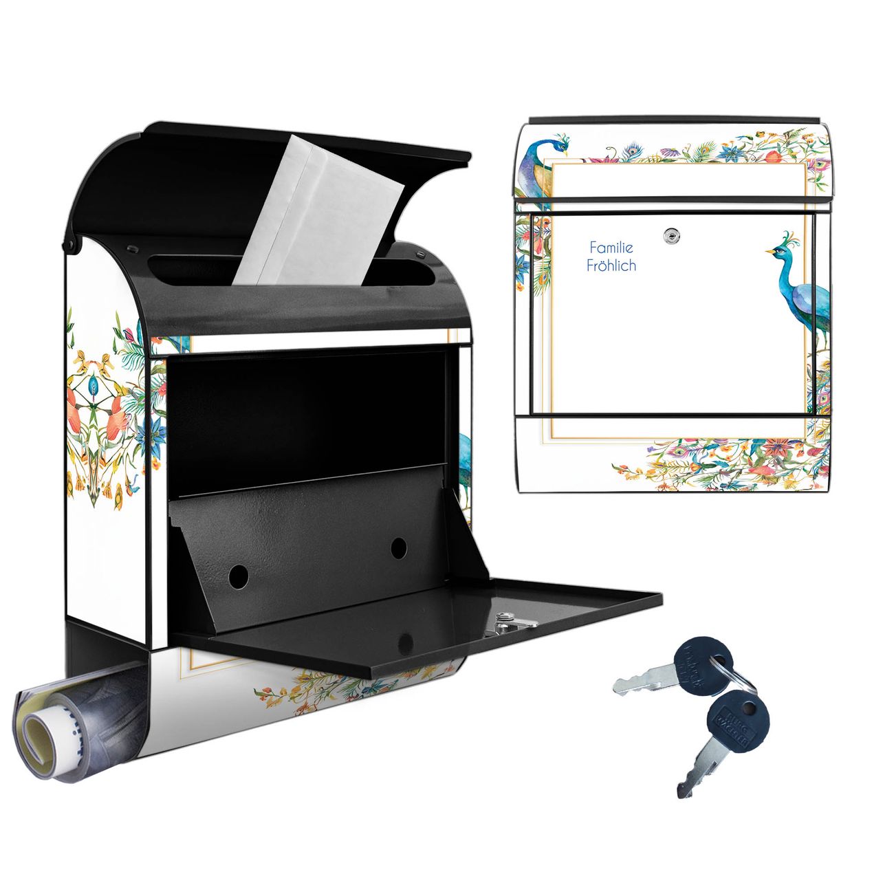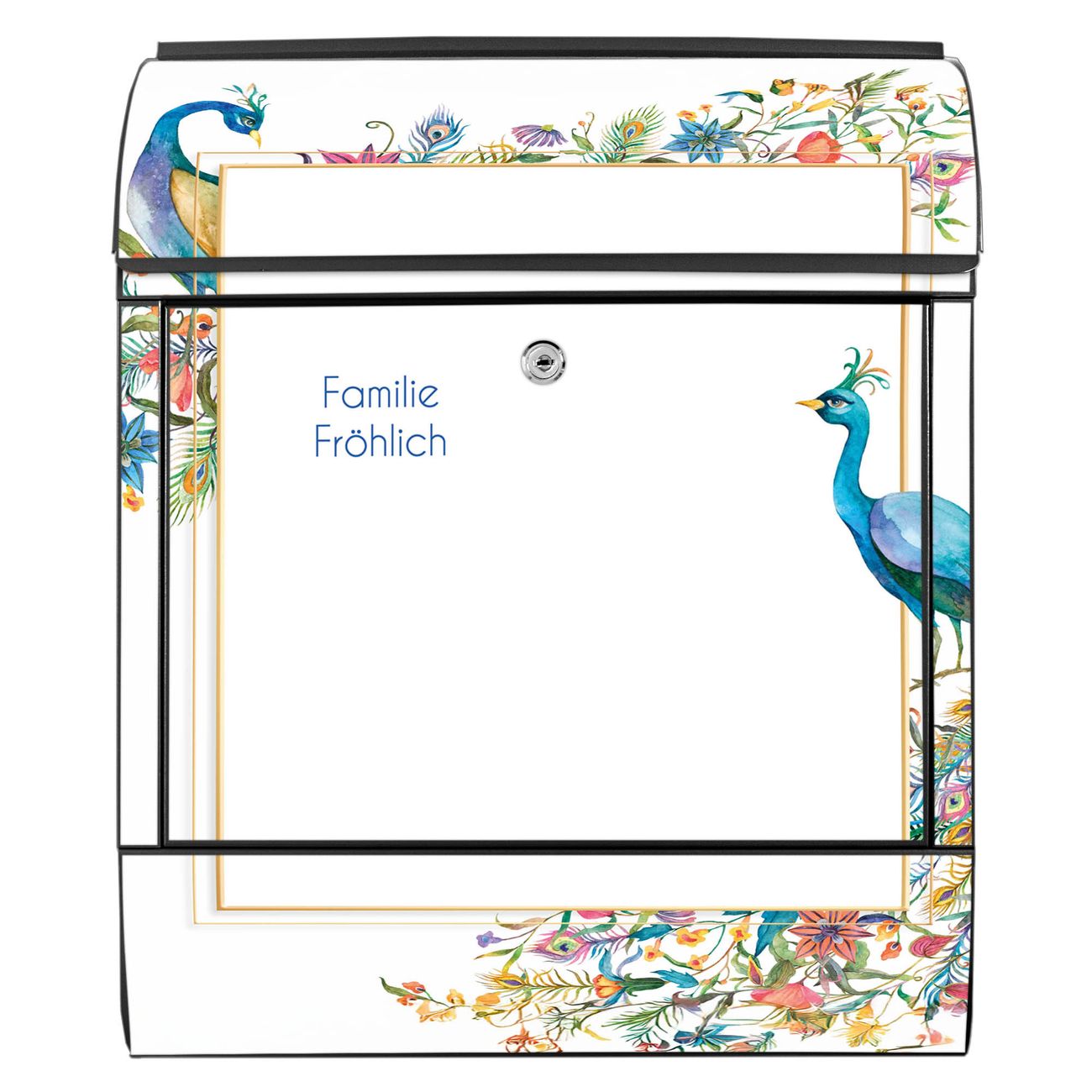 Großer Stahl Briefkasten Motiv Pfauenparadies