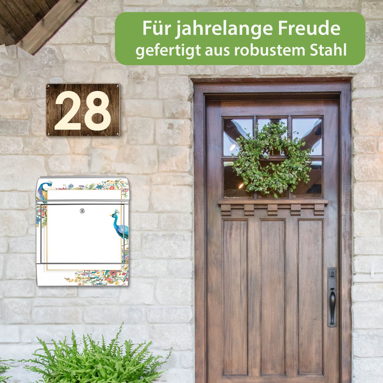 Großer Stahl Briefkasten Motiv Pfauenparadies