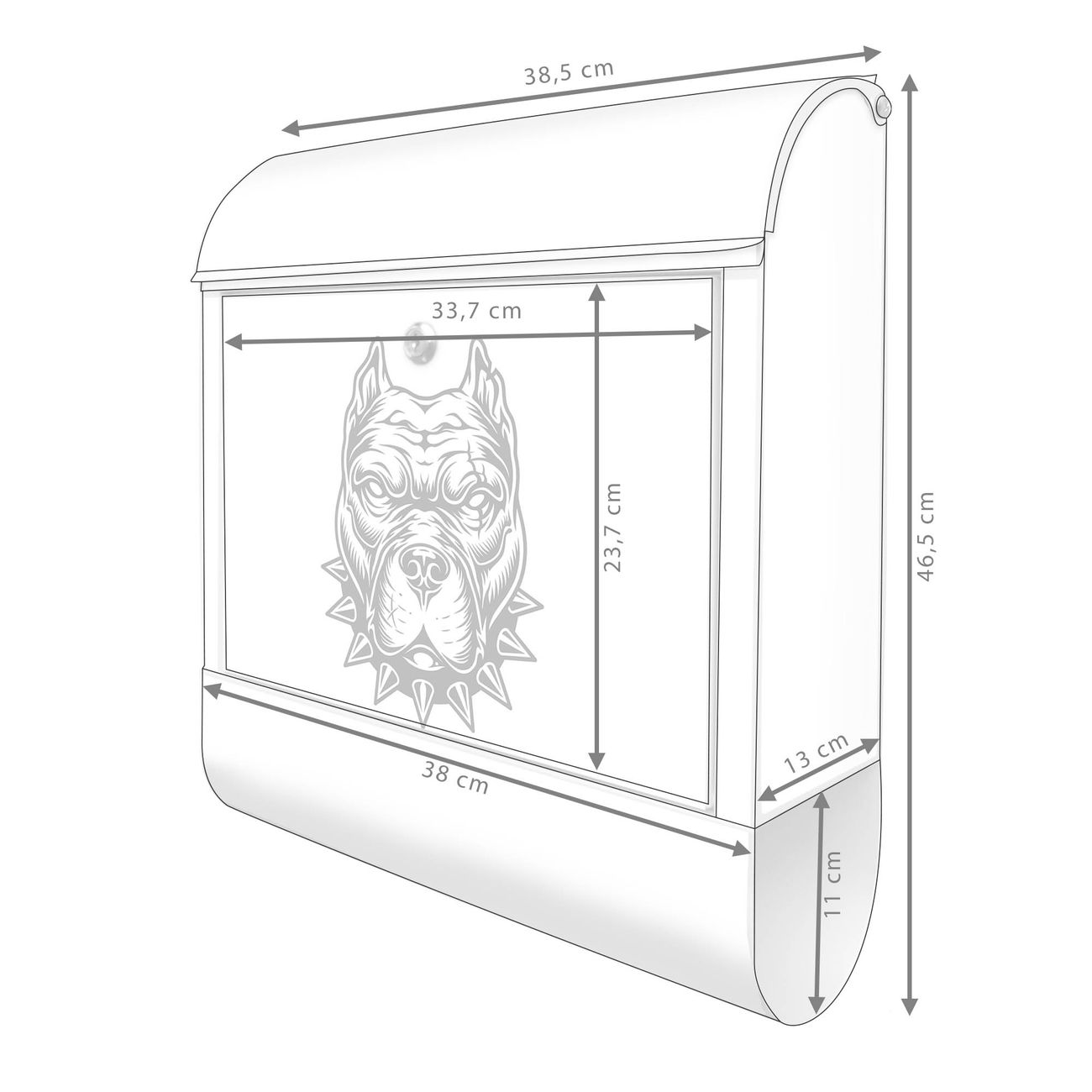 Großer Stahl Briefkasten Motiv Pitbull Silhouette