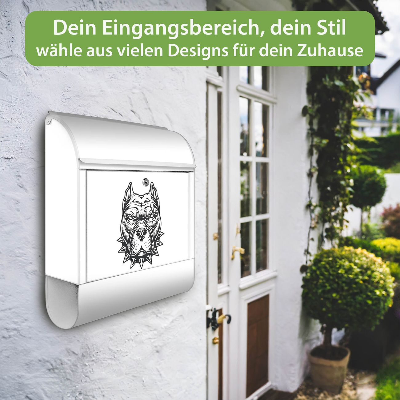 DESIGN: Der Postkasten mit Motiv Motiv Pitbull Silhouette hat ein sehr ansprechendes und ausgefallenes Design, damit entlocken Sie Ihren Nachbarn und dem Postboten ein Lächeln. Heben Sie Sich von der tristen grauen Masse ab, ohne auf Funktionalität zu verzichten. DETAILS: Der Postkasten besteht aus pulverbeschichtetem Stahl. Er ist 38x46x12,5cm groß. Das Motiv besteht aus einer wetter- und UV-resistenten Folie, die mit einem Schutzlaminat überzogen ist, sodass der Briefkasten zusätzlich vor Kratzern geschützt ist. Der Briefkasten wird mit Montagematerial, zusätzlich zwei Schlüssel sowie einer Bohrschablone geliefert. NUTZEN: Sie können diesen Briefkasten sowohl als Wandbriefkasten montieren oder einen passenden Ständer kaufen und als Standbriefkasten einbetonieren. Die Größe bietet genügend Platz für Sendungen aller Art, der Einwurf fasst auch größere A4 Sendungen. BANJADO: Ihr Briefkasten wird in Sachsen in einer kleinen Manufaktur von Hand veredelt. Die Motivfolie ist lösungsmittelfrei und schutzlaminiert für einen langen Halt. Wir legen großen Wert auf die Verbindung von Funktionalität und Design. Sie erhalten Handarbeit aus Sachsen.