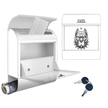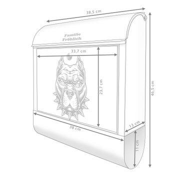 Großer Stahl Briefkasten Motiv Pitbull Silhouette