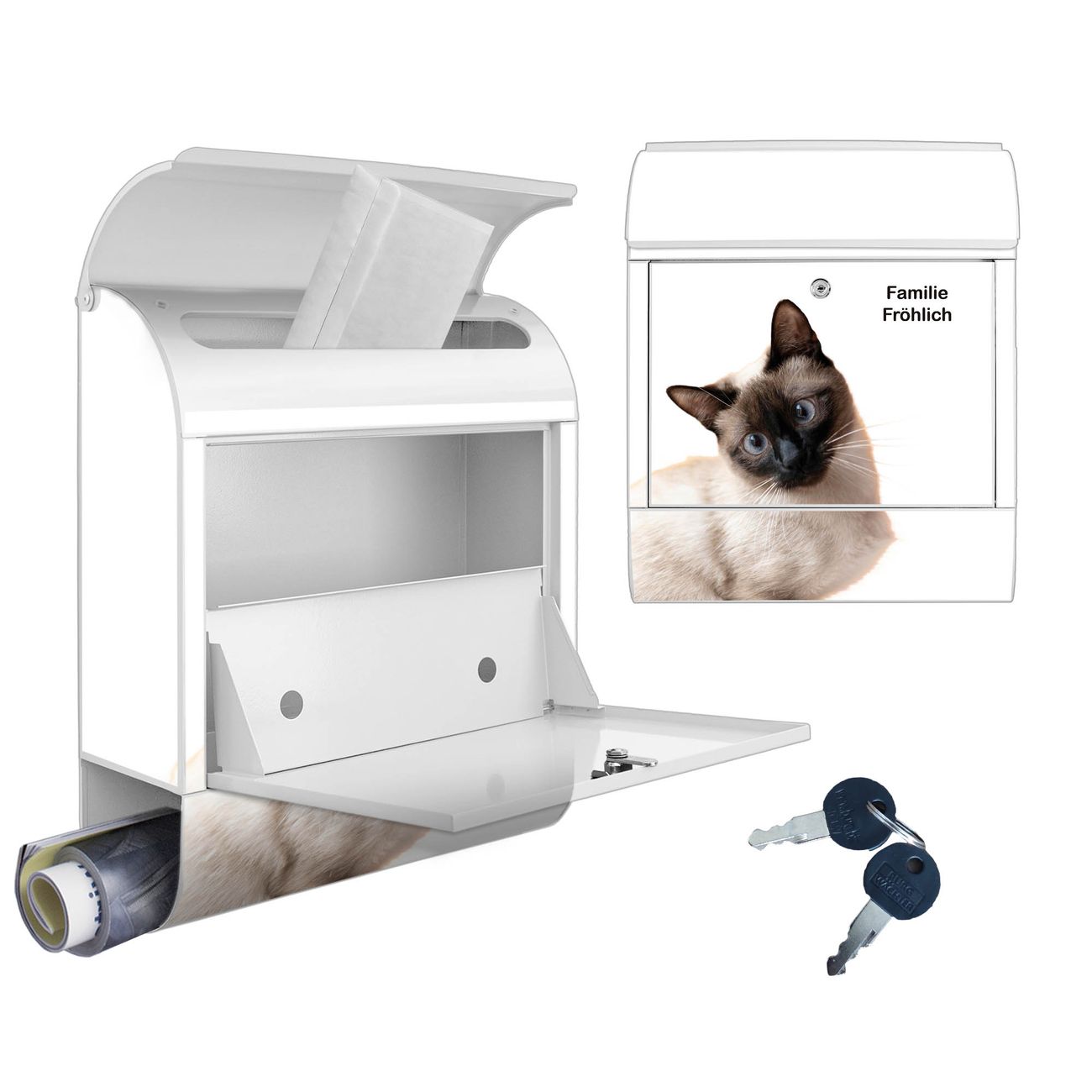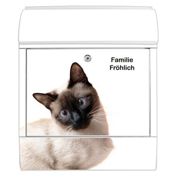 Großer Stahl Briefkasten Motiv Porträt einer Siamkatze