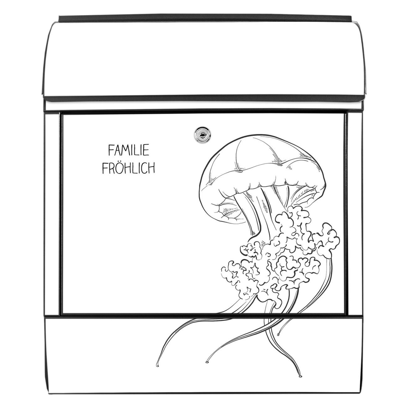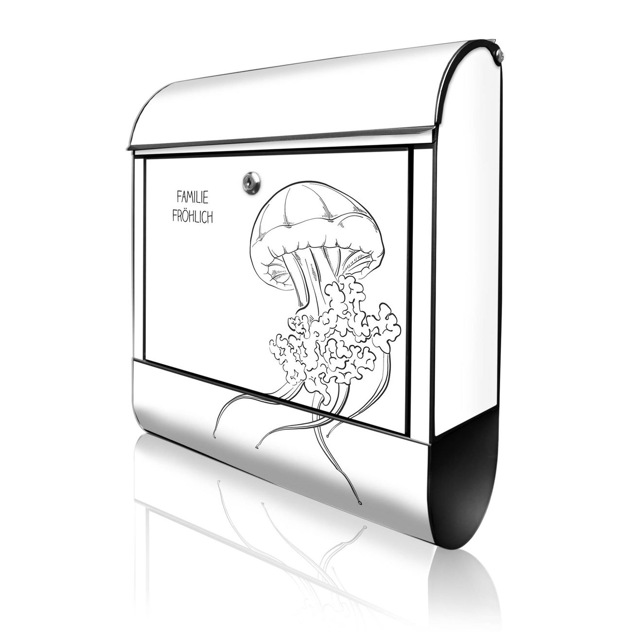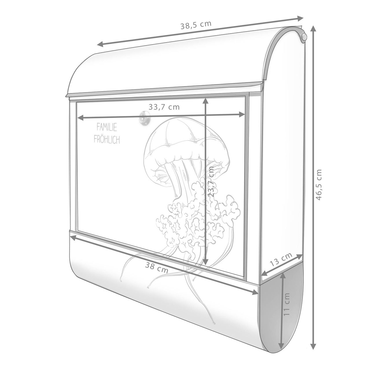 DESIGN: Der Postkasten mit Motiv Motiv Qualle 6 hat ein sehr ansprechendes und ausgefallenes Design, damit entlocken Sie Ihren Nachbarn und dem Postboten ein Lächeln. Heben Sie Sich von der tristen grauen Masse ab, ohne auf Funktionalität zu verzichten. DETAILS: Der Postkasten besteht aus pulverbeschichtetem Stahl. Er ist 38x46x12,5cm groß. Das Motiv besteht aus einer wetter- und UV-resistenten Folie, die mit einem Schutzlaminat überzogen ist, sodass der Briefkasten zusätzlich vor Kratzern geschützt ist. Der Briefkasten wird mit Montagematerial, zusätzlich zwei Schlüssel sowie einer Bohrschablone geliefert. NUTZEN: Sie können diesen Briefkasten sowohl als Wandbriefkasten montieren oder einen passenden Ständer kaufen und als Standbriefkasten einbetonieren. Die Größe bietet genügend Platz für Sendungen aller Art, der Einwurf fasst auch größere A4 Sendungen. BANJADO: Ihr Briefkasten wird in Sachsen in einer kleinen Manufaktur von Hand veredelt. Die Motivfolie ist lösungsmittelfrei und schutzlaminiert für einen langen Halt. Wir legen großen Wert auf die Verbindung von Funktionalität und Design. Sie erhalten Handarbeit aus Sachsen.