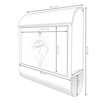 DESIGN: Der Postkasten mit Motiv Motiv Quallenprisma 2 hat ein sehr ansprechendes und ausgefallenes Design, damit entlocken Sie Ihren Nachbarn und dem Postboten ein Lächeln. Heben Sie Sich von der tristen grauen Masse ab, ohne auf Funktionalität zu verzichten. DETAILS: Der Postkasten besteht aus pulverbeschichtetem Stahl. Er ist 38x46x12,5cm groß. Das Motiv besteht aus einer wetter- und UV-resistenten Folie, die mit einem Schutzlaminat überzogen ist, sodass der Briefkasten zusätzlich vor Kratzern geschützt ist. Der Briefkasten wird mit Montagematerial, zusätzlich zwei Schlüssel sowie einer Bohrschablone geliefert. NUTZEN: Sie können diesen Briefkasten sowohl als Wandbriefkasten montieren oder einen passenden Ständer kaufen und als Standbriefkasten einbetonieren. Die Größe bietet genügend Platz für Sendungen aller Art, der Einwurf fasst auch größere A4 Sendungen. BANJADO: Ihr Briefkasten wird in Sachsen in einer kleinen Manufaktur von Hand veredelt. Die Motivfolie ist lösungsmittelfrei und schutzlaminiert für einen langen Halt. Wir legen großen Wert auf die Verbindung von Funktionalität und Design. Sie erhalten Handarbeit aus Sachsen.