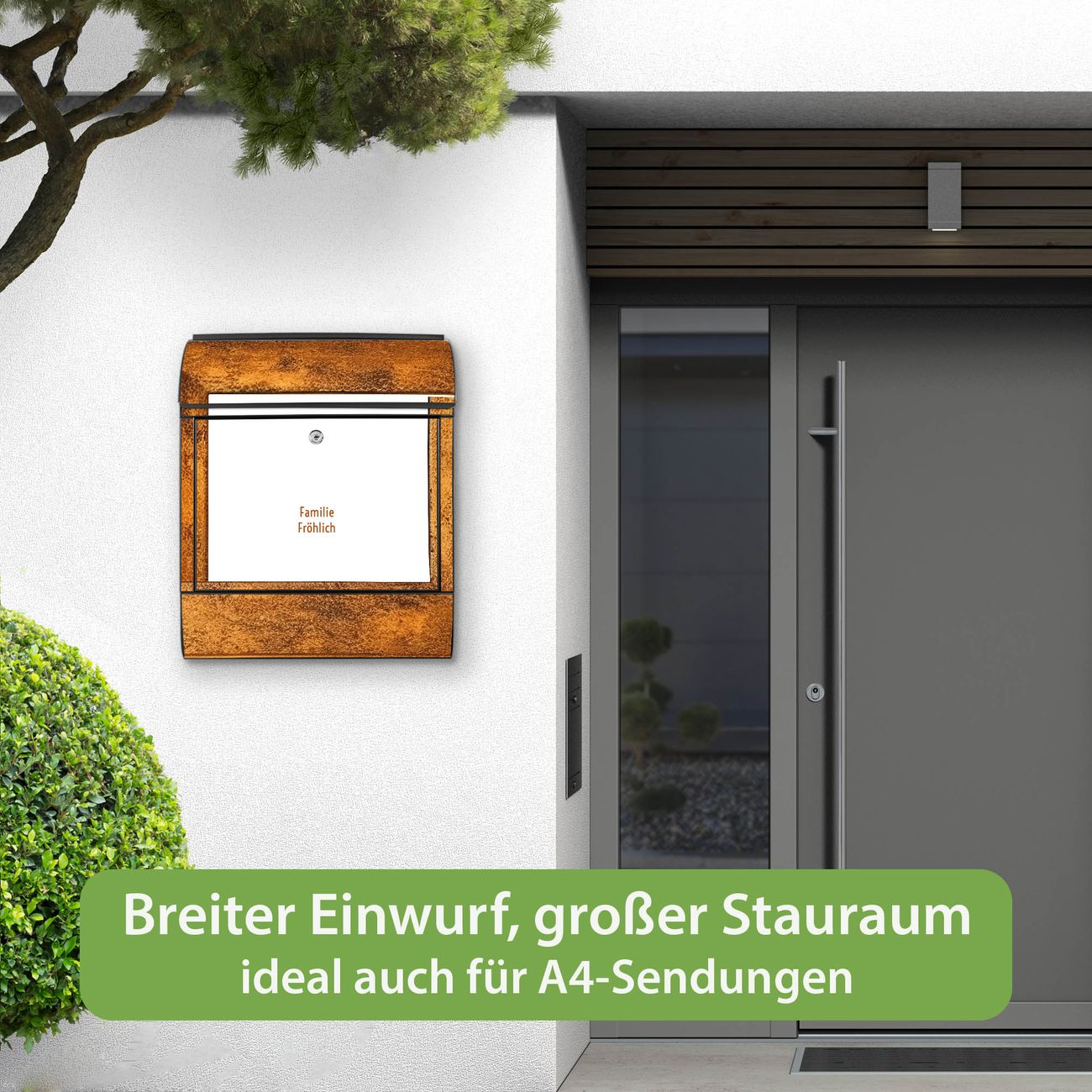 Großer Stahl Briefkasten Motiv Rustikaler Holzrahmen 2