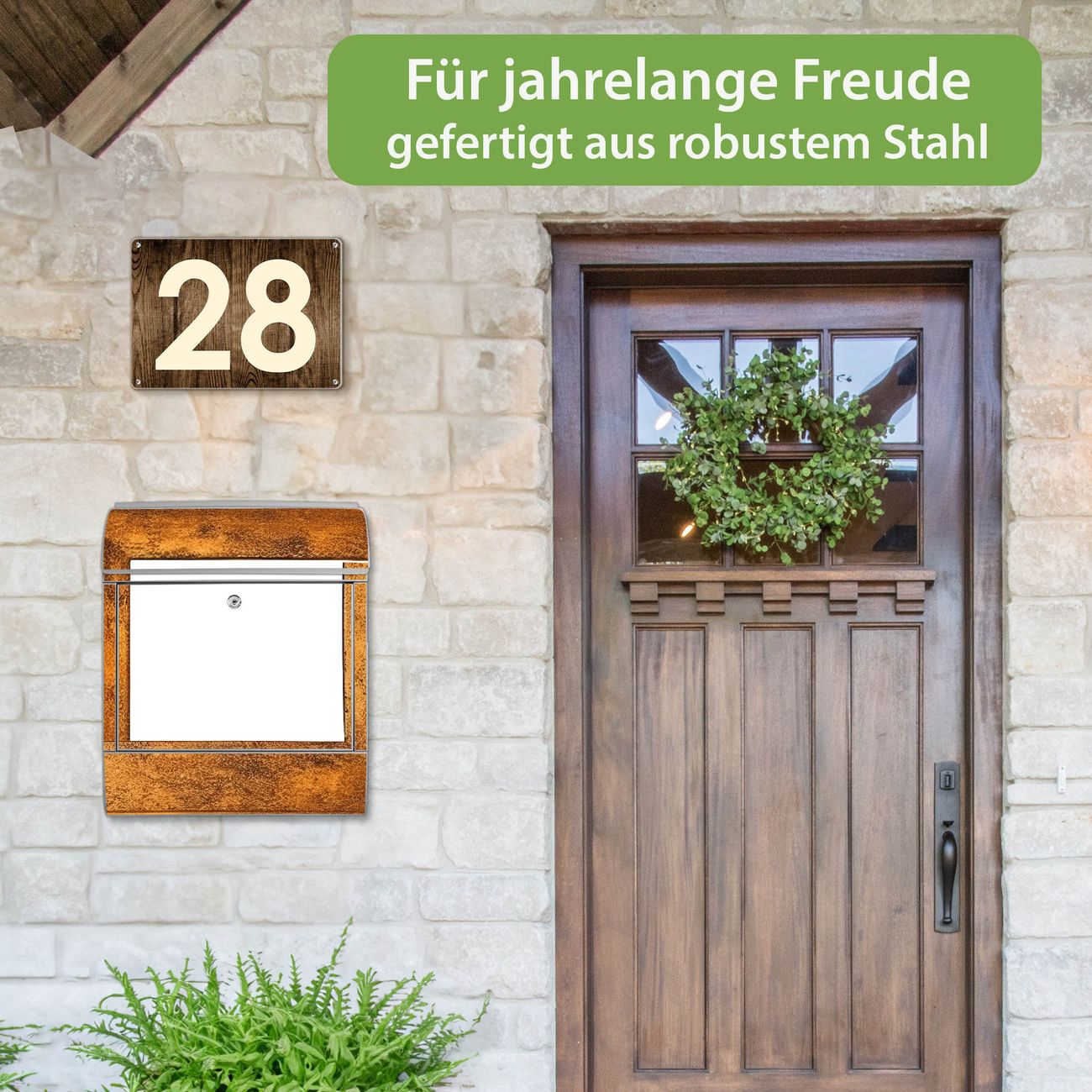 Großer Stahl Briefkasten Motiv Rustikaler Holzrahmen 2