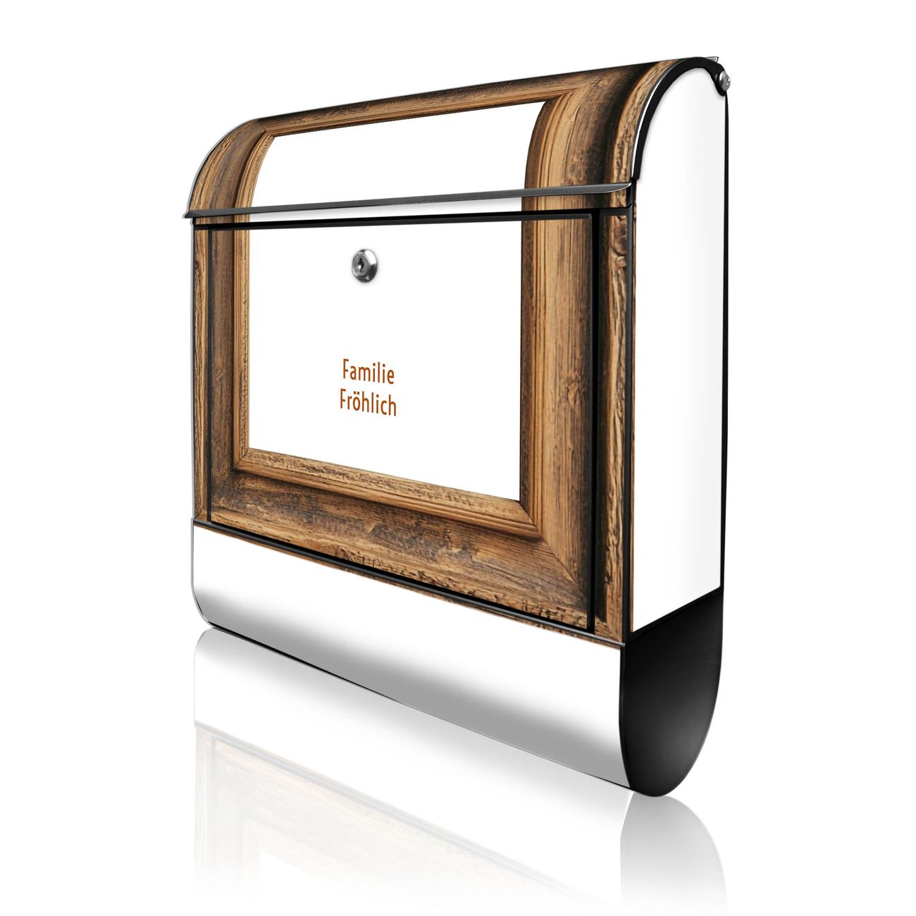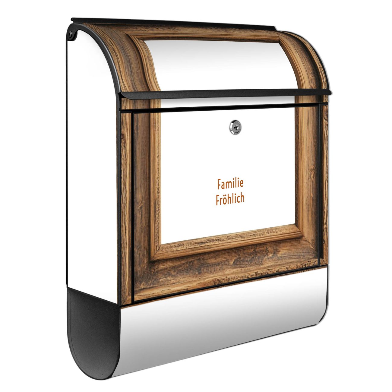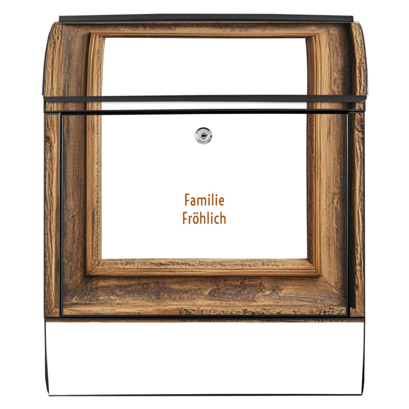 Großer Stahl Briefkasten Motiv Rustikaler Holzrahmen
