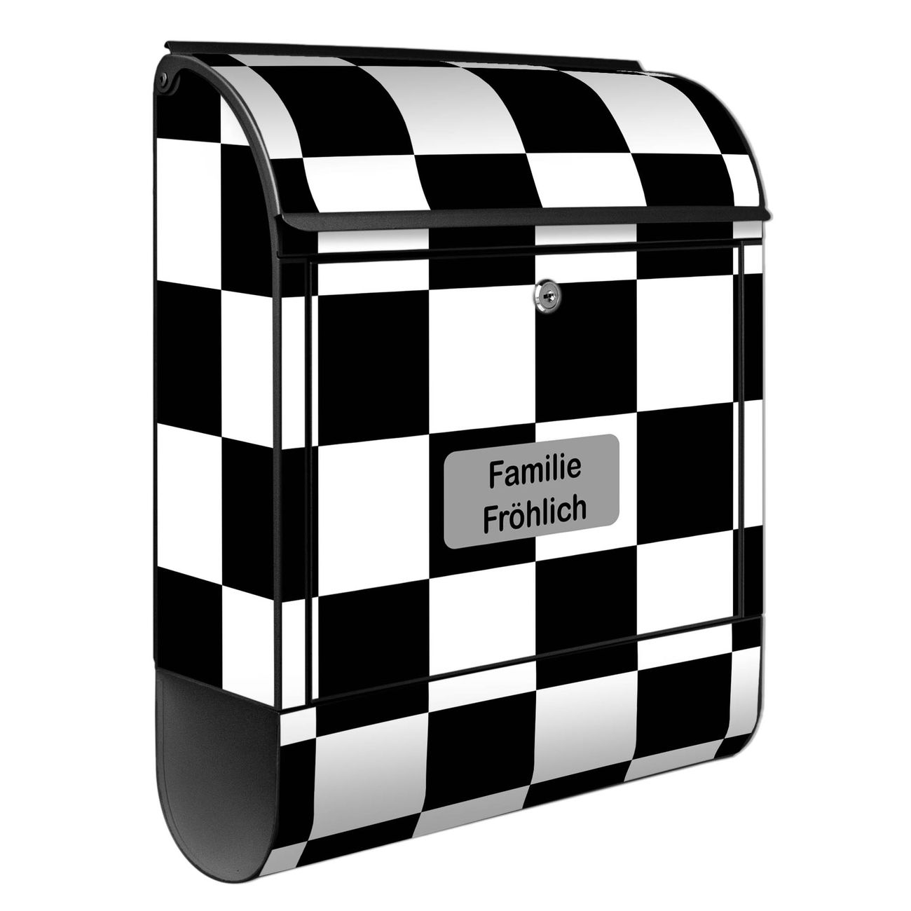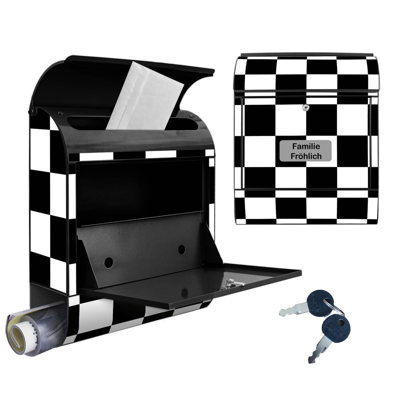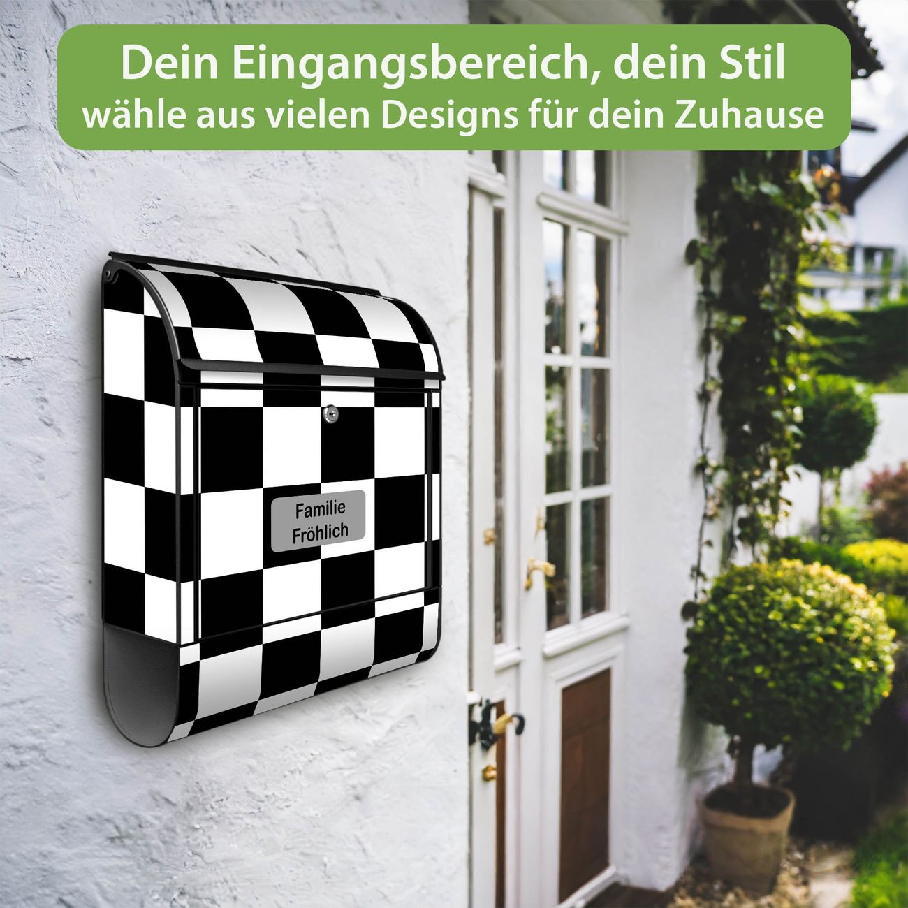 Großer Stahl Briefkasten Motiv Schachbrettmuster