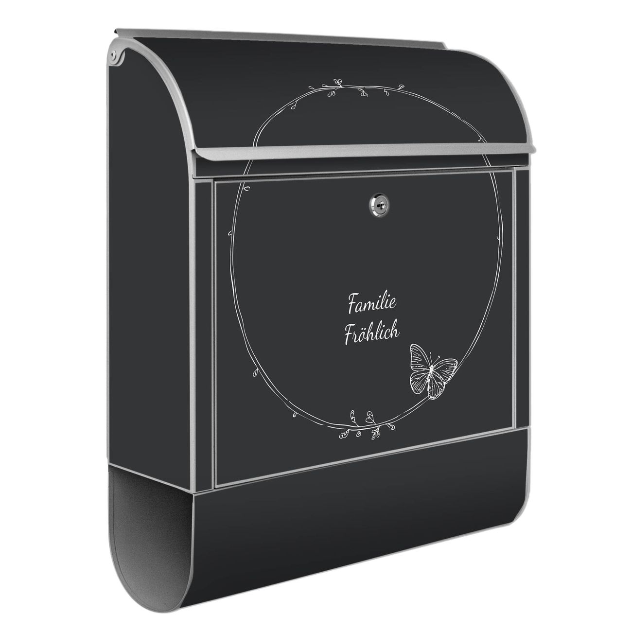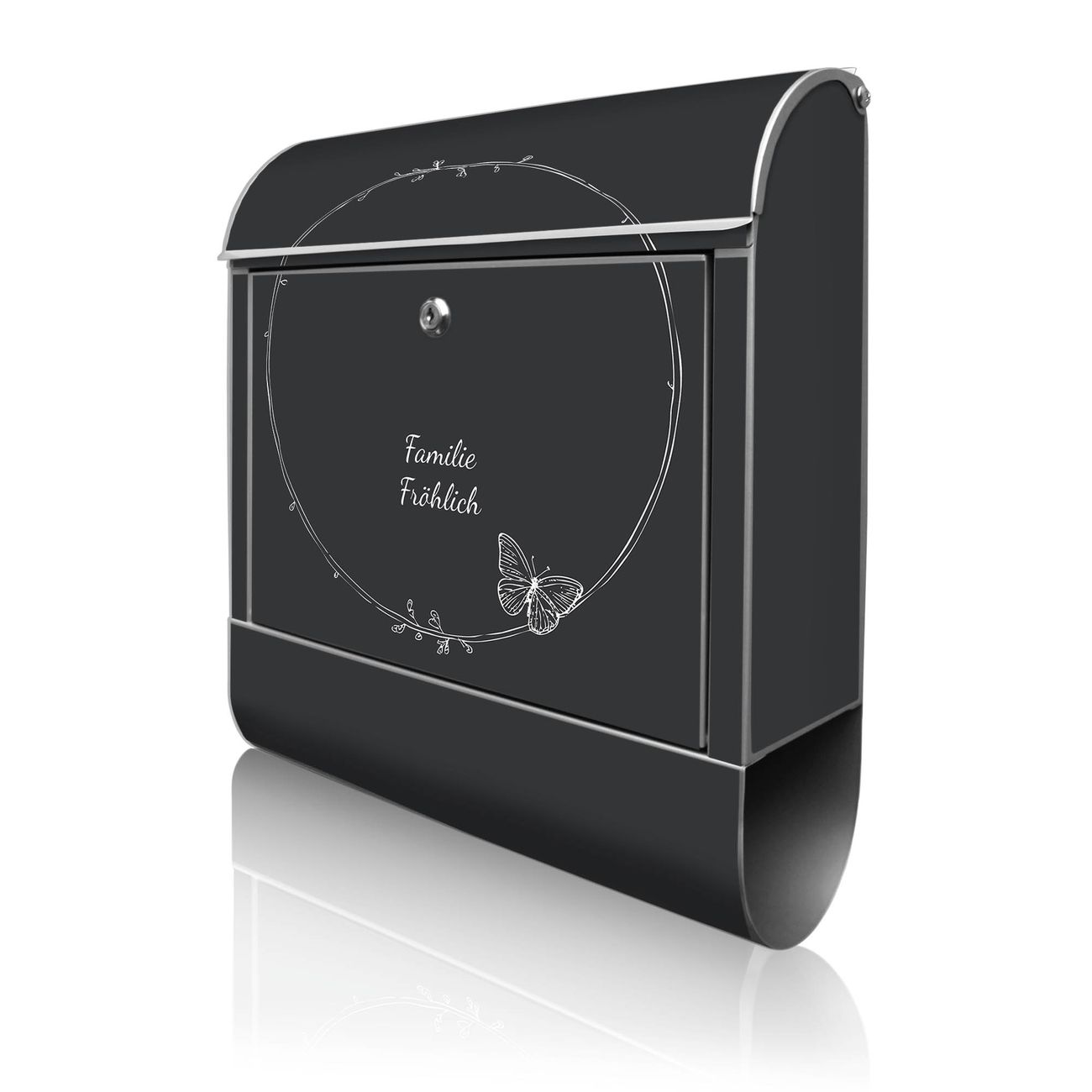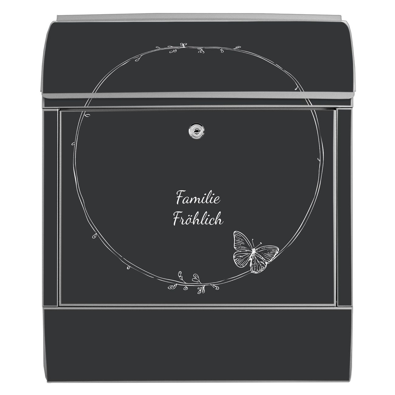 Großer Stahl Briefkasten Motiv Schmetterlingskranz
