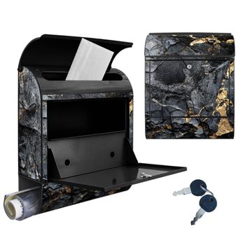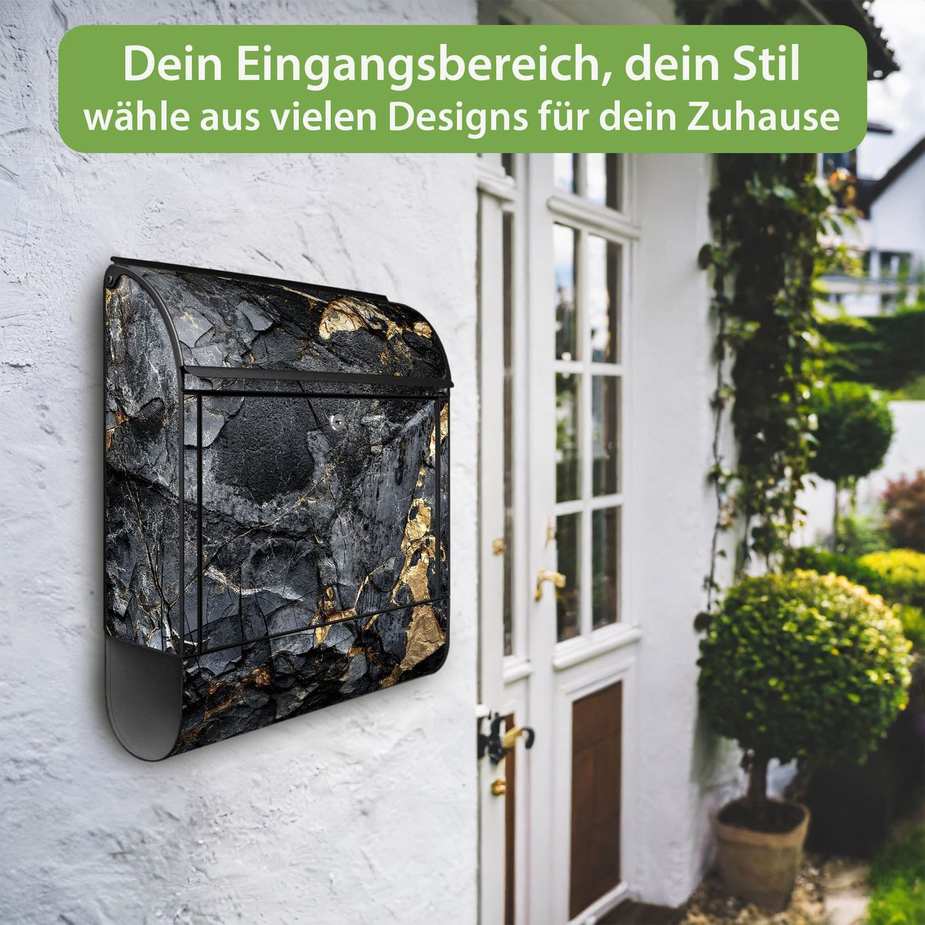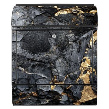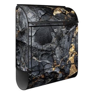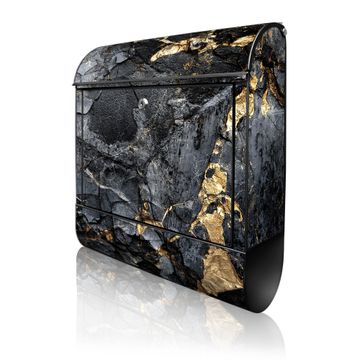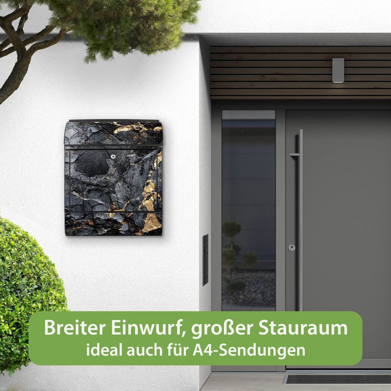 Großer Stahl Briefkasten Motiv Schwarzer Marmor mit Gold 1