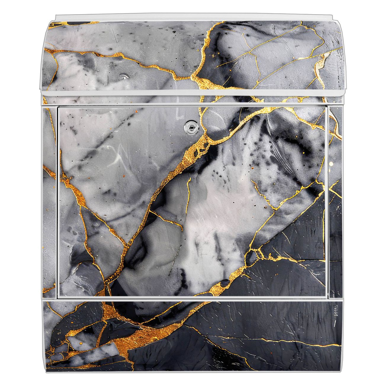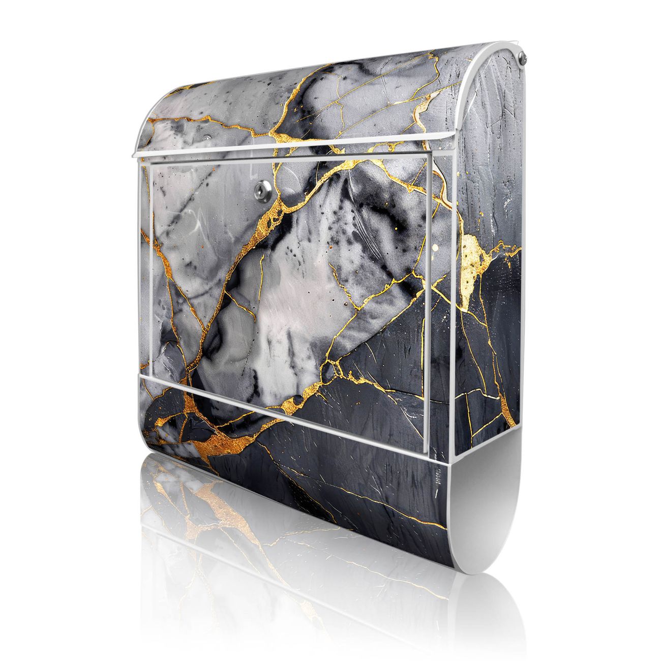 Großer Stahl Briefkasten Motiv Schwarzer Marmor mit Gold 2