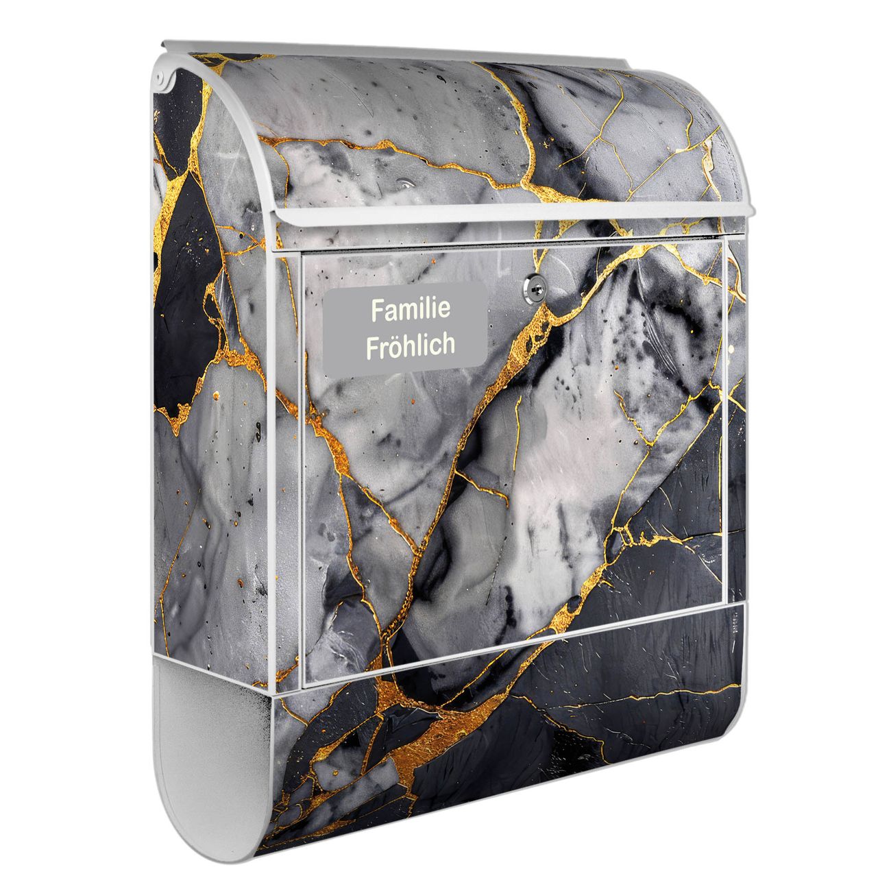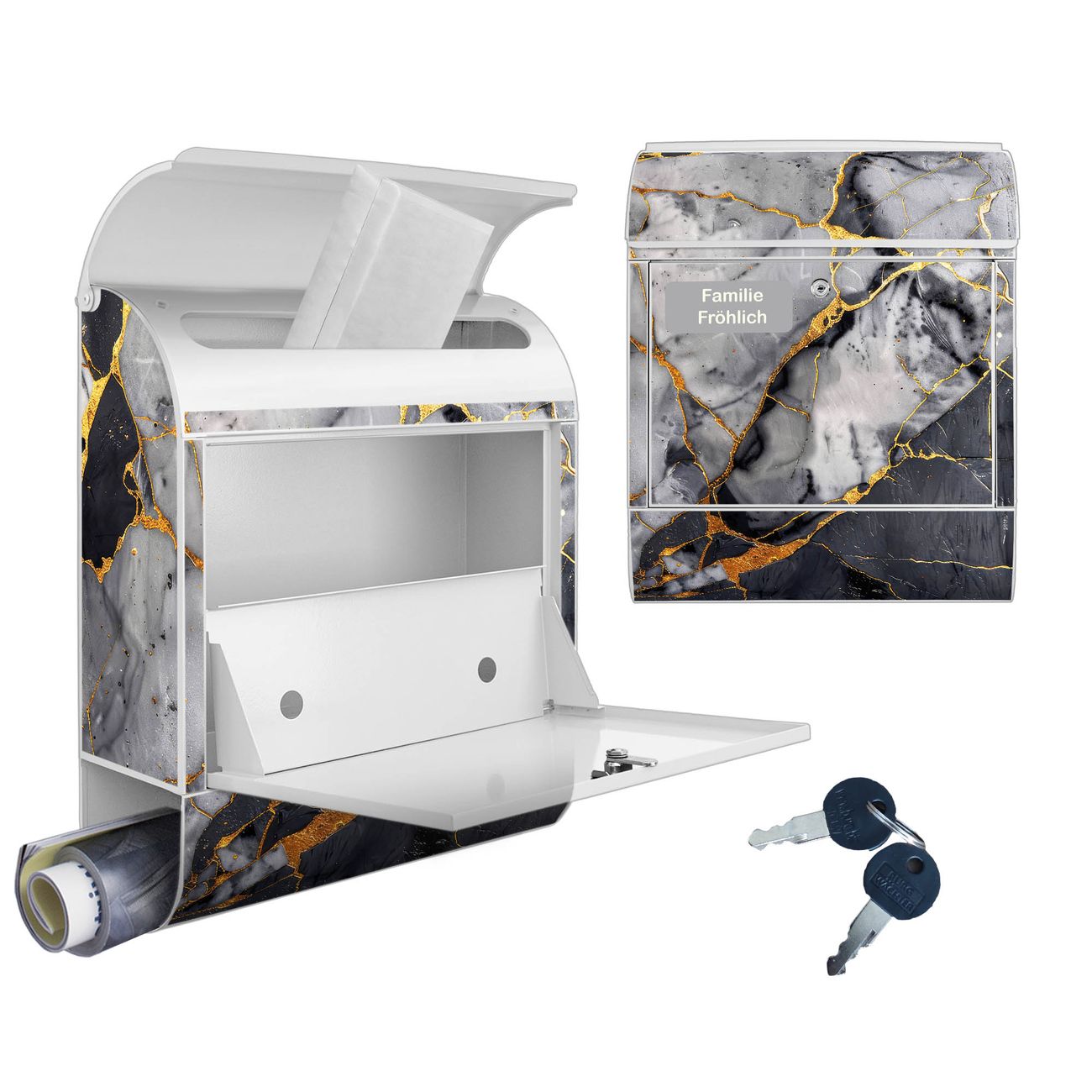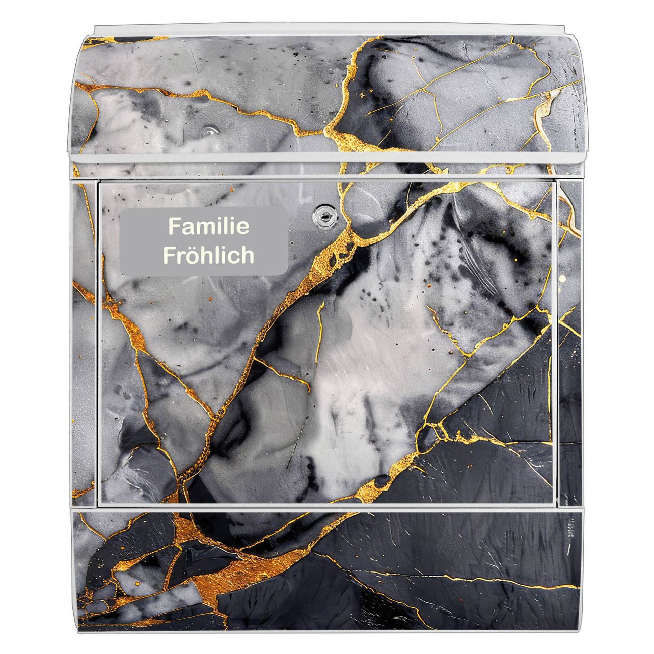 Großer Stahl Briefkasten Motiv Schwarzer Marmor mit Gold 2