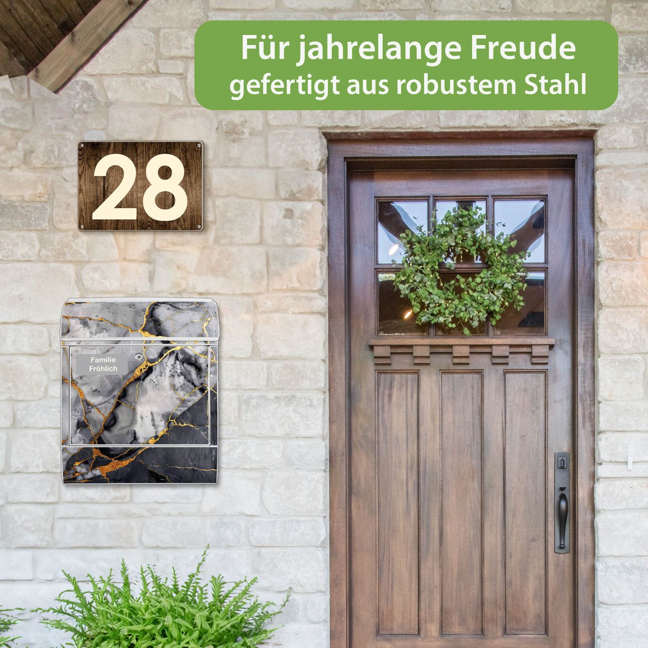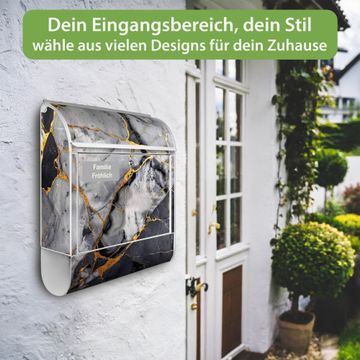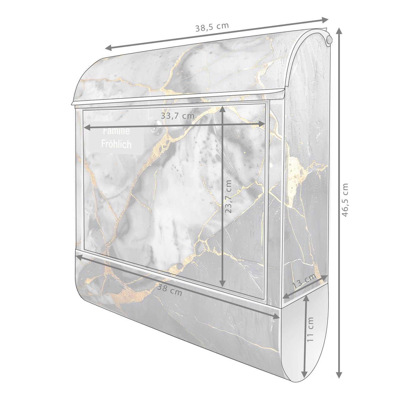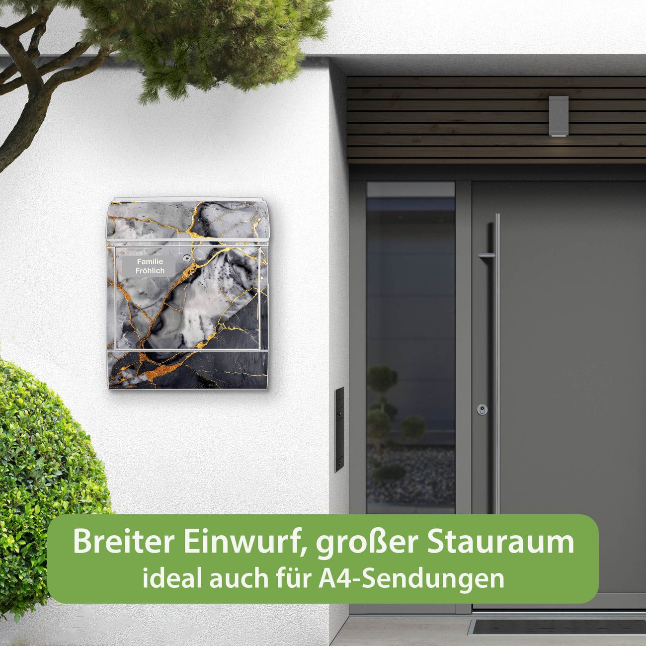 Großer Stahl Briefkasten Motiv Schwarzer Marmor mit Gold 2