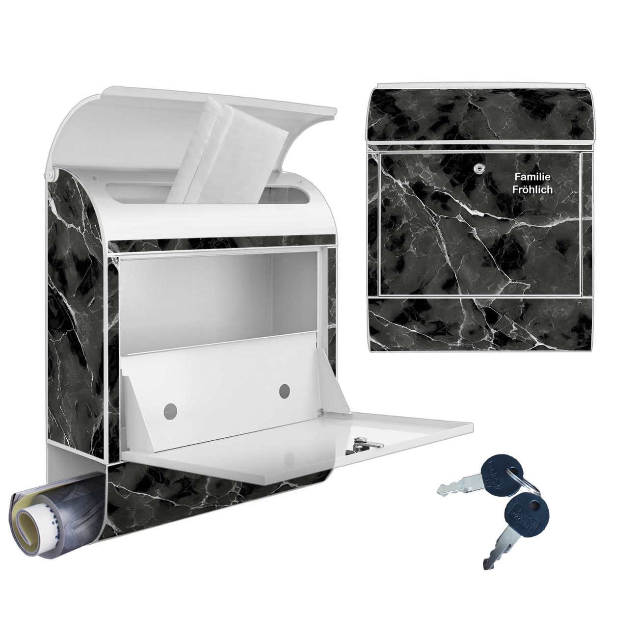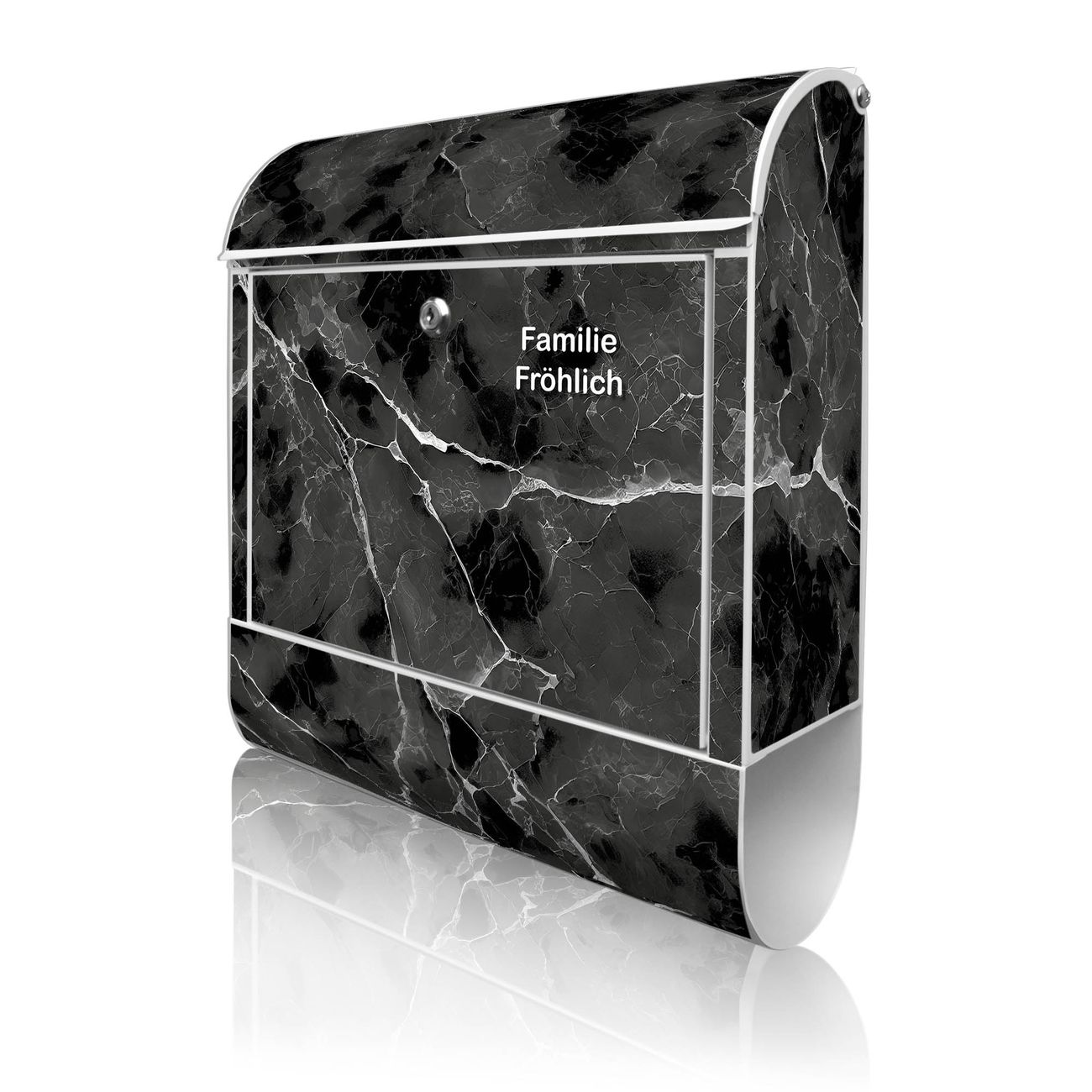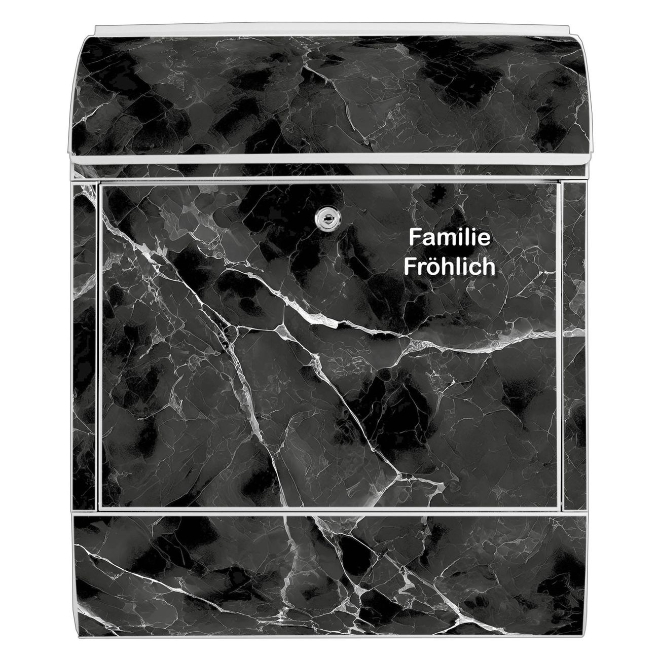 Großer Stahl Briefkasten Motiv Schwarzgrauer Marmor