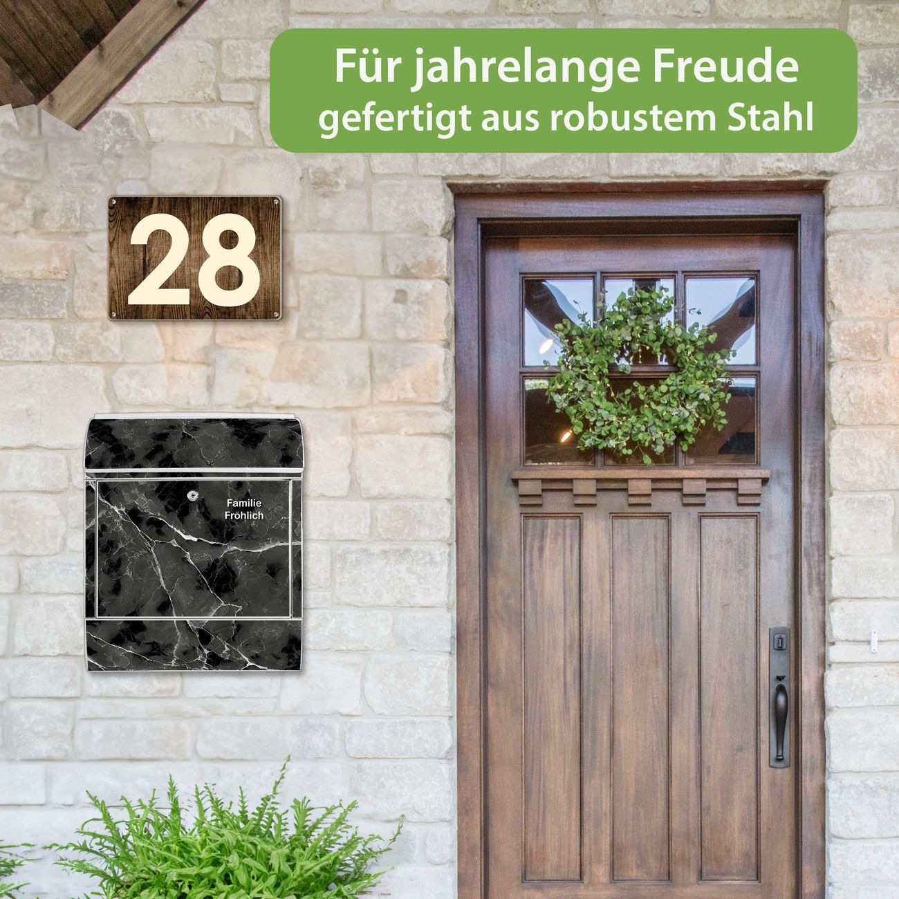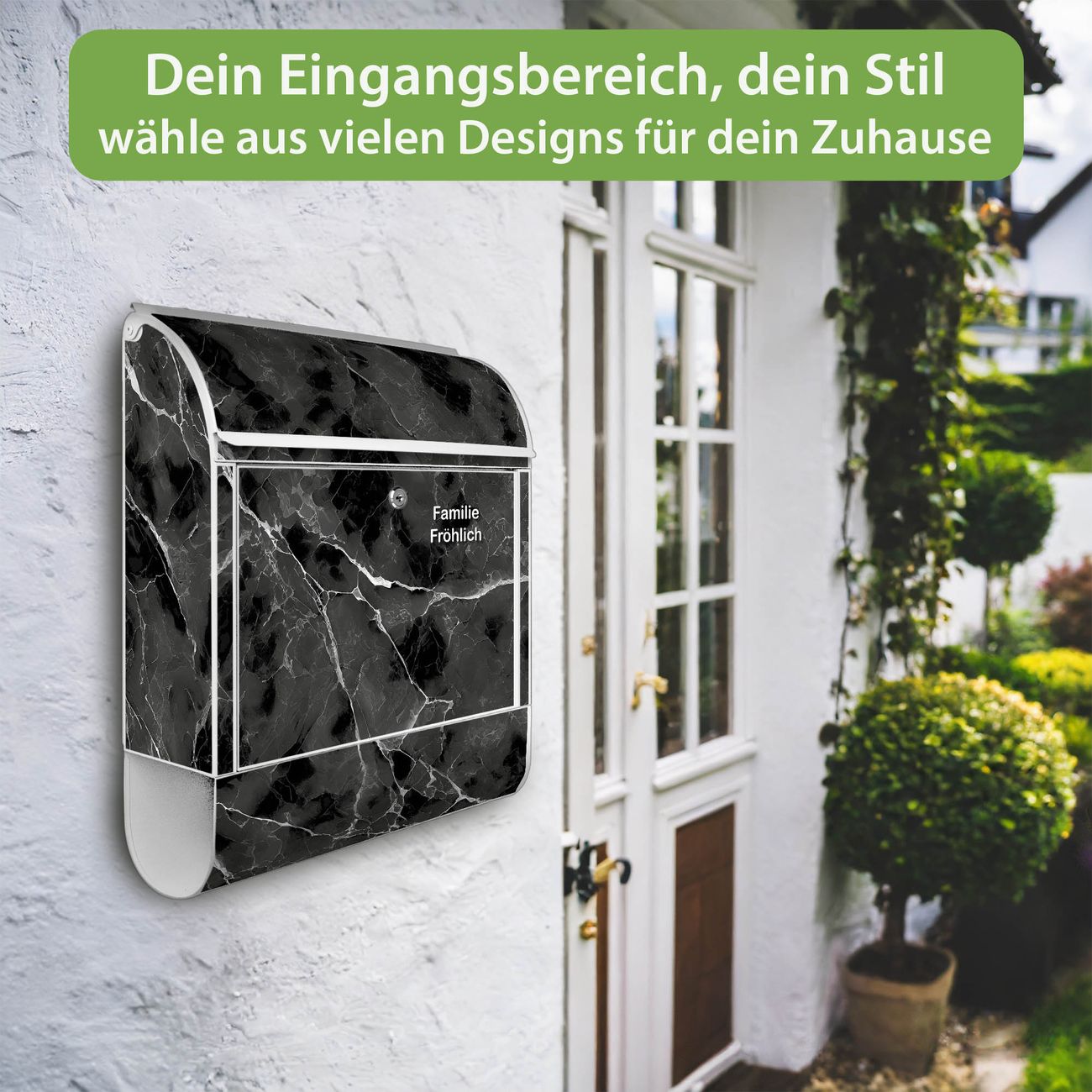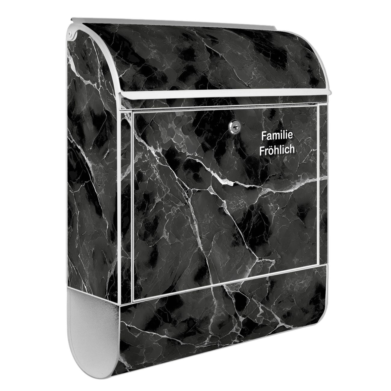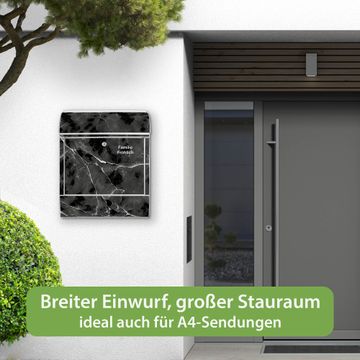 Großer Stahl Briefkasten Motiv Schwarzgrauer Marmor