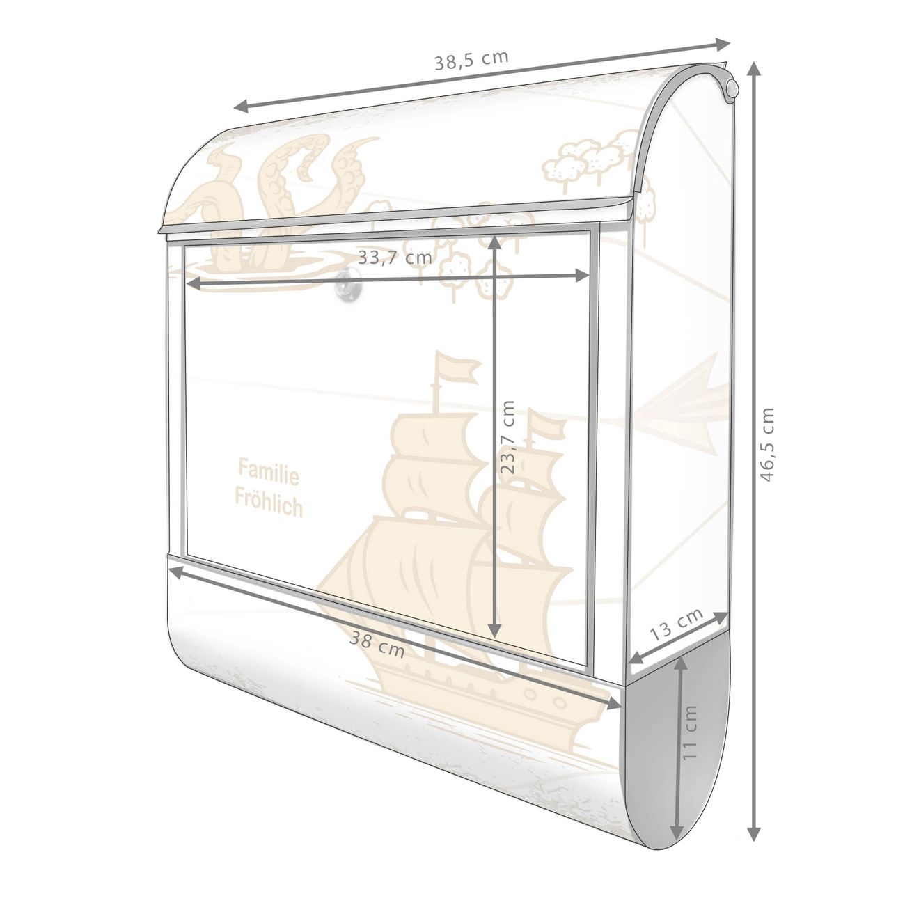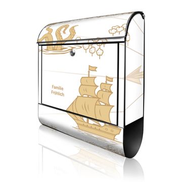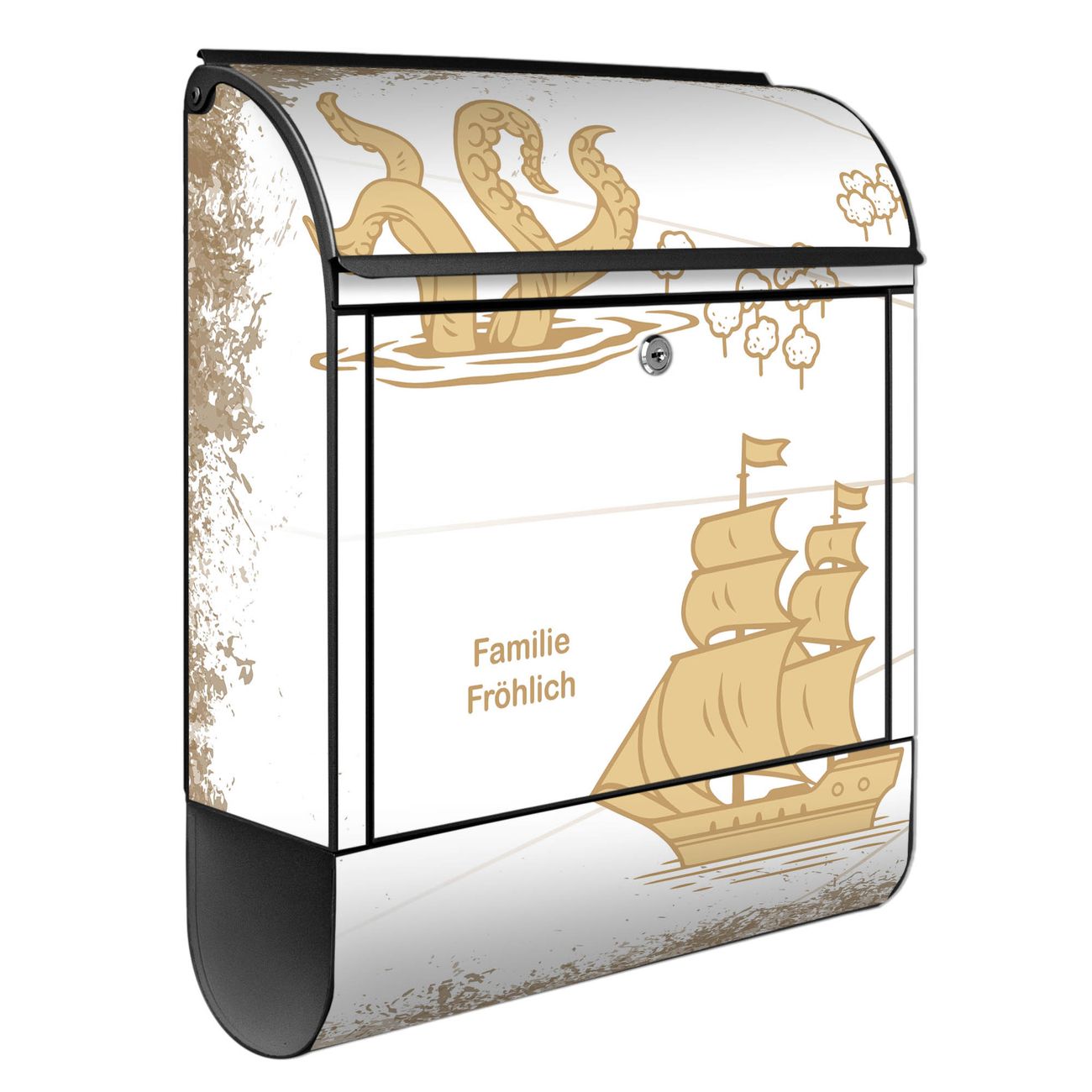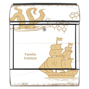 Großer Stahl Briefkasten Motiv Seemonster und Segelschiff