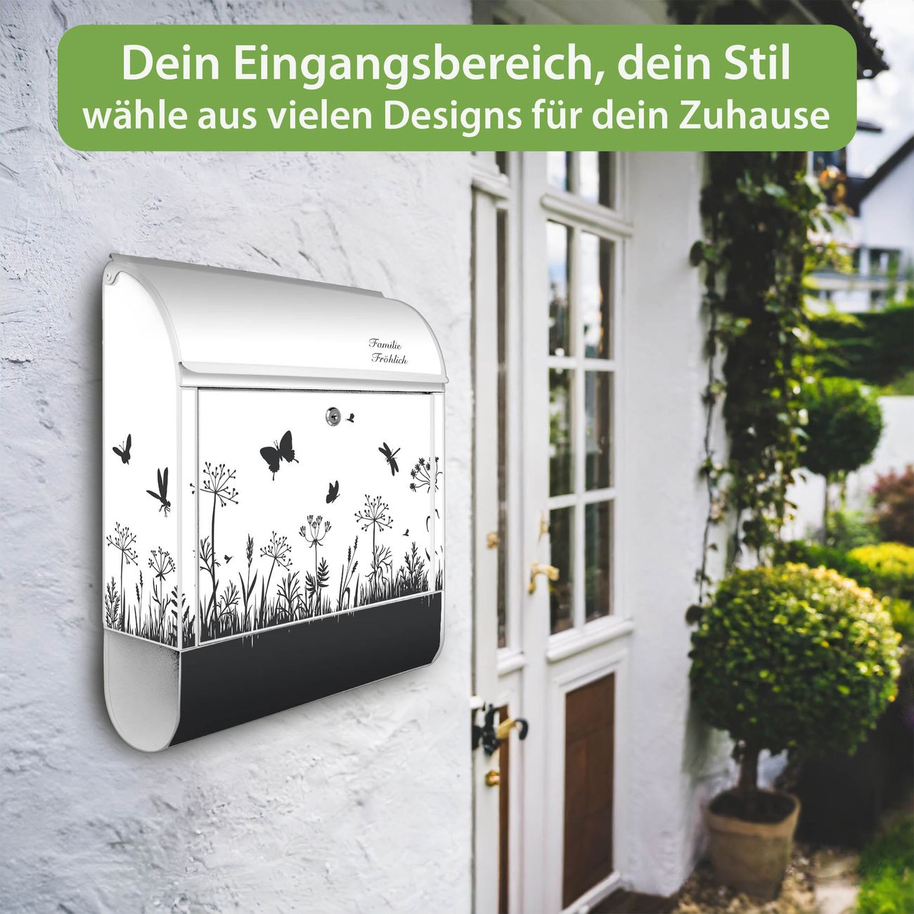 Großer Stahl Briefkasten Motiv Sommerwiese Silhouette