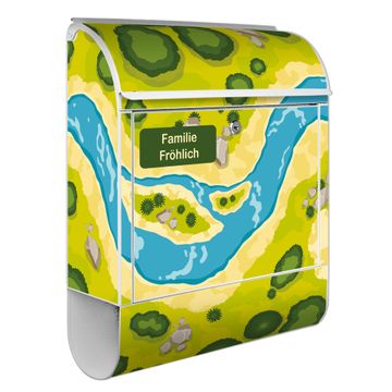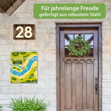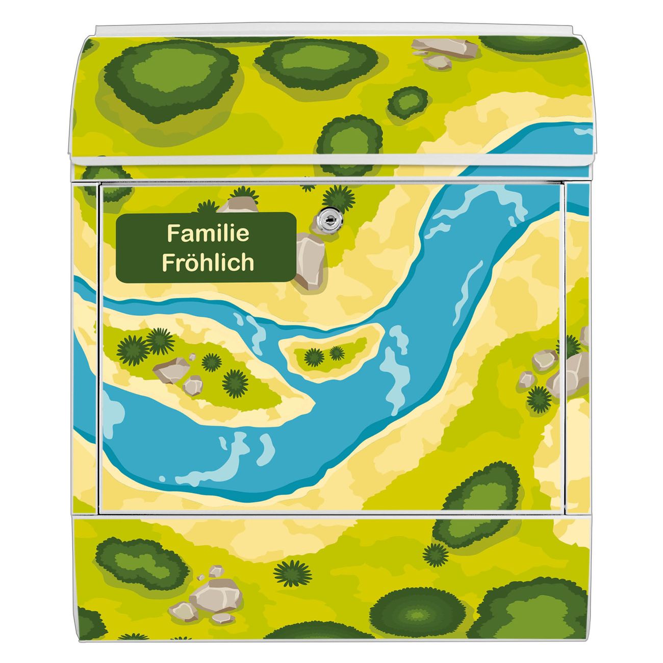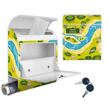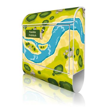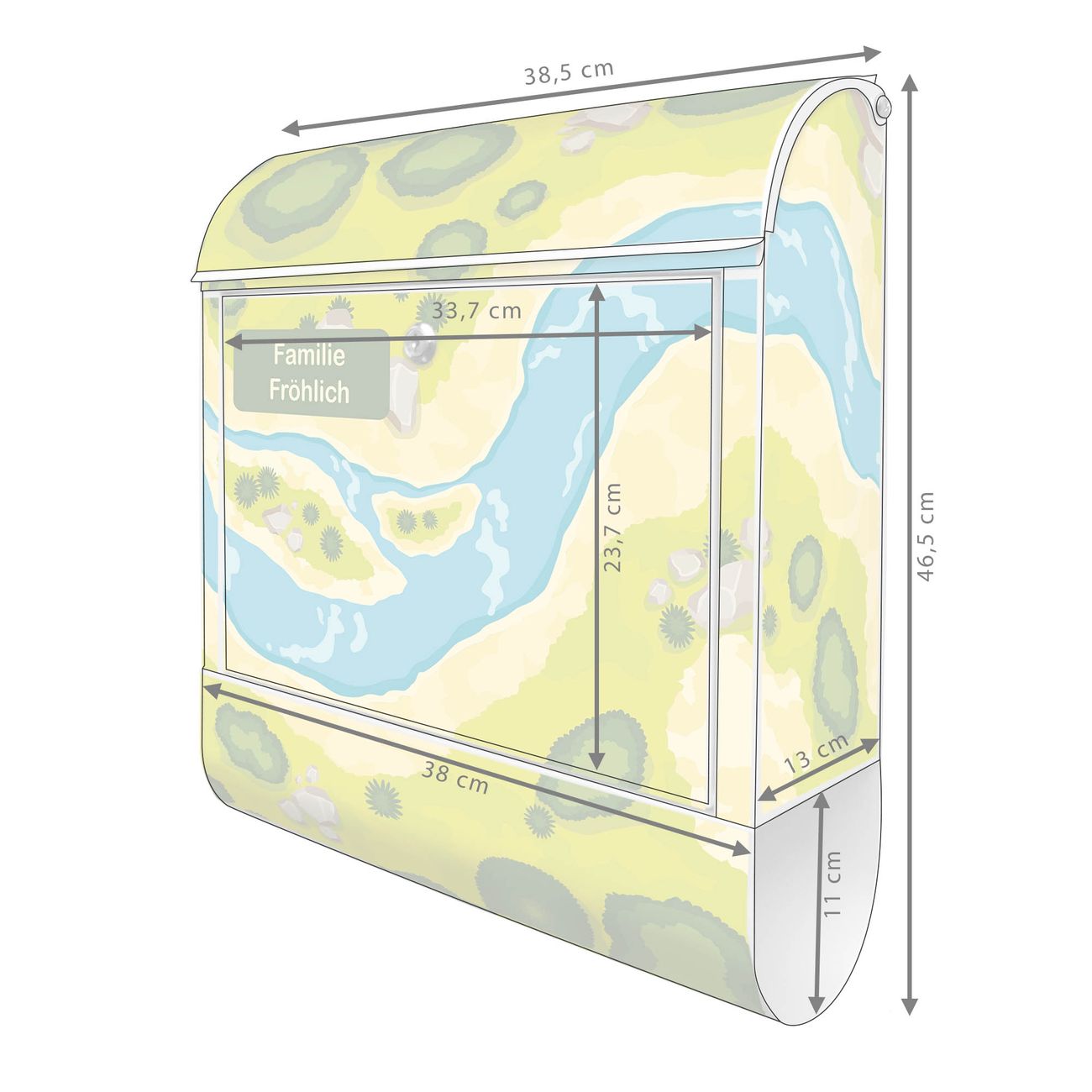 DESIGN: Der Postkasten mit Motiv Motiv Spielehintergrund hat ein sehr ansprechendes und ausgefallenes Design, damit entlocken Sie Ihren Nachbarn und dem Postboten ein Lächeln. Heben Sie Sich von der tristen grauen Masse ab, ohne auf Funktionalität zu verzichten. DETAILS: Der Postkasten besteht aus pulverbeschichtetem Stahl. Er ist 38x46x12,5cm groß. Das Motiv besteht aus einer wetter- und UV-resistenten Folie, die mit einem Schutzlaminat überzogen ist, sodass der Briefkasten zusätzlich vor Kratzern geschützt ist. Der Briefkasten wird mit Montagematerial, zusätzlich zwei Schlüssel sowie einer Bohrschablone geliefert. NUTZEN: Sie können diesen Briefkasten sowohl als Wandbriefkasten montieren oder einen passenden Ständer kaufen und als Standbriefkasten einbetonieren. Die Größe bietet genügend Platz für Sendungen aller Art, der Einwurf fasst auch größere A4 Sendungen. BANJADO: Ihr Briefkasten wird in Sachsen in einer kleinen Manufaktur von Hand veredelt. Die Motivfolie ist lösungsmittelfrei und schutzlaminiert für einen langen Halt. Wir legen großen Wert auf die Verbindung von Funktionalität und Design. Sie erhalten Handarbeit aus Sachsen.