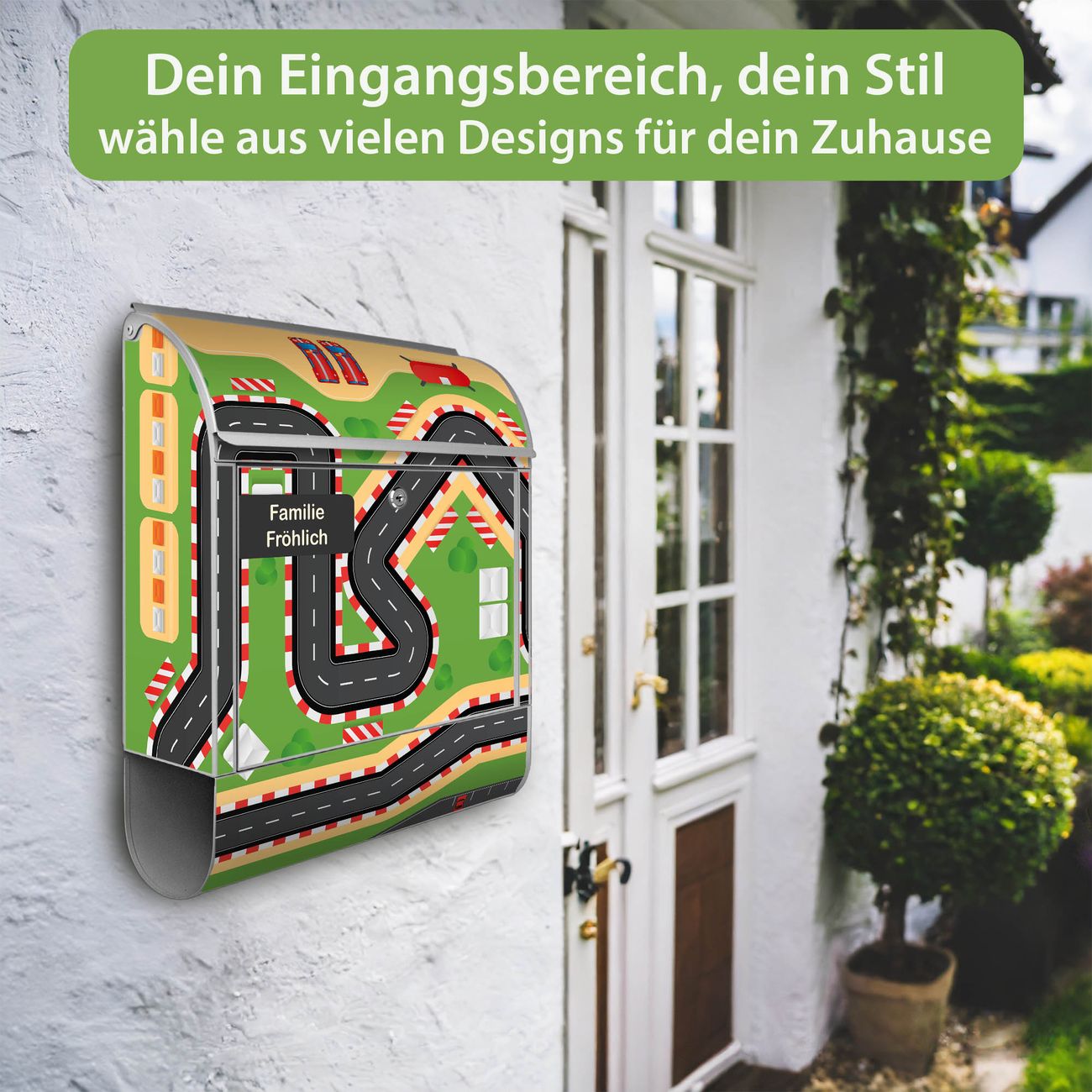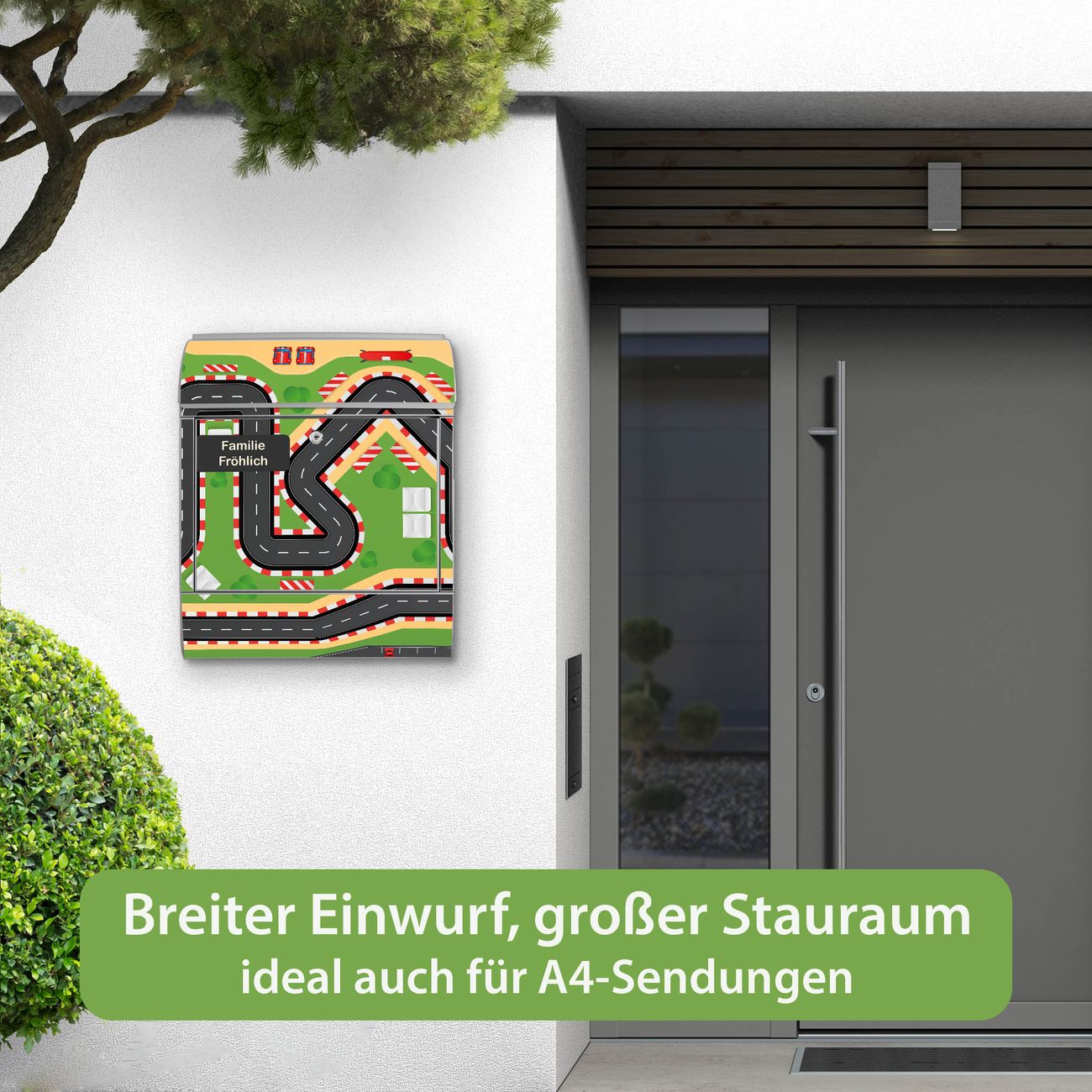 Großer Stahl Briefkasten Motiv Spielstraße 1