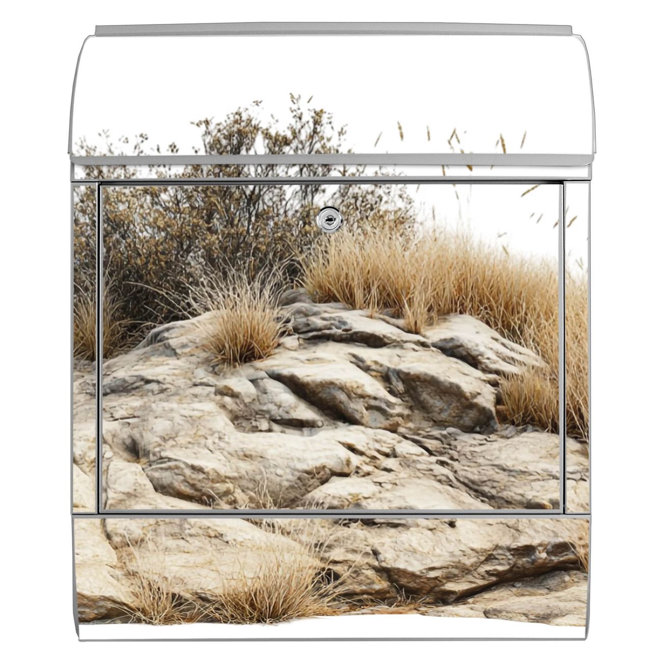 Großer Stahl Briefkasten Motiv Steinige Landschaft