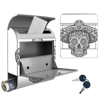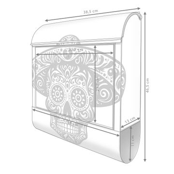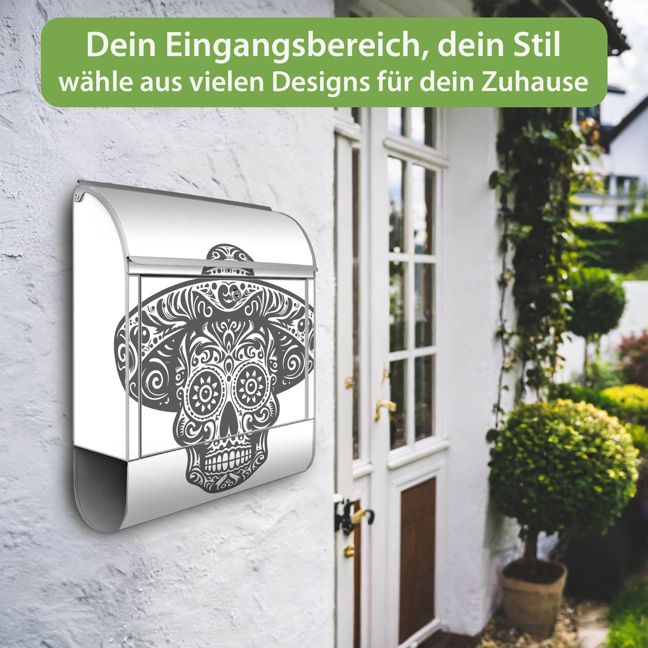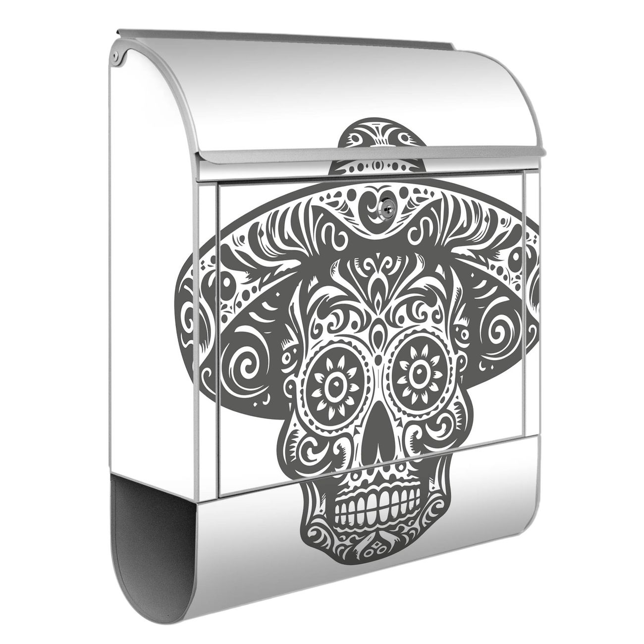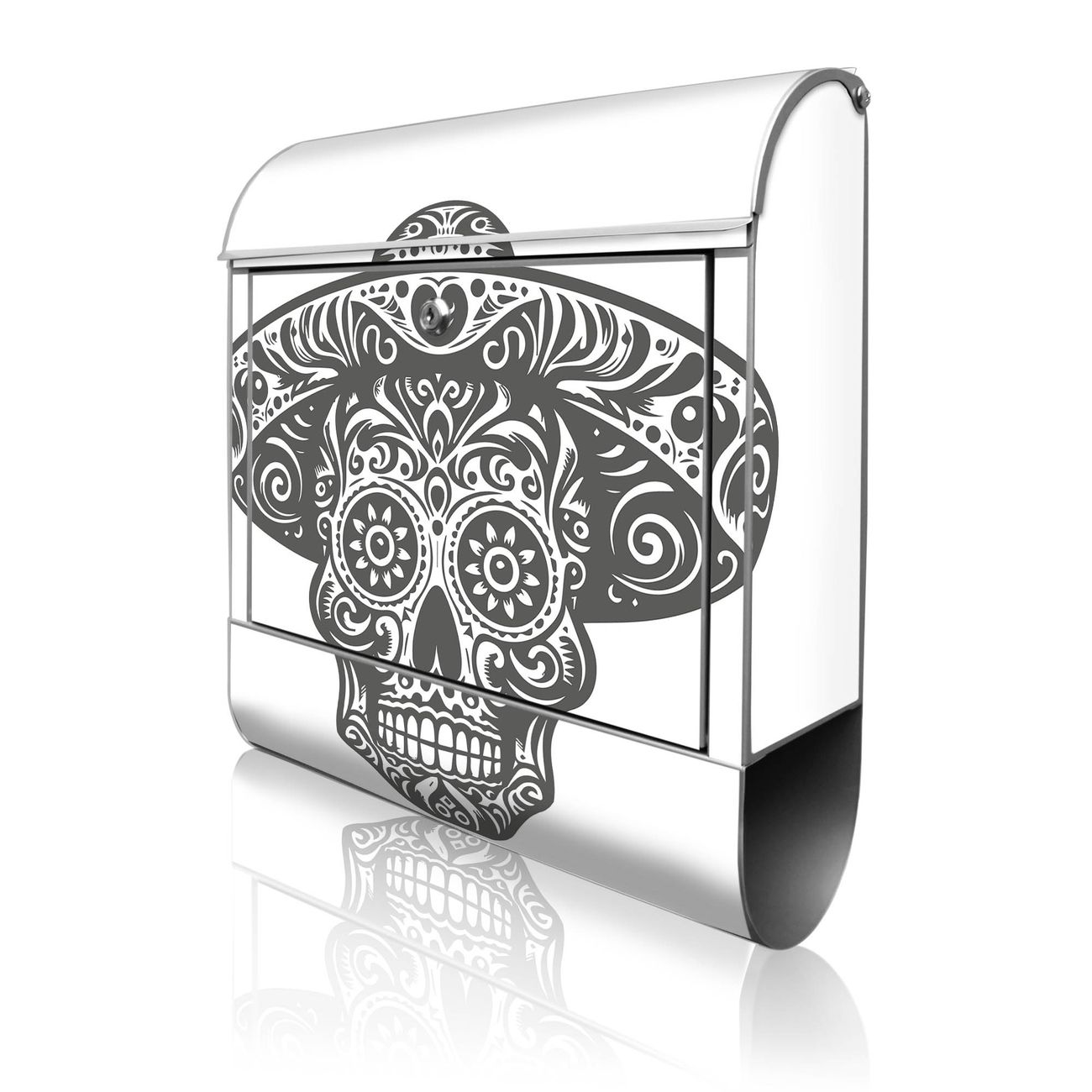 Großer Stahl Briefkasten Motiv Sugar Skull Design