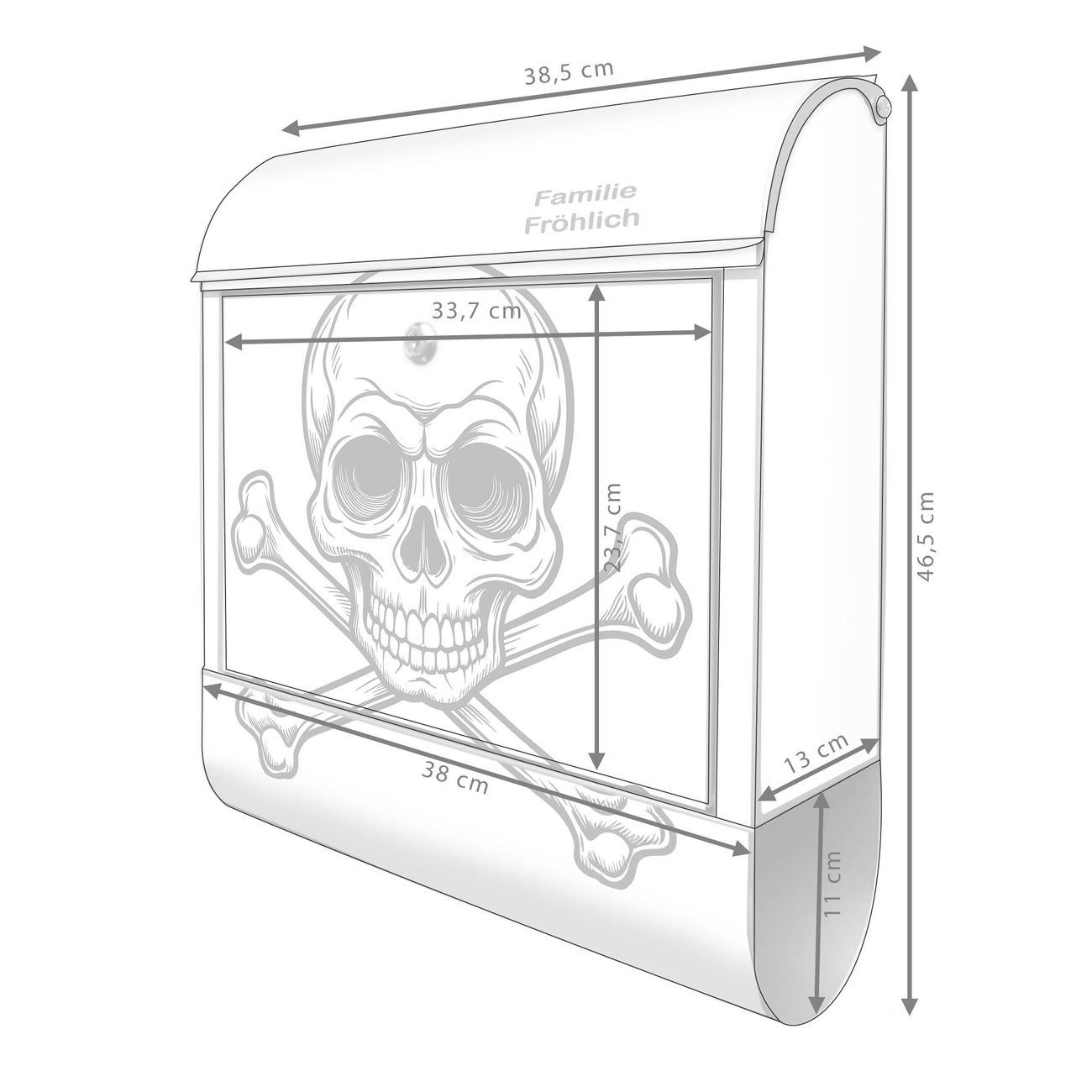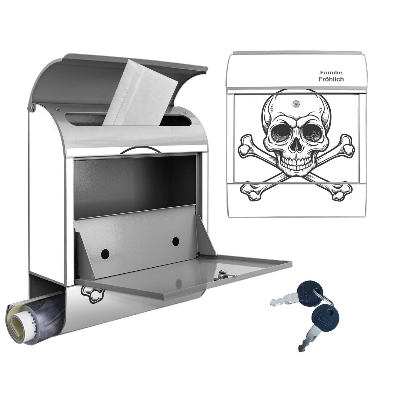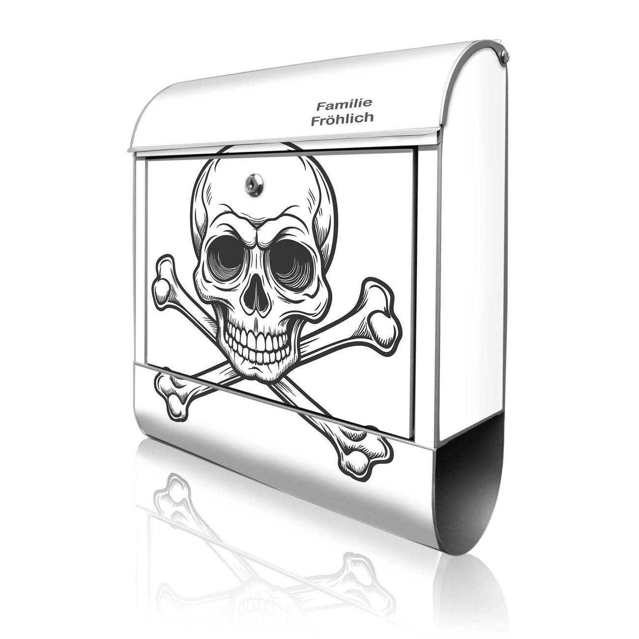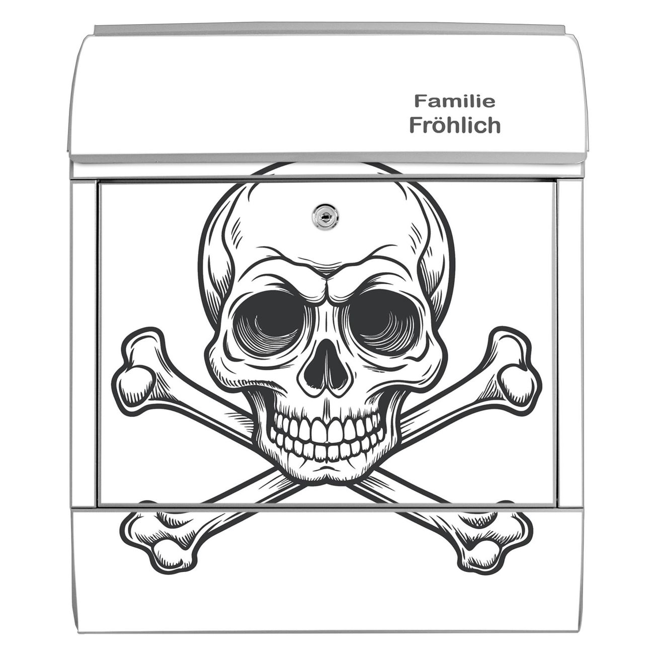 Großer Stahl Briefkasten Motiv Totenkopfsymbol