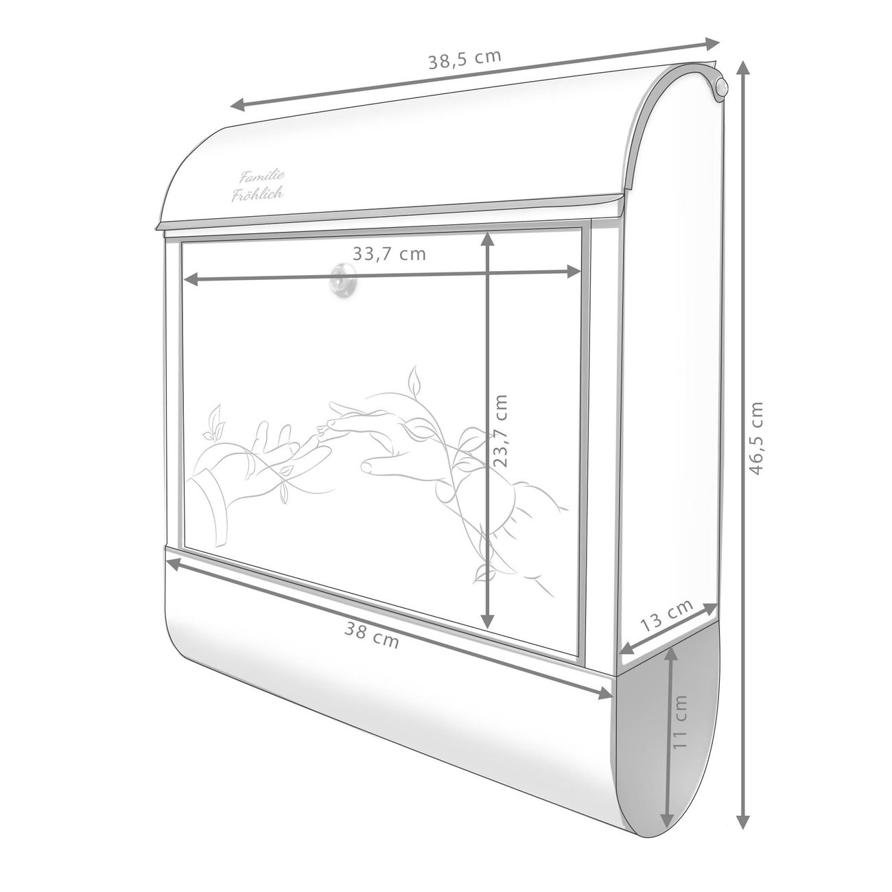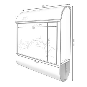 DESIGN: Der Postkasten mit Motiv Motiv Verbindende Hände Lineart hat ein sehr ansprechendes und ausgefallenes Design, damit entlocken Sie Ihren Nachbarn und dem Postboten ein Lächeln. Heben Sie Sich von der tristen grauen Masse ab, ohne auf Funktionalität zu verzichten. DETAILS: Der Postkasten besteht aus pulverbeschichtetem Stahl. Er ist 38x46x12,5cm groß. Das Motiv besteht aus einer wetter- und UV-resistenten Folie, die mit einem Schutzlaminat überzogen ist, sodass der Briefkasten zusätzlich vor Kratzern geschützt ist. Der Briefkasten wird mit Montagematerial, zusätzlich zwei Schlüssel sowie einer Bohrschablone geliefert. NUTZEN: Sie können diesen Briefkasten sowohl als Wandbriefkasten montieren oder einen passenden Ständer kaufen und als Standbriefkasten einbetonieren. Die Größe bietet genügend Platz für Sendungen aller Art, der Einwurf fasst auch größere A4 Sendungen. BANJADO: Ihr Briefkasten wird in Sachsen in einer kleinen Manufaktur von Hand veredelt. Die Motivfolie ist lösungsmittelfrei und schutzlaminiert für einen langen Halt. Wir legen großen Wert auf die Verbindung von Funktionalität und Design. Sie erhalten Handarbeit aus Sachsen.