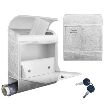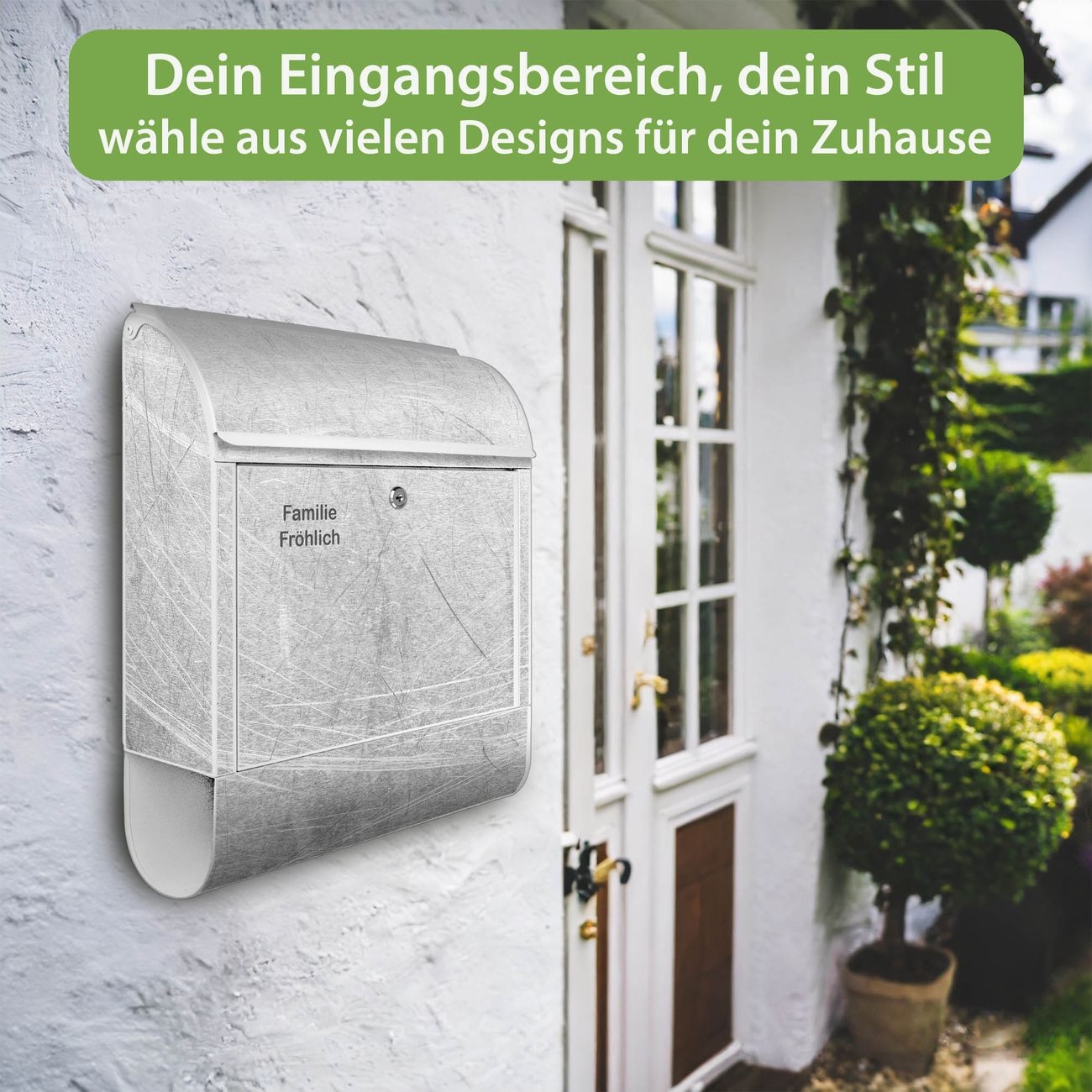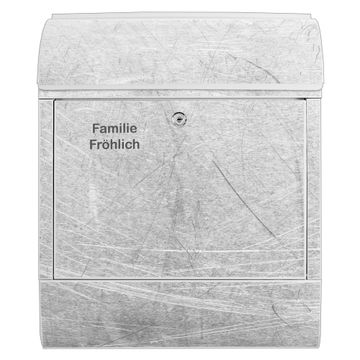 DESIGN: Der Postkasten mit Motiv Motiv Verkratztes Metall Grau hat ein sehr ansprechendes und ausgefallenes Design, damit entlocken Sie Ihren Nachbarn und dem Postboten ein Lächeln. Heben Sie Sich von der tristen grauen Masse ab, ohne auf Funktionalität zu verzichten. DETAILS: Der Postkasten besteht aus pulverbeschichtetem Stahl. Er ist 38x46x12,5cm groß. Das Motiv besteht aus einer wetter- und UV-resistenten Folie, die mit einem Schutzlaminat überzogen ist, sodass der Briefkasten zusätzlich vor Kratzern geschützt ist. Der Briefkasten wird mit Montagematerial, zusätzlich zwei Schlüssel sowie einer Bohrschablone geliefert. NUTZEN: Sie können diesen Briefkasten sowohl als Wandbriefkasten montieren oder einen passenden Ständer kaufen und als Standbriefkasten einbetonieren. Die Größe bietet genügend Platz für Sendungen aller Art, der Einwurf fasst auch größere A4 Sendungen. BANJADO: Ihr Briefkasten wird in Sachsen in einer kleinen Manufaktur von Hand veredelt. Die Motivfolie ist lösungsmittelfrei und schutzlaminiert für einen langen Halt. Wir legen großen Wert auf die Verbindung von Funktionalität und Design. Sie erhalten Handarbeit aus Sachsen.