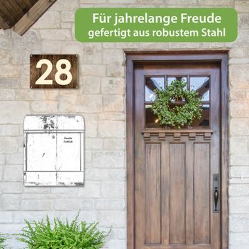 DESIGN: Der Postkasten mit Motiv Motiv Verwitterte Wand hat ein sehr ansprechendes und ausgefallenes Design, damit entlocken Sie Ihren Nachbarn und dem Postboten ein Lächeln. Heben Sie Sich von der tristen grauen Masse ab, ohne auf Funktionalität zu verzichten. DETAILS: Der Postkasten besteht aus pulverbeschichtetem Stahl. Er ist 38x46x12,5cm groß. Das Motiv besteht aus einer wetter- und UV-resistenten Folie, die mit einem Schutzlaminat überzogen ist, sodass der Briefkasten zusätzlich vor Kratzern geschützt ist. Der Briefkasten wird mit Montagematerial, zusätzlich zwei Schlüssel sowie einer Bohrschablone geliefert. NUTZEN: Sie können diesen Briefkasten sowohl als Wandbriefkasten montieren oder einen passenden Ständer kaufen und als Standbriefkasten einbetonieren. Die Größe bietet genügend Platz für Sendungen aller Art, der Einwurf fasst auch größere A4 Sendungen. BANJADO: Ihr Briefkasten wird in Sachsen in einer kleinen Manufaktur von Hand veredelt. Die Motivfolie ist lösungsmittelfrei und schutzlaminiert für einen langen Halt. Wir legen großen Wert auf die Verbindung von Funktionalität und Design. Sie erhalten Handarbeit aus Sachsen.