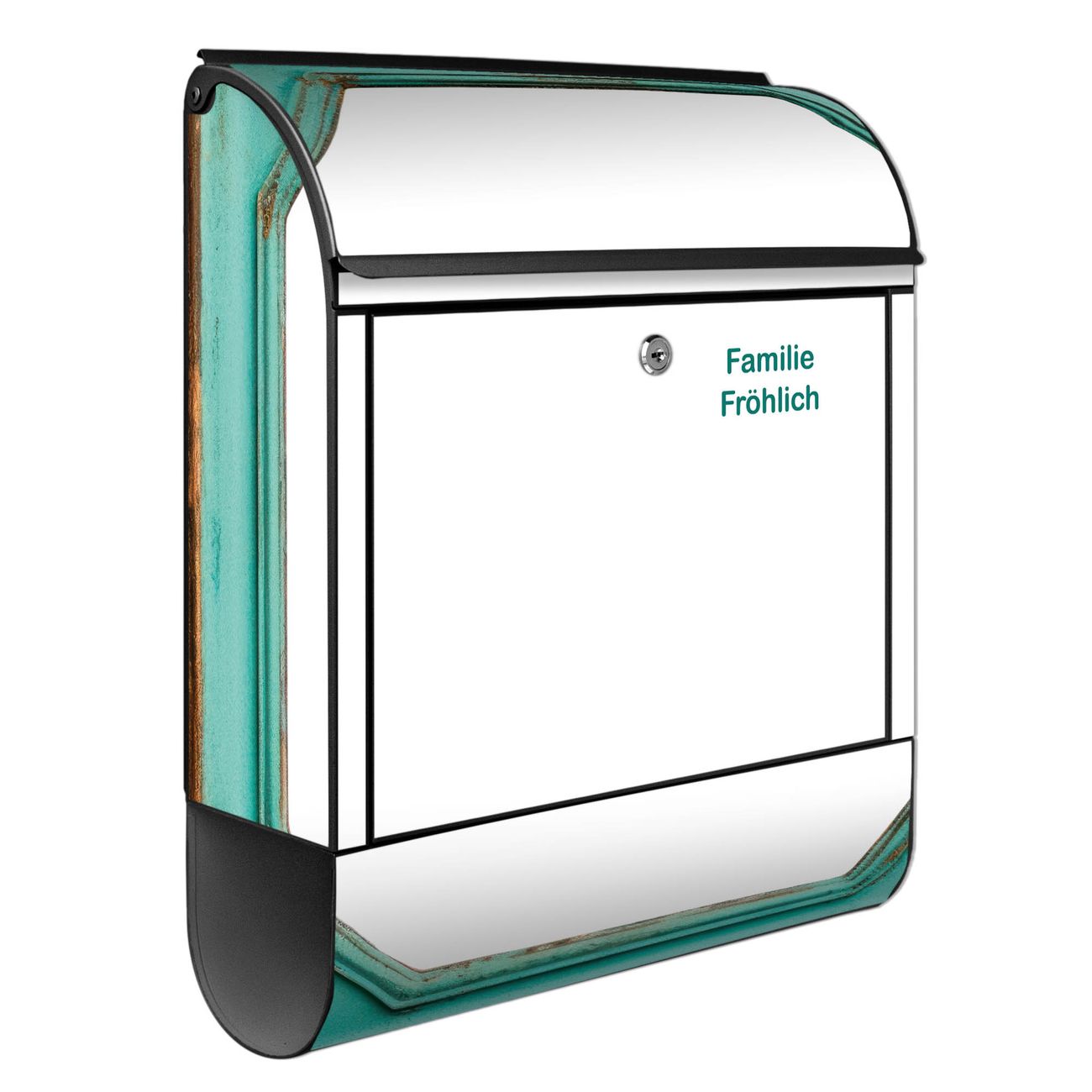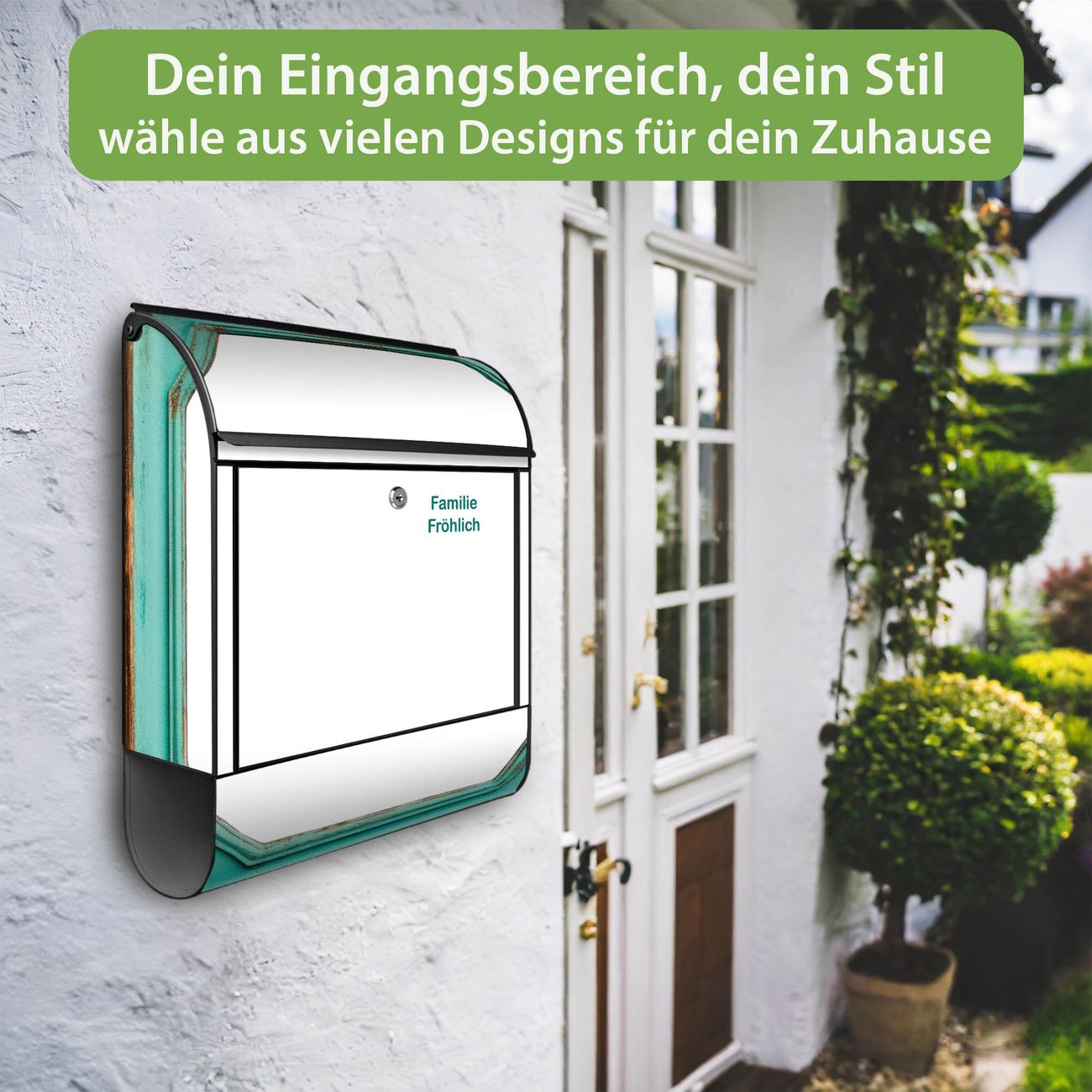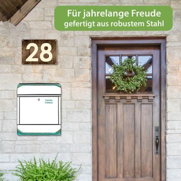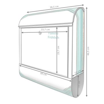 DESIGN: Der Postkasten mit Motiv Motiv Vintage Metallrahmen hat ein sehr ansprechendes und ausgefallenes Design, damit entlocken Sie Ihren Nachbarn und dem Postboten ein Lächeln. Heben Sie Sich von der tristen grauen Masse ab, ohne auf Funktionalität zu verzichten. DETAILS: Der Postkasten besteht aus pulverbeschichtetem Stahl. Er ist 38x46x12,5cm groß. Das Motiv besteht aus einer wetter- und UV-resistenten Folie, die mit einem Schutzlaminat überzogen ist, sodass der Briefkasten zusätzlich vor Kratzern geschützt ist. Der Briefkasten wird mit Montagematerial, zusätzlich zwei Schlüssel sowie einer Bohrschablone geliefert. NUTZEN: Sie können diesen Briefkasten sowohl als Wandbriefkasten montieren oder einen passenden Ständer kaufen und als Standbriefkasten einbetonieren. Die Größe bietet genügend Platz für Sendungen aller Art, der Einwurf fasst auch größere A4 Sendungen. BANJADO: Ihr Briefkasten wird in Sachsen in einer kleinen Manufaktur von Hand veredelt. Die Motivfolie ist lösungsmittelfrei und schutzlaminiert für einen langen Halt. Wir legen großen Wert auf die Verbindung von Funktionalität und Design. Sie erhalten Handarbeit aus Sachsen.